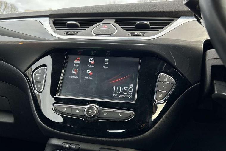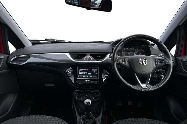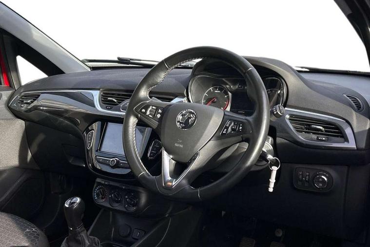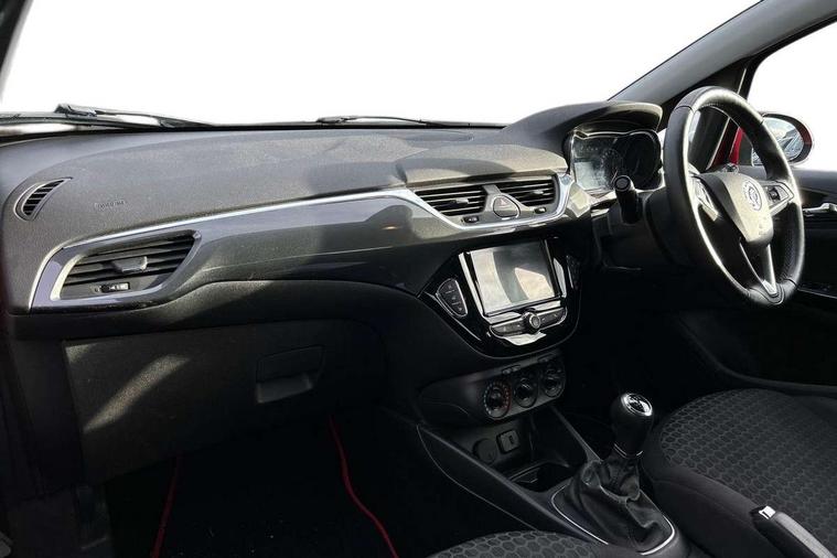 Apple car play/Android Auto, Central facia display, Cruise control + speed limiter, Digital fuel gauge with low fuel warning light, Digital water temperature gauge, Electric speed sensitive power steering, Exterior temperature gauge, Lights on audible warning, Rev counter, Service indicator, Speed warning indicator, Speedometer, Trip computer, White graphics on black background, Front anti roll bar, Steering wheel mounted audio/cruise controls, Black foil on B-pillars, Body colour bumpers, Body colour door handles, Body coloured door mirrors, Chrome front grille, Dipping rear view mirror, Door to door illumination, Electric adjustable/manual folding heated door mirrors (wide angle on driver's side), Electric headlight beam leveling, Electrically operated front windows with safety auto reverse/one touch facility, Front fog lights with black surround, Halogen headlights with halogen signature daytime running lights, Hazard warning lamps, Headlamp levelling, Heated rear window, Heated windscreen, High level LED centre brake light, Intermittent rear wash/wipe, Laminated windscreen, Rear fog lights, Rear wiper, Side window demist vents, Two speed windscreen wipers with variable intermittent wipe, Welcome lighting, Windscreen demist vents, 12V electrical accessory socket in front, 3 spoke steering wheel, Anti submarining ramps in all seats, Centre console with cupholders, Chrome gear knob, Chrome interior door handles, Cloth upholstery, Comfort front seats, Driver's and front passenger's sunvisors, Driver's and front passenger's tiltable assist handles, Driver's and passenger's vanity mirrors with flip up cover, Driver's vanity mirror, Easy entry reclining front seats with memory, Four adjustable facia vents, Front courtesy lights, Front door pockets, Front map reading lights, Front seat belt pre-tensioners with load limiters, Glovebox with lid, Grab handles, Height adjustable driver's seat, Height adjustable front headrests, Height adjustable rear head restraints with adjustable backrest, Illuminated luggage compartment, Instrument panel light dimmer, Interior tailgate handles, Isofix child seat mounting points on outer rear seats, Load restraining lashing points, Luggage compartment cover, Multi function steering wheel, Passenger make up mirror, Pollen filter, Reach + rake adjustable steering column, Rear bottle holder, Rear courtesy lights, Reclining front seats, Storage box on driver's side lower facia, Stowage facility for luggage compartment cover behind rear seats, Twin gas assisted tailgate struts, Sight and light Pack - Corsa, Winter pack - Corsa, Anti-lock braking system (ABS), Brake assist function, Electronic brake force distribution, Electronic Stability Programme, Energy absorbing steering column, Front and rear seatbelt reminder, Front and rear seatbelt unfastened audible warning and warning light, Front seatbelt force limiters, Gas pressure dampers, Height adjustable front seatbelts, Hill start assist, Passenger airbag deactivation system, Pedal release system, Rear child proof door locks, Reinforced passenger safety cell, Side impact protection beams, Six airbags - Driver's dual stage airbag/front passenger's dual stage airbag/front seat side impact airbags/full size curtain airbags, Three 3 point rear seatbelts, Three inertia reel lap/diagonal seatbelts, Traction control, Tyre pressure monitoring system, Electronically protected audio, Engine Immobiliser & Deadlocks, Key left in ignition audible warning, Locking wheel bolts, Remote control central locking, Visible vehicle identification number, Rhutenium facia with chrome effect inserts, Low rolling resistance tyres,