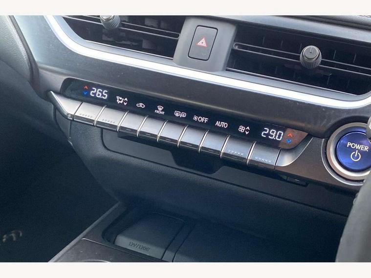 4 driving modes EV/Eco/Normal/Sport, 7" Lexus media display, 7" TFT instrument cluster, Analogue clock with GPS function, Apple car play/Android Auto, Compatible mobile phone bluetooth with audio streaming, E-call, Electric power steering (EPS) with speed sensitive features, Lane change flasher function, Lexus link connected services, Lexus safety systems + includes dynamic radar cruise control, pre collision system day and night, lane tracing assist, road sign assist, Push button start, Remote touch interface, Tailgate, Trip computer, Vehicle Dynamics Integrated Management (VDIM), Vehicle Stability Control (VSC), 2 front USB and 2 rear USB charging points, 6 speakers, AM/FM and DAB radio, AUX socket with VTR compatibility, CD player, Acoustic windscreen, Aero stabilising arch mouldings, Aero stabilising rear lights, Aero ventilated wheels, Bi-LED (low and high beam) headlights with Auto High Beam (AHB), Black roof drip mouldings, Black wheel arches, Body adhesive, laser screw welding and laser brazed roof structure, Body coloured bumpers, Electric adjustable/heated door mirrors, Front and rear one touch power windows, with anti-jam protection, Headlight cleaners, LED daytime running lights, LED tail lights, LED third brake light, Light green UV glass, Rain sensor windscreen wipers, Rear side wing doors, Rear wiper, Shark fin roof aerial, Single hidden exhaust pipe, Towing preparation, Variable front intermittent wipers, 12V accessory port centre console and luggage compartment, 2 cup holders in the front and rear centre console, 2 x folding shopping bag hooks in boot, 2 x sun visors with vanity mirror and lamp, 3 seat bench in 2nd row, 4 x tie down hooks in the boot, 5 headrests, 6 way driver and passenger manually adjustable front seats, 60/40 split folding rear seat, Black roof lining, Card holder installed in driver and passengers sun visors, Centre armrest with storage, Driver and passenger door pocket, Dual zone electronic climate control + Nano-E humidity sensor, Glovebox, Illuminated entry system, Leather gear lever, Leather steering wheel, LED interior illumination, Map pockets in the rear of passenger's front seat, Premium fabric upholstery, Rear air vents with 2 USB chargers, Rear armrest with 2 cupholders, Single passenger seat, Storage tray under audio panel, Textile carpet mats, Tilt/reach adjustable steering column, Under deck storage, Under desk side storage, 2 x Isofix child rear seat restraints, 3x3 point rear seatbelts, Anti-lock braking system (ABS), BAS (Brake Assist System), Driver and front passenger 2 stage airbag, Driver and front passenger knee airbag, Driver/front passenger side airbags, EBD - Electronic brakeforce distribution, ECB (Electronically Controlled Brake System), Electric child locks, Electric parking brake, Front adjustable seatbelt anchor points, Front and rear curtain shield airbags, Front outer seatbelt+pre-tensioners, force limiter+tension reduction: 3-point with active safety link to PCS, Hill start assist control (HAC), Passenger airbag cut-off device, Rear outer seatbelt+pre-tensioners, force limiter+tension reduction: 3-point with active safety link to PCS, Centre belt w/o pre tensioner+force limiter, Secondary Collision Brake (SCB), TRC (Traction Control), Tyre pressure warning, 2 x remote key fobs, Anti theft system : Alarm instruction sensor, glass breakage sensor and engine immobiliser, Locking wheel nuts, Remote central door locking, Speed sensitive auto door locking, Two motion door lock with double lock, VIN Window etching, 17" alloy wheels, Tyre repair kit,