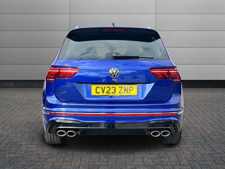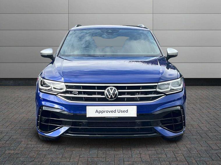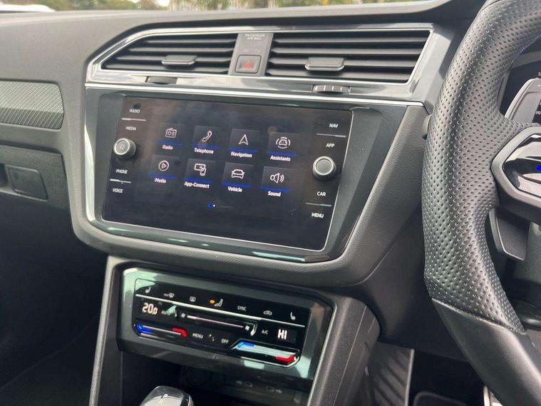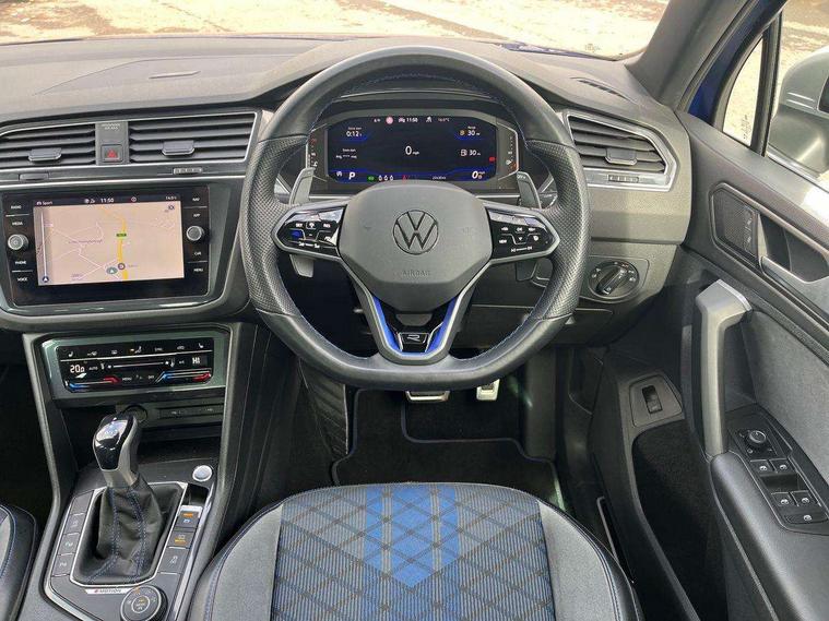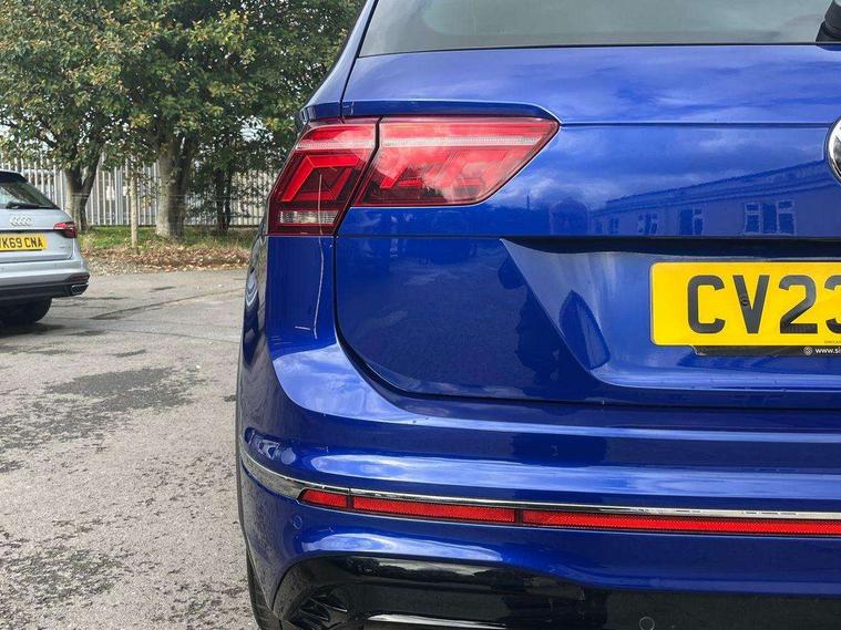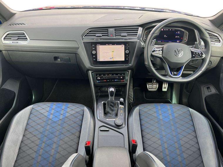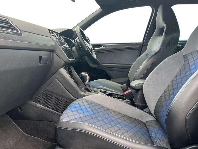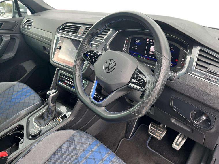 Adaptive cruise control ACC stop and go including speed limiter, App-Connect incl. App-Connect Wireless for Apple CarPlay and Android Auto, Bluetooth phone integration system, Distance control assist, Driver alert system, Driver profile selection, Dynamic road sign display, eCall emergency call system, Electromechanical speed sensitive power steering, Engine start/stop button, Instrument cluster mph speedometer Great Britain, Lane keeping system Lane Assist, Lights on warning, Motorised electric tailgate operated via key fob, drivers door and foot movement under tailgate, Multifunction front facing camera, Outside temperature display, Premium multifunction display with multi colour display, Rev counter, Revision / skills operating concept travel assistant, Service interval indicator, Speed limit display, Start/stop system with regenerative braking, Tailgate/trunk lid unlocking from outside, Trip computer, Warning sound and light for doors and tailgate open, ACC - Adaptive chassis contol with adaptive dampers, All wheel drive - 4Motion, Battery regeneration during braking, XDS electronic differential lock for improved traction and handling, Diversity antenna for FM reception, SD card slot, Simultaneous pairing of 2 compatible mobile devices, SMS functionality - read, compose and send SMS messages using touch-screen display, Title and cover art display, USB C ports, Auto dimming interior rear view mirror, Automatic headlight control system, Body colour door handles, Body coloured door mirrors with integrated indicators, Chrome matt mirror covers, Chrome moldings on the side windows, Coming/leaving home lighting function, Dynamic headlight range control, Front and rear electric windows, Front illuminated door sills with R logo, Heated rear window, High level 3rd brake light, IQ light-Adv high beam, Dynamic light assist for LED matrix headlamp+LED separate DRL+DCL, dark red rear LED tech, Poor weather light+ cornering light, Laminated safety glass windshield, heat and sound insulating, LED rear number plate lights, License plate carrier in front and rear, Poor weather light and cornering light, Privacy glass for rear side windows and rear window, R-Logo light projection, R-Logo on radiator grille with side panels and rear, R-specific diffuser, painted black with cut out for trailer hitch, R-Specific front and rear bumpers, Rain sensor windscreen wipers, Rear fog lamp, Rear side wing doors, Rear spoiler in R style, Rear windscreen washer and wiper with interval delay, Side and rear windows in heat insulating glass, Silver anodised roof rails, Trailer Stability Programme, Windscreen wipers/ intermittent wipe + 4 position delay, 12V outlet in center console rear and in luggage compartment, 12V outlet in front and tray, 2 cup holders in front, 2 LED front reading lights, 2 LED rear reading lights, 3 bench rear seats in 2nd row, 3 rear headrests, 4 load lashing points, 40:20:40 split folding rear seats, Air Care Climatronic 3 zone automatic climate control with enhanced air filter and controls in the rear, Backrest release for left front seat, Black headlining, Climate control unit rear with touch function, Door and side trim panel in foam film, insert in leatherette, Floor mats with R-Logo and stitching, Front centre armrest, Front footwell illumination, Front seats head restraints (x-adjustment), Height adjustable front seats, Height/reach adjust steering wheel, Instrument lighting white adjustable panel illumination, Interior light with delay, Isofix Preparation 2 Rear child seats, Leather gear knob, Lighting door sill trim at front with R Logo, Lockable cooled glovebox, Luggage compartment lighting, Luggage net, Pedals and footrest in stainless steel, R Specific key caps, R-specific sport skin with R Logo in active Info dsiplay, R-taster (direct selection of race mode/ flap control), Rear bench seat asymetrically split folding, longitudinally movable and folding with load-through hatch and center armrest, Remote unlocking for rear seat backrest, Removable luggage cover, Removable rear headrests, Safety optimised front head restraints, Single front passenger seat, Sliding/reclining rear seats, Standard rear seat release, Storage compartment in driver's door, Storage compartment in passenger's door, Storage compartment in rear doors, Storage compartments in luggage area left and right, Storage tray on dashboard, Sun visors with illuminated vanity mirrors, Top sports seats integrated headrest, blue R-Logo in front seats, seat centre panels and outer rear seats in fabric inner side bolster art Velors, Variable boot floor, height adjustable and removable, Easy open and close pack with safelock - Tiguan, 3 point seat belt for centre rear seats, 3 point seat belts with seat belt pretensioners for the outer rear seats, Active bonnet, Curtain airbags for front and rear passengers, Driver/Front Passenger airbags, Drivers knee airbag, Electronic parking brake with auto hold, Electronic Stability Control with driver steering recommendation, ABS, ASR, EDL, EDTC and trailer stabilization, Front assist with autonomous emergency braking (for Adaptive Cruise Control ACC up to 130 mph), Front disc brakes, Front passenger airbag deactivation, Front side airbags, Height adjustable front 3 point seatbelts + pretensioners, Hill hold control, Manual child proof rear door locks, Pedestrian monitoring system, Power assisted brakes, Proactive passenger protection system in combination with front assist, Rear disc brakes, Rigid safety cell with front and rear crumple zones, Two tone horn, Tyre pressure monitoring system, Warning sound and light for front seat belts if unfastened, Anti theft alarm system with interior monitoring, backup horn and towing protection, Anti theft wheel bolts, Central locking system with safelock radio remote control and 2 remote control folding keys, Electronic engine immobiliser, Tool kit, Tyre mobility kit Includes 12V compressor and tyre sealant,