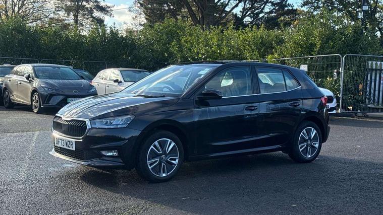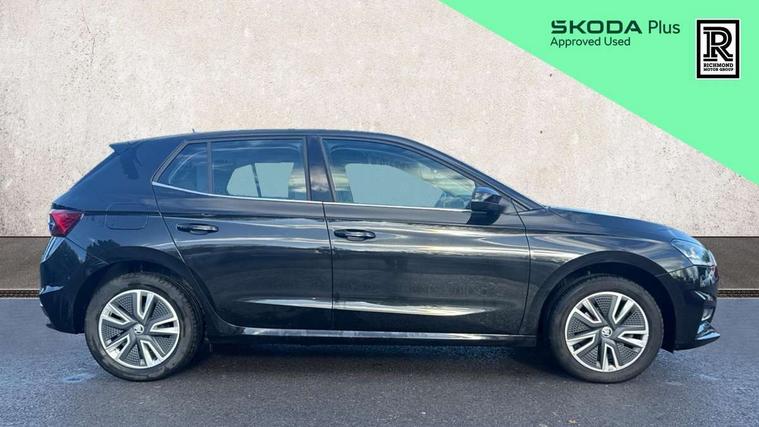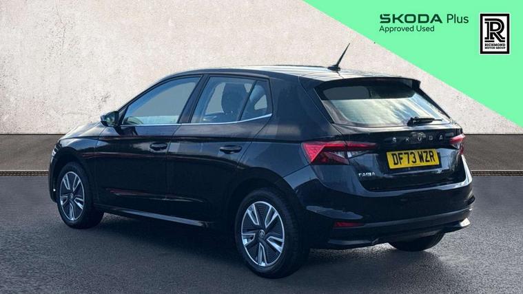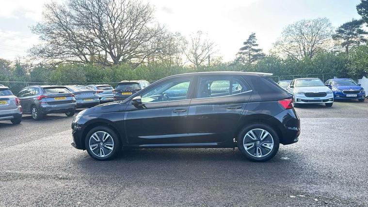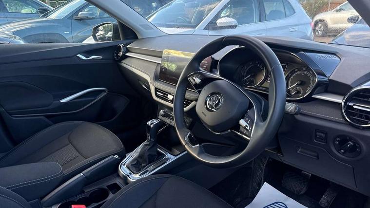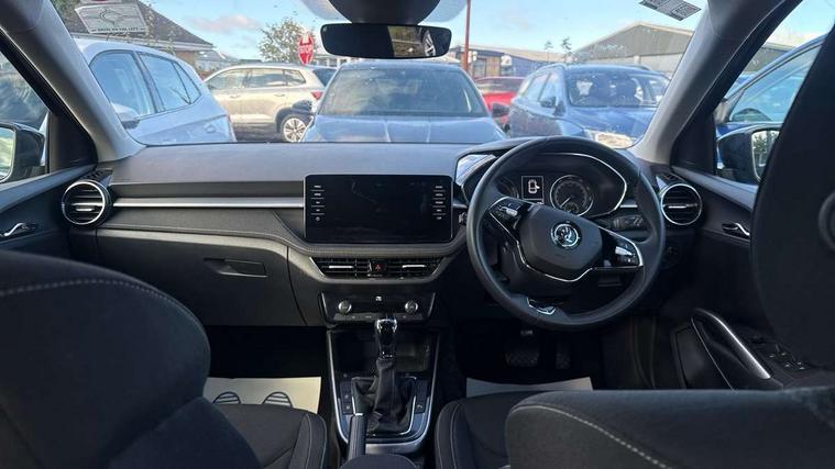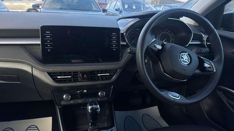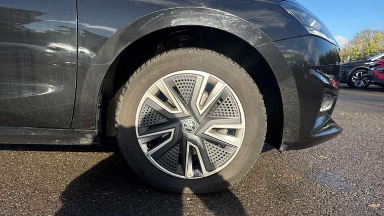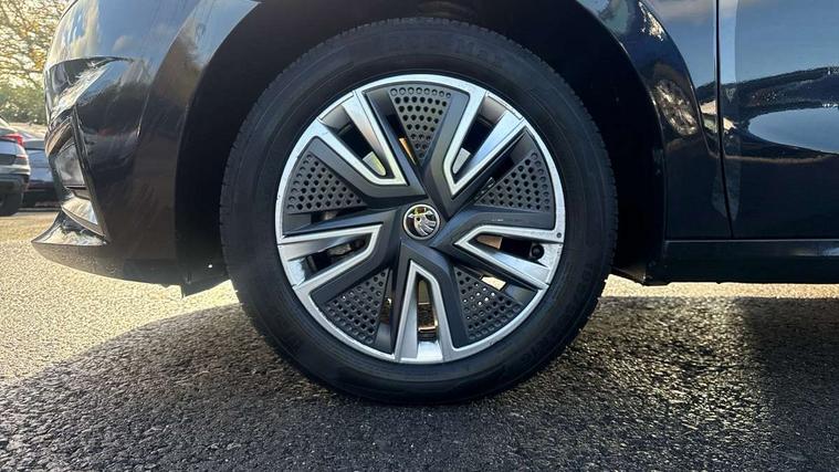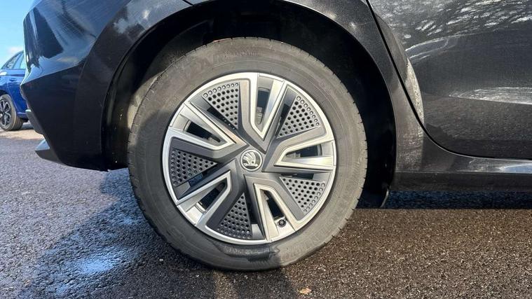 Bluetooth connection, Driver alert system - DAS, Electromechanical power steering, Exterior temperature gauge, Service interval indicator, 2x USB-C in the front (for data transmission and charging), 6 Speakers (4 in front and 2 in rear), Auxiliary socket for external MP3 player, DAB digital radio reception, Web radio, Auto dimming rear view mirror, Basic LED Headlights, Body colour door mirrors, Body coloured bumpers, Chrome window surround, Door mirror integrated indicators, Electrically adjustable and heated door mirrors, Front and rear electric windows, Front fog lights, Front window wiper intermittent control, Headlight range control - Automatic, Ice scraper in fuel cap, LED daytime running lights with coming and leaving home feature, Rain sensor, Rear LED fog light, Rear side wing doors, Rear window wiper with washing nozzles, Roof mounted spoiler, SKODA tailgate lettering in chrome, Third brake light, 3 rear headrests, Backrest split and folding, Central console with fixed cup holder and storage box, Chrome handbrake release button, Comfort seats, Fabric upholstery, Front centre armrest, Gearshift knob/handle in leather, Hand brake lever handle in leather, Height adjustable front headrests, Height adjustable front seats, Height adjustable steering wheel, ISOFIX and TopTether anchorage points to the outer rear seats, ISOFIX and TopTether on the front passenger seat, Luggage compartment lighting, Manually adjustable lumbar support in front seats, Pollen filter, Rear seat bench unsplit, Removable cup holder, Single front passenger seat, Storm grey headlining, Sun visors with mirror and airbag label on passenger side, Textile floor mats, Ticket holder, Umbrella in drivers door, 3-point height adjustable front seats belts with pretensioner and force limiter, Automatic warning lights in case of crash, Driver and passengers airbag with switch off function, e-Call+, ESC including ABS, MSR, ASR, EDS, HBA and XDS, Front and rear seat belt warning, FRONT ASSIST (AEB City and AEB Inter Urban), Front side airbags, Head airbags, Hill hold assist, One tone horn, Pedestrian protection, Three rear 3-points safety seat belts with pretensioner and force limiter including stop function for outer rear seat belts, Tyre pressure monitoring system, Anti-theft alarm system including immobiliser, interior monitoring, backup horn, and towing protection, Central locking with radio remote control, interior controls, SAFE function and 2 foldable keys, KESSY - Keyless engine start/stop, Chrome edged air vents, Satin black door and side trim panel in front, Anti-theft wheel bolts protection, Super-low rolling resistance tyres,