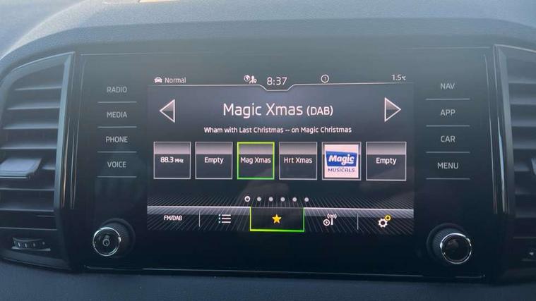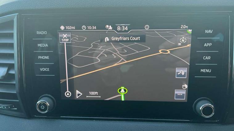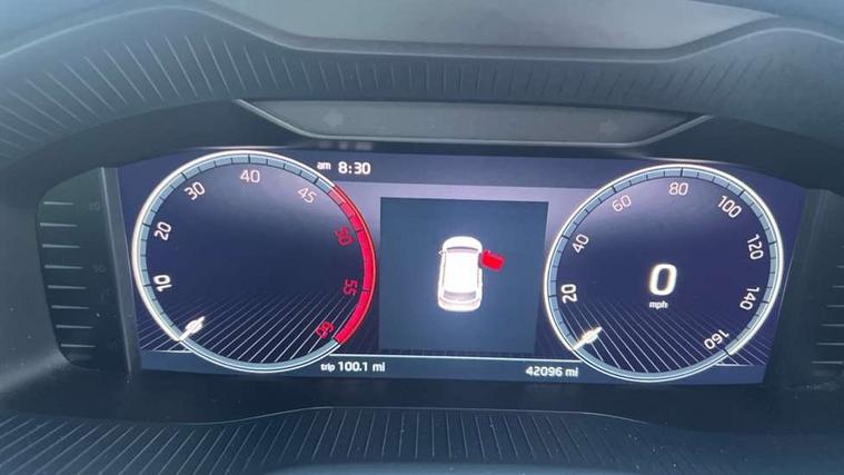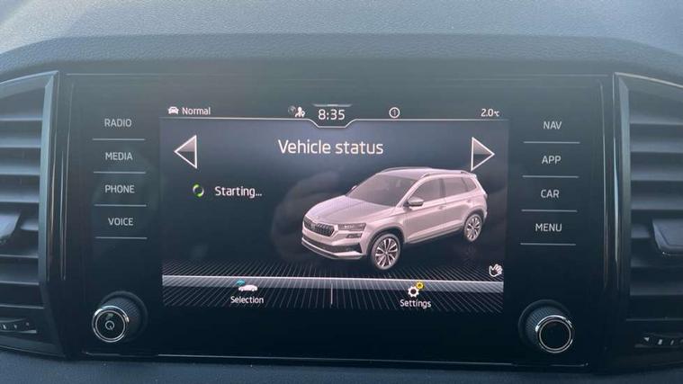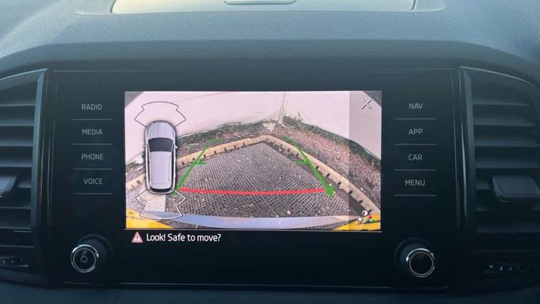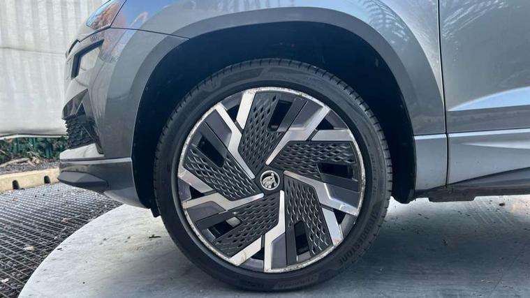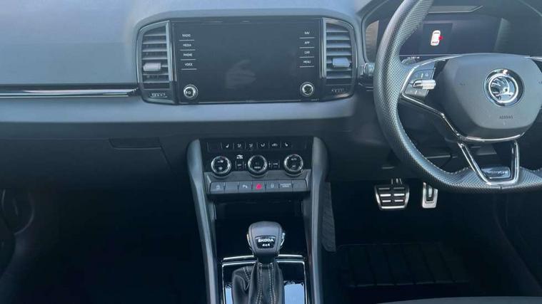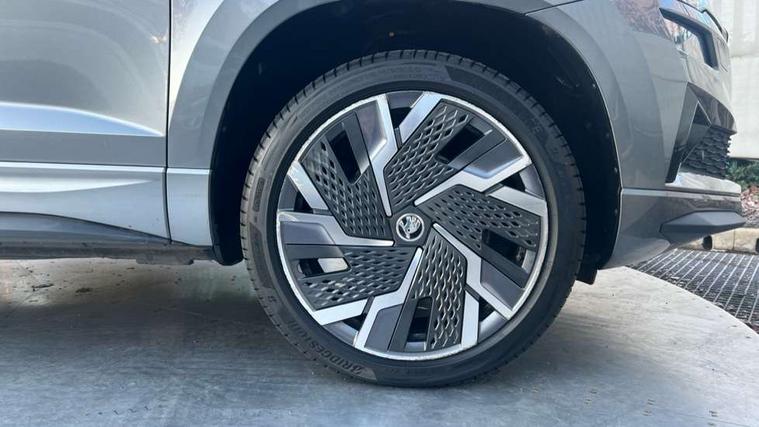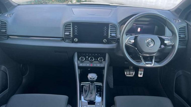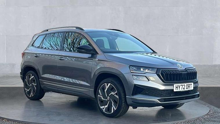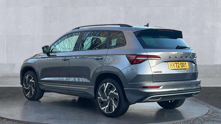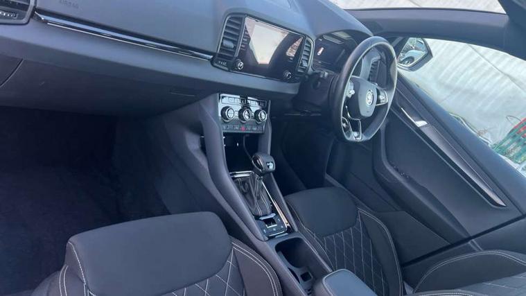 8" Digital display, Care connect, Driver fatigue sensor, Emergency services call system, Outside temperature gauge, Service interval indicator, SmartLink wireless for Apple and wired for Android, Start/stop system with regenerative braking, USB C Port x 2 in front centre console, Virtual pedal with electrically operated boot door, Diesel particulate filter, 8 Speakers, DAB radio with Bluetooth, USB connection, Acoustic glass, Aero front windscreen wipers with intermittent function, Auto dimming rear view mirror with light and rain sensors, Black door mirrors, Black electric window control buttons, Black radiator grille, Black roof rails, Body colour door handles, Dynamic headlight range control with cornering light function, Electric front and rear windows with child proof lock, Front door steps with SportLine logo, Heated rear windscreen, LED daytime running lights, LED rear lights with high functionality welcome effect and dynamic indicators, Light assistant (coming/leaving home/tunnel light), Panoramic sliding sunroof, Plastic scuff plates, Privacy glass, Protective door side sills in body colour, Rear diffuser, Rear side wing doors, Rear spoiler, Rear window wiper with washer system and intermittent control, Safety reflectors on front doors, Skoda lettering on tailgate in black, Sportline badge on front fender, Sportline decorative inserts with badging, Sports front and rear bumpers, Third brake light, 1.5 litre bottle holders in driver and front passenger door panels, 12V socket in boot, 12v socket in front centre armrest with storage compartment and rear air vents, 2 Folding hooks and nets in boot, 3 rear height adjustable headrests, 3 seat bench in 2nd row, 3 spoke leather sports multifunction steering wheel and silver stitching with gear shift paddles, 4 foldable roof handles with rear coat hooks, Black floor carpet, Black roof headlining, Chrome inner door handles, Double sided boot floor, Foldable hooks in the boot, Front head restraints, Height adjustable front three point seats belts with tensioners, Height/reach adjust steering wheel, Ice scraper, Illuminated glovebox, Illuminated luggage compartment, Interior noise suppression, Isofix child seat preparation outer rear, Manual lumbar support for front seats, Pen holder, Pollen filter, Rear boot cover, Rear reading lights, Rear seats fixed folding and divided 60:40, Rubbish bin door, Safety vest holder, Single front passenger seat, Storage box in upper central dashboard closed, Sunvisors with illuminated vanity mirrors, Textile floor mats, Ticket holder, Titan black interior ceiling, Welcome animation with sportline logo, Light Pack - Karoq, Parking pack - Karoq, Automatic door unlocking in case of crash, Automatic fuel cut off in case of crash, Child locks on rear doors, Driver airbag, Electronic parking brake with auto hold function, Emergency rear braking signal, ESC including ABS, MSR, ASR, EDS, HBA, DSR, RBS, MKB and traction control, Front side airbags, Hill hold control, Knee airbags, Passenger airbag with switch-off function, Pedestrian monitor, Seatbelt reminder signalisation and pretensioner for all seats, Three point seatbelts rear, Two tone horn, Tyre pressure display, Tyre pressure monitor, Alarm with interior monitoring, back up horn and tilt sensor with safe function, Electronic engine immobiliser, Keyless entry and start/stop, Remote central locking with 2 remote folding keys, Black air vent surround, Black centre console, Satin black dashboard, Satin black door trim, 19" Sagitarius anthracite alloy wheels with matt black aero inserts, Anti-theft wheel bolts protection, Matt black aero hub caps, Storage on wheel cover, Tool kit,
