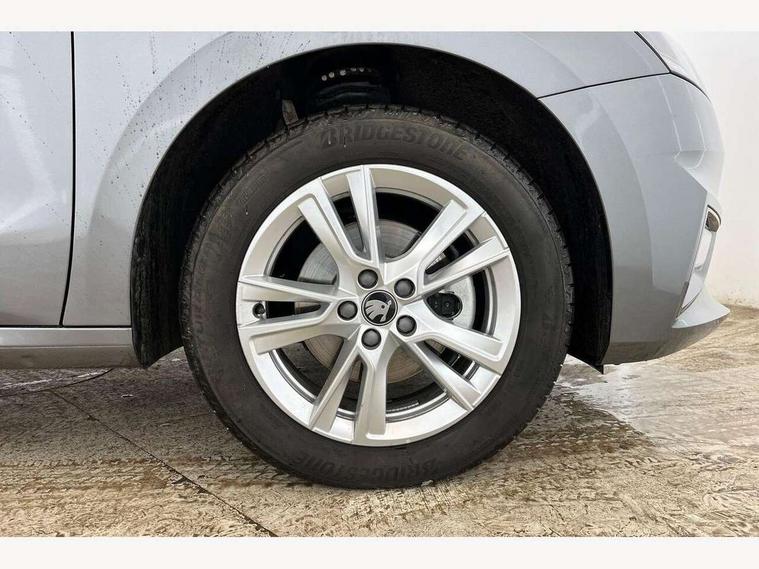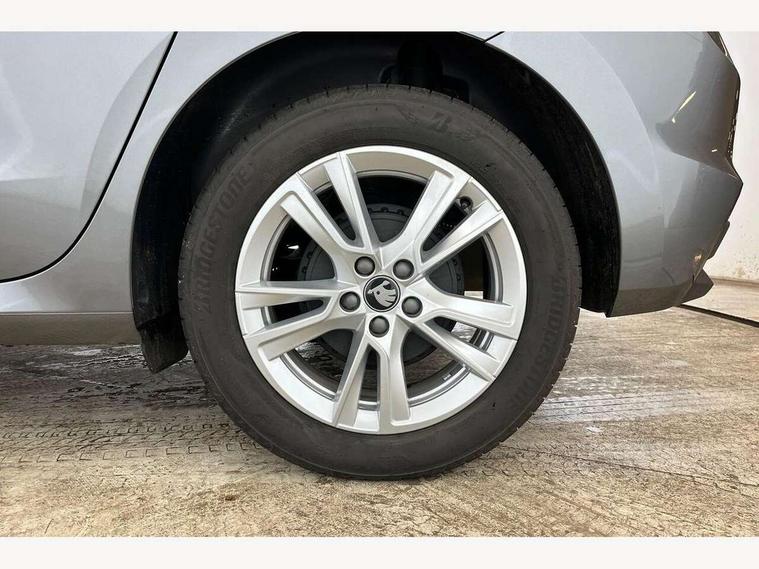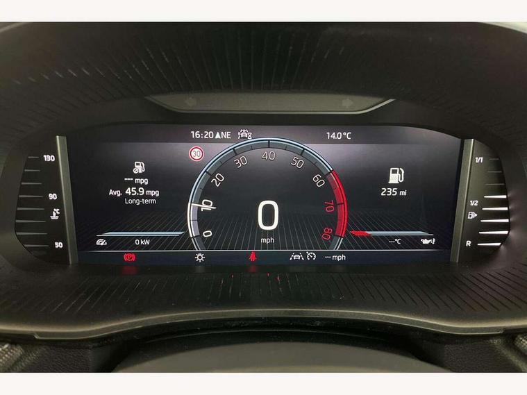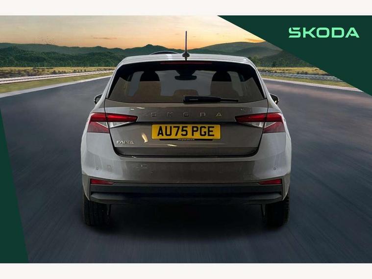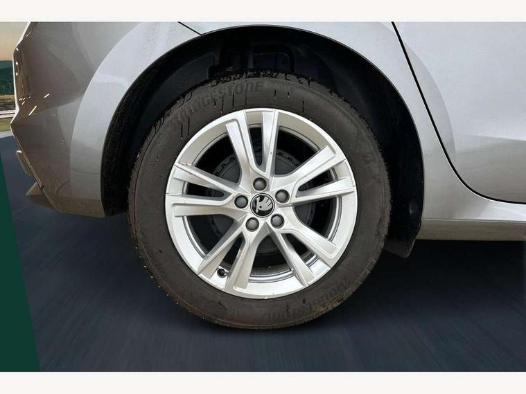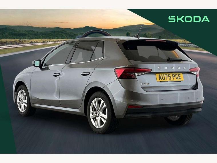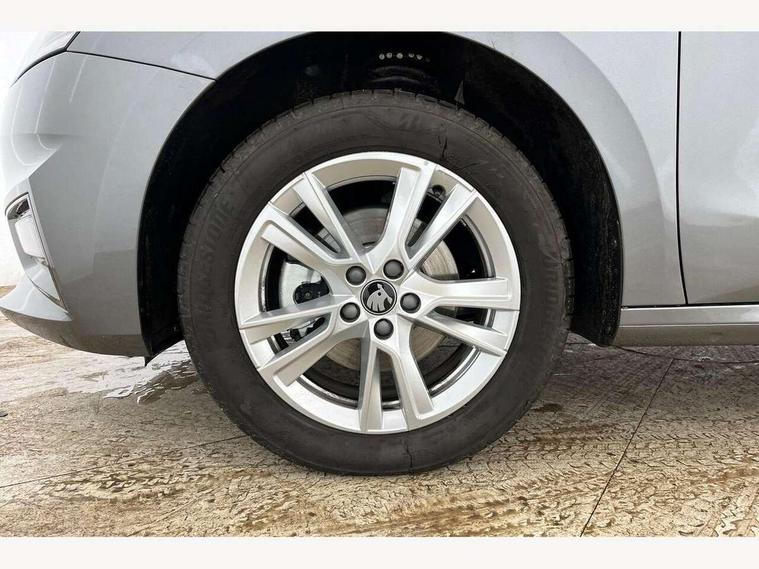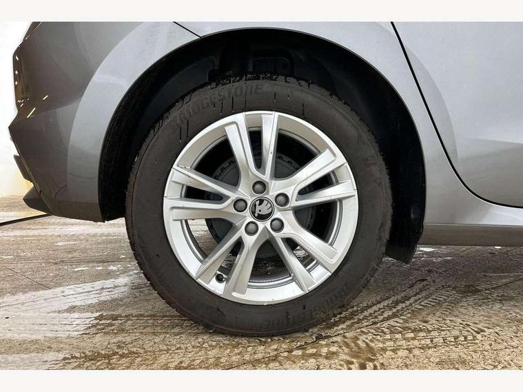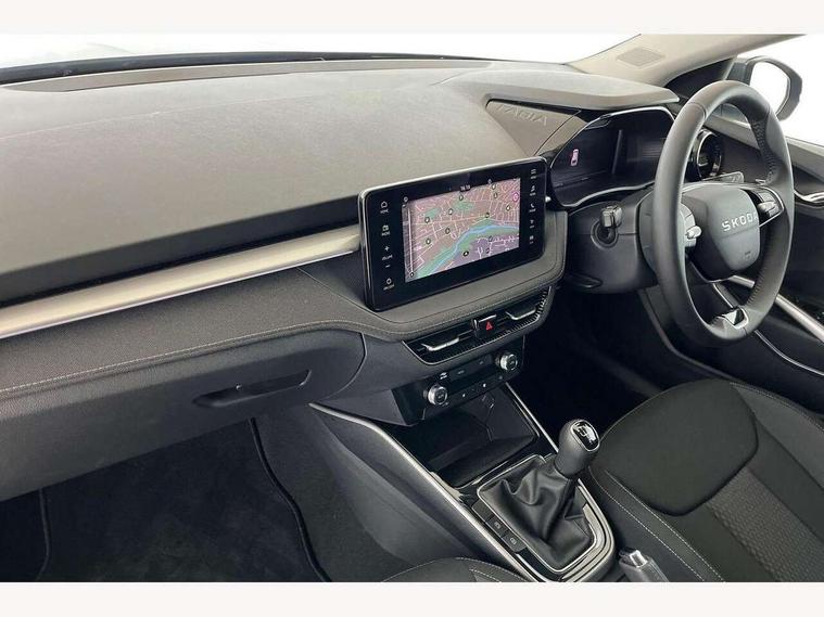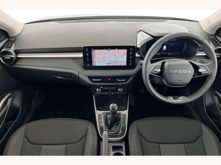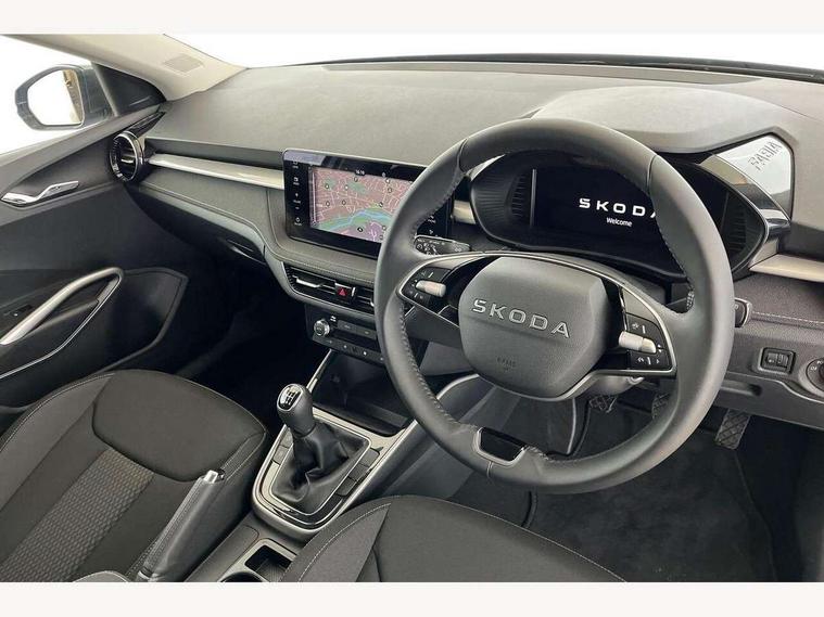 Advanced driver attention and drowsiness monitor, Bluetooth connection, Driver alert system, Electromechanical power steering, Exterior temperature gauge, Service interval indicator, Traffic sign recognition, Virtual cockpit with 10.25" colour display, Wireless SmartLink for Apple CarPlay and Android Auto, 6 Speakers (4 in front and 2 in rear), 9.2" colour display skoda navigation system with voice control and web radio, Auxiliary socket for external MP3 player, DAB digital radio reception, Auto dimming rear view mirror, Body colour door mirrors, Body coloured bumpers, Chrome window surround, Door mirror integrated indicators, Front and rear electric windows, Front window wiper intermittent control, Headlight range control - Automatic, Ice scraper in fuel cap, LED 3rd brake light, LED daytime running lights with coming and leaving home feature, LED rear lights, Privacy glass, Rear LED fog light, Rear side wing doors, Rear window wiper with washing nozzles, Roof mounted spoiler, SKODA tailgate lettering in chrome, Unique dark chrome design logo on alloy wheels, 2 LED reading lights in front and rear, 3 rear headrests, Backrest split and folding, Central console with fixed cup holder and storage box, Chrome handbrake release button, Comfort seats, Door sills with fabia badging, Dual zone air conditioning with climatronic electronic control, Fabric upholstery, Front centre armrest, Gearshift knob/handle in leather, Grain satin black interior door handles, Hand brake lever handle in leather, Height adjustable front headrests, Height adjustable front seats, Height adjustable steering wheel, ISOFIX and TopTether anchorage points to the outer rear seats, ISOFIX and TopTether on the front passenger seat, Luggage compartment lighting, Manually adjustable lumbar support in front seats, Pollen filter, Rear seat bench unsplit, Single front passenger seat, Skoda lettering on steering wheel, Storm grey headlining, Sun visors with mirror and airbag label on passenger side, Textile floor mats, Ticket holder, Umbrella in drivers door, Ambient lighting pack - Fabia Hatchback, 3-point height adjustable front seats belts with pretensioner and force limiter, Automatic warning lights in case of crash, Driver and passengers airbag with switch off function, e-Call+, ESC including ABS, MSR, ASR, EDS, HBA and XDS, Front and rear seat belt warning, FRONT ASSIST (AEB City and AEB Inter Urban), Front side airbags, Head airbags, One tone horn, Pedestrian protection, Three rear 3-points safety seat belts with pretensioner and force limiter including stop function for outer rear seat belts, Tyre pressure monitoring system, Anti-theft alarm system including immobiliser, interior monitoring, backup horn, and towing protection, Central locking with radio remote control, interior controls, SAFE function and 2 foldable keys, Chrome edged air vents, Grain satin black central console cover, Metallic grey upper decorative trim, Satin black door and side trim panel in front, Textile microsuede grey lower decorative trim with art grey stitching, Anti-theft wheel bolts protection, Super-low rolling resistance tyres,
