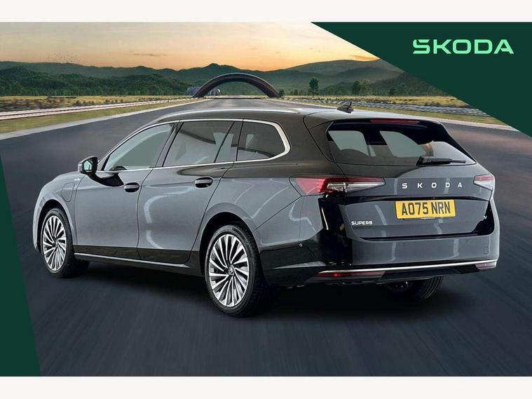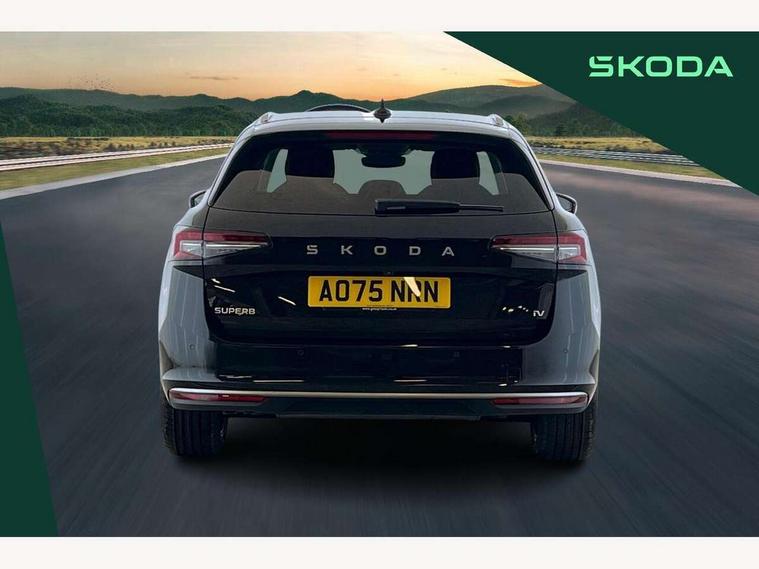 13" touchscreen display with satellite navigation, 4x USB-C ports (2x in front centre console and 2x in rear) (45W), Adaptive cruise control with speed assist, lane assist plus and traffic tram assist, Blind spot detection with door exit warning, Bluetooth system, CareConnect and Emergency Call, ChatGPT functionality, Drive mode selection, Driver fatigue sensor, Front assist with extended predictive pedestrian protection, Front cross traffic assist, PAS, Quick start all heating software functionality, Remote park assist, Stop/start engine system, Traffic sign recognition, Turn assist with evasive assistance, Virtual Cockpit - 10.25" digital display, Voice control system, Washer for rear camera, Wireless charging for one smartphone (15W) with cooling function, Wireless smartlink apple carplay, SmartLink+ android auto, Dynamic chassis control plus with progressive dynamic steering, Mode 3 charging cable, Canton sound system - 14+1 speaker, DAB Digital radio, Display cleaner, FM radio connection, Web radio connection, Acoustic side windows and interior noise suppression, Backdrop lighting, Body colour door handles, Body coloured door mirrors, Chrome roof rails, Chrome window surround, Dynamic range control with poor weather light and integrated fog light, Electrically adjustable, heated, folding and driver side auto-dimming door mirrors with memory function, integrated indicators and logo projection, Frameless auto-dimming rear view mirror with USB-C, Ice scraper in fuel tank cap, LED 3rd brake light, Light assist with High beam control, Light assistant (coming/leaving home/tunnel light), Privacy glass, Rear fog lights (x2), Rear roof spoiler, Rear side wing doors, Rear windscreen wiper, Unique dark chrome design logo on alloy wheels, Unique dark chrome grille surround with dark chrome rib elements, plus dark chrome rear diffuser strip, Windscreen wipers with rain sensor, 12V socket 1x centre console 1x boot, 14-way electrically adjustable, memory, front seats with 4-way pneumatic lumbar support, and extendable thigh support with smart comfort entry aid, 2x cargo elements in boot, 2x light in boot, 3 seat bench in 2nd row, 4x foldable bag hooks in boot, 60:40 Split folding rear seats, Advanced massage function for front seats, Bottle holders in the front doors 1.5 litre bottle and rear 1.5 litre bottle, Cup holder in front with easy open mat, Front armrest with storage box, Front sports comfort seats, Heated and ventilated front seats, Height adjustable front and rear head restraints, Illuminated glovebox, Interior lights with control switches, Isofix child seat fittings in outer rear and front passenger seats, LED front and rear reading lights, Single front passenger seat, Skoda lettering on steering wheel, Storage compartment with cover, Storage pockets on back of front seats, Sun visors with illuminated vanity mirrors, Ticket holder on A Pillar, Tri zone climate control, Umbrella in driver's door, Light and view package - Superb, Parking package - Superb, Transport package - Superb Estate, Winter package - Superb, 3 rear seatbelts, 8 Airbags - Front driver and passenger, front side driver and passenger, centre, curtain front and rear, drivers knee, Crew protect assist, Driver and passenger seatbelts with warning light, Electronic parking brake, ESC including ABS, EBV, MSR, ASR, EDS, HBA, DSR, RBS, CBC, multi-collision brake (MKB) and Auto hold, Hill hold assist, Power operated child lock in rear doors, Alarm with interior monitoring tilt sensor and back up horn, Backrest remote release from trunk, Electronic engine immobiliser, Keyless start/stop, Remote central locking with SAFE system, Third key, Walk away locking, Decorative front door sills, Tyre repair kit,