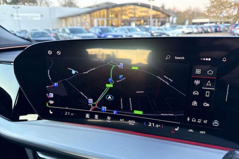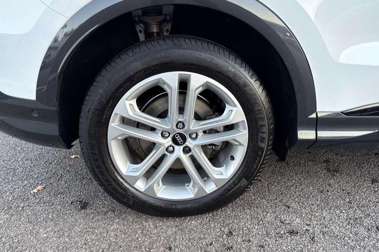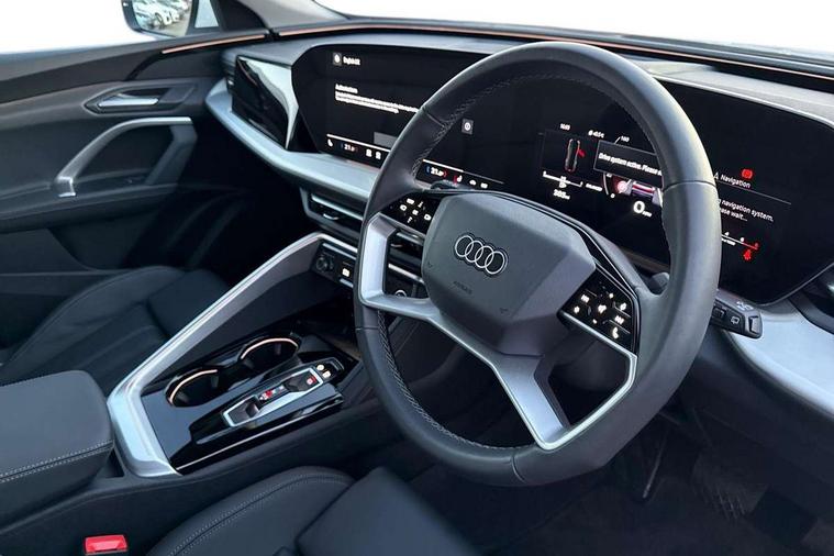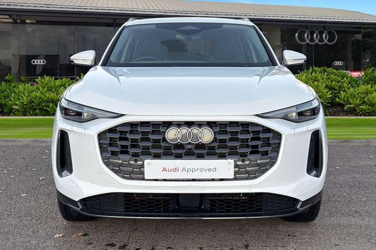 Adaptive cruise control, Advanced driver attention alert, Audi application store, Audi connect emergency call and service, Audi drive select, Audi smartphone interface, Audi virtual cockpit plus with 11.9" OLED colour display, Camera based traffic sign recognition, Fatigue monitor, Front cross traffic intersection assist, Lane departure warning system, MMI navigation plus with high resolution 14.5" OLED touchscreen colour display, Park assist plus, Parking system plus with 360 display, PAS, Reversing camera, Swerve assist and turn assist, Traffic sign based speed limiter, Comfort suspension, 2 USB-C ports in both the front and rear, Audi sound system impressive sound with 8 loudspeakers including centre speaker and subwoofer, 6-channel amplifier with a total output of 180 watts, DAB Digital radio, Smartphone compartment with wireless charging, Aluminium roof rails, Auto dimming rear view mirror, Body coloured door mirrors, Coming/leaving home lighting function, Contrast bumpers in Volcano grey metallic paint finish, Electrically adjustable heated and folding + automatically dimming exterior mirrors, Front and rear electric windows, Front door sill trims with aluminium inlays, illuminated, Headlight cleaning system, Heated rear window, High beam assist, High gloss window surrounds, LED headlights plus incl. digital DRL, dynamic coming and leaving home function with turning/all weather/motorway/manouevring and intersection lights, LED rear lights pro incl. dynamic rear indicators and illuminated light strip with animated coming and leaving home function, LED third brake light, Logo projection light in exterior mirrors, Rear and side windows with heat insulating glass, Rear side wing doors, Rear wash/wipe, Towbar preparation, Windscreen with acoustic glazing, 3 rear head restraints, 3 seat bench in 2nd row, 40:20:40 split folding rear seat bench with centre armrest and cup holders, Comfort centre armrest, Deluxe 3 zone electronic climate control, Front and rear floor mats, Front seats with manual adjustment for position and 4-way electric lumbar support, Front sport seats with integrated head restraints, Heated front seats, i-Size child seat mounting on the front passenger side and outer rear seats, i-Size and top tether on the outer rear seats, Interior trim in aluminium look, Luggage compartment lid, electrically opening and closing, Manual steering column adjustment, Rock grey cloth headlining, Single front passenger seat, Softwrap in leatherette, Twin leather upholstery, Twin spoke leather steering wheel with multi-function buttons with touch control, shift paddles and trim in chrome look, Ambient lighting package plus - Q5, 3x3 point rear seatbelts, ABS, Acoustic vehicle alerting system, Driver and front passenger airbag with passenger airbag deactivation, Electric child safety locks, First aid kit with warning triangle and high visibility vests, Front emergency brake assist, Front side airbags with head airbag system and front interaction airbag, Hill hold assist, Rear seat occupant reminder, Tyre pressure loss indicator, Anti theft alarm, Anti-theft wheel bolts, Remote control key with SAFELOCK and keyless go, Accent surfaces and control buttons in gloss black, Black dashboard with contrast stitching, Matt brushed aluminium inlays, Steel grey seat stitching, Upper and lower interior elements in artificial leather, Tyre repair kit,