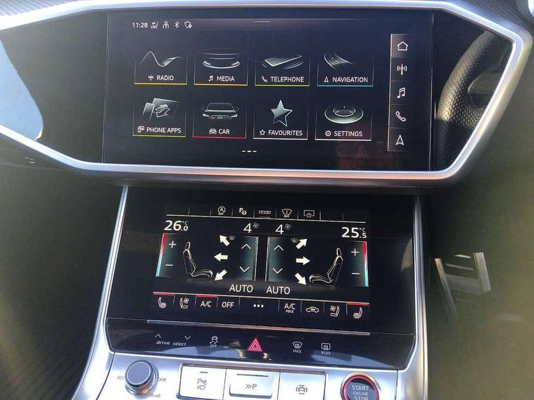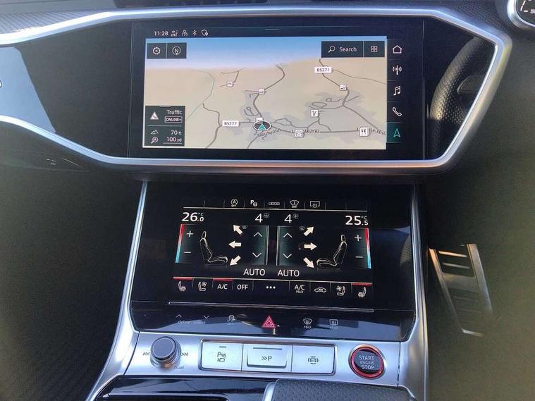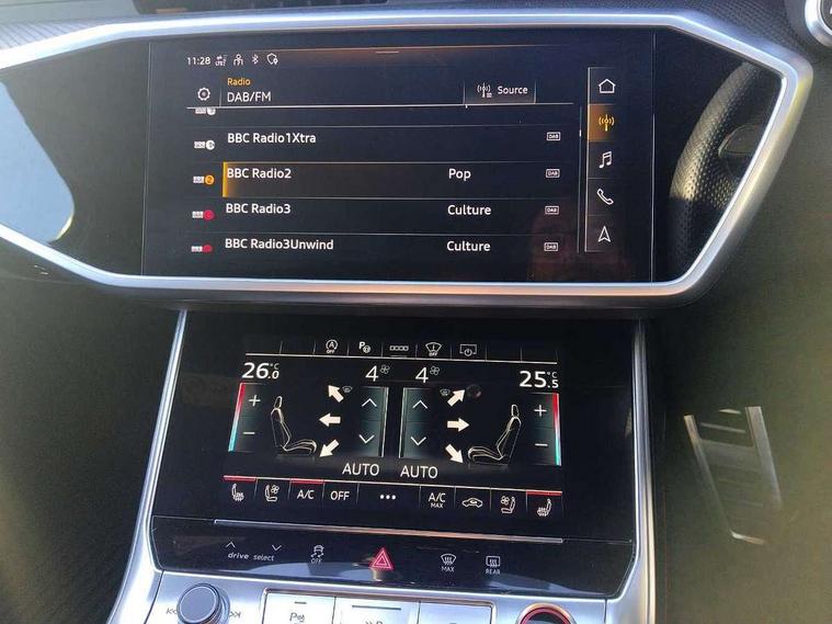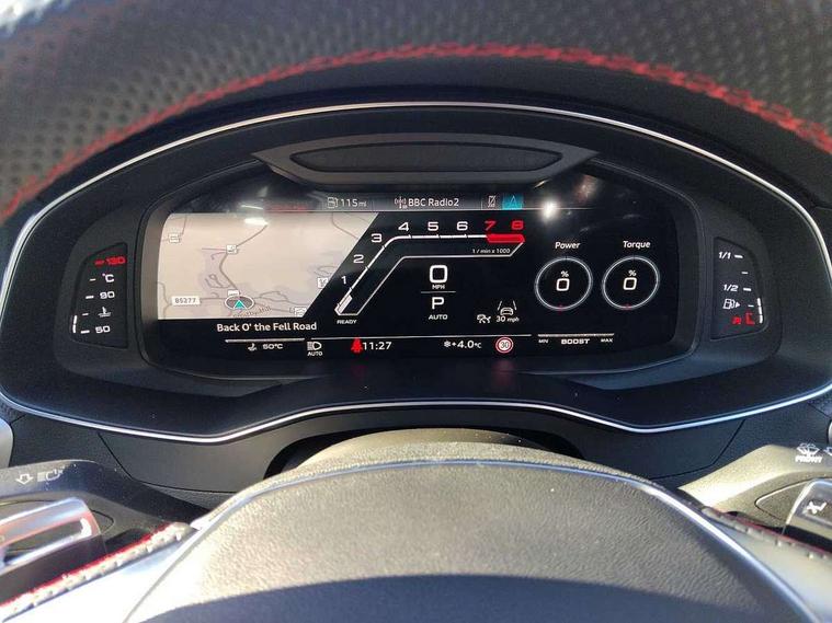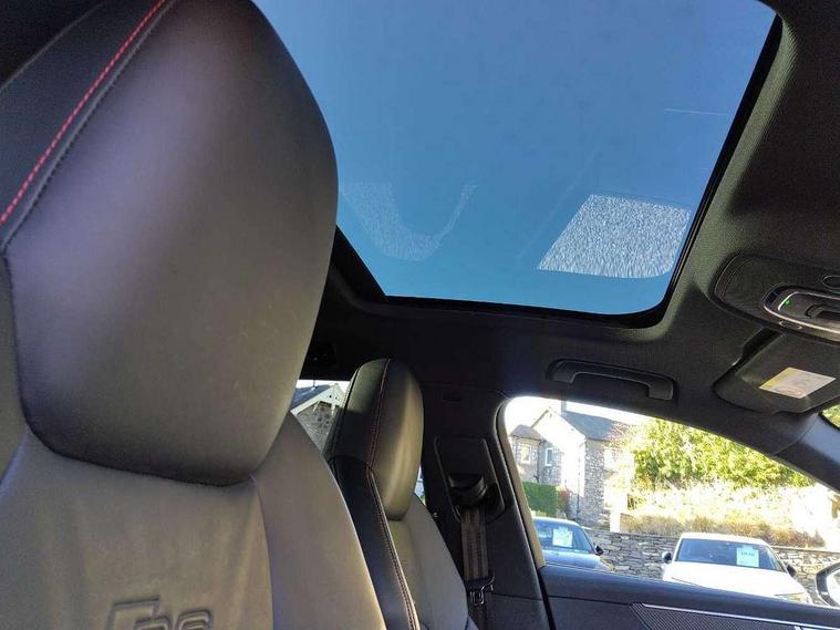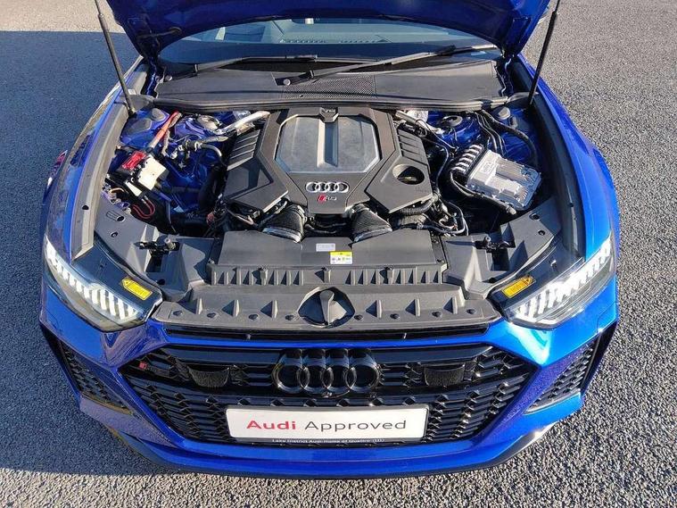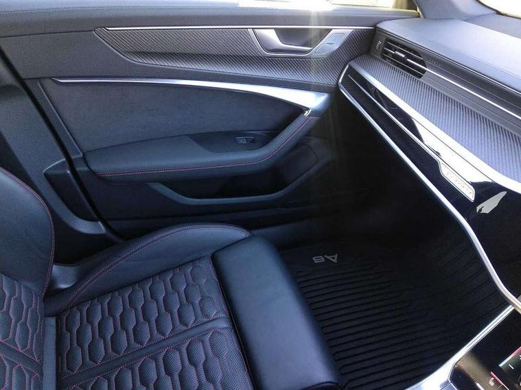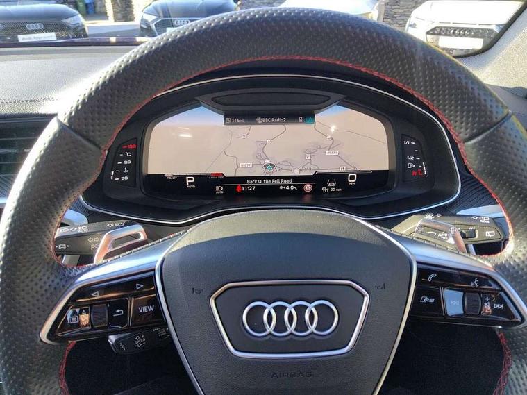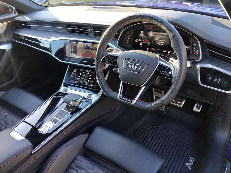 360 degree parking camera, Audi connect safety and service (e-call), Audi connect with Amazon Alexa Integration, Audi drive select, Audi virtual cockpit plus with RS specific design and 12.3" display with additional graphic display options, Automatic start/stop system, Bluetooth interface, Dynamic all wheel steering, Head up Display, Lane departure warning system, MMI navigation with MMI touch + twin touch screens 10.1" and 8.6" with haptic and acoustic feedback, Operating buttons in black, glass look with haptic feedback including extended aluminium look, Power door closure, Power latching doors, Power operated tailgate, Service interval indicator, Smartphone interface includes wireless Apple carplay/Android Auto, Voice control system, 73 litre fuel tank, Increased top speed to 174mph, Quattro sports differential, RS Sports suspension plus with dynamic ride control, 2 USB-C ports with charging functionality in the rear, Audi music interface, Bang & Olufsen 3D Premium Sound System, DAB Digital radio, 3rd brake light, Adaptive windscreen wipers with integrated washer jets, Black mirror caps, Body colour rear roof spoiler, Electric front/rear windows, Electric panoramic opening glass sunroof, Electrically folding auto dimming/adjustable/heated door mirrors with LED side indicators and kerb view function for passenger side, Frameless auto dimming interior rear view mirror, HD Matrix LED headlights with Audi laser light with dynamic light design and dynamic turn signal, Headlight washers, Heat insulating darkened glass in side and rear windows, Illuminated door sill trims with RS lettering, LED daytime running lights, LED rear combination lamps with dynamic light design and dynamic turn signal, Privacy glass with rear/side windows and acoustic glazing side windows, Radiator grille in honeycomb structure, large front air inlets and rear diffuser in gloss black, Rain and light sensors, Rear side wing doors, Rear sports exhaust system with gloss black oval tailpipe, Rear wiper, RS front bumper with air inlets on both side, Wheel arch extensions, 2 seat bench in 2nd row, 3 spoke RS flat bottomed leather multifunction steering wheel with shift paddles, heated funtion, contrast stitching, RS mode button and RS emblem, 4 way electric lumbar support for driver and front passenger, 4 zone deluxe automatic climate control, Aluminiium gear shift paddles, Audi Sport logo projection (Audi Beam) in front and rear, Black cloth headlining, Electric steering wheel adjustment, Electrically adjustable front seats with driver memory, Front and rear headrests, Front centre armrest, Front seat ventilation, Front/rear floor mats, Heated front and rear seats, ISOFIX child seat mounting and Top Tether with front passenger airbag deactivation, RS Front sports seats, Single passenger seat, Stainless steel pedals and foot rest, Valcona leather upholstery with perforated honeycomb and RS lettering, Air quality pack - RS6, City assist pack - RS6, Extended LED interior multi coloured lighting pack - RS6, Gloss black styling pack - RS6, Parking assistance plus pack - RS6, Storage pack - RS6, Tour pack - RS6, 2 x 3-point rear seatbelts, Airbags - Front side, front and rear including head, Audi pre-sense front, Direct tyre pressure monitoring system, EBD - Electronic brakeforce distribution, Electromechanical parking brake, Electronic Stability Control (ESC) including ABS, ASR and EDL, Extended pedestrian protection measures, Manual child lock in rear doors, Warning triangle and first aid kit, Advanced key, Anti theft alarm with tow away protection, Anti-theft wheel bolts and wheel loosening detection, Immobiliser, Keyless Go, Remote central locking, 22" Titanium matt gloss turned finish alloy wheels, Tyre repair kit,
