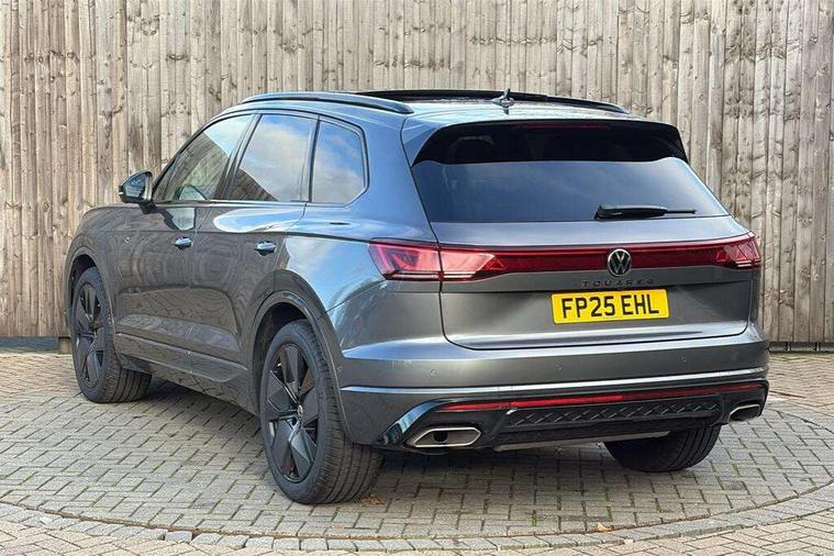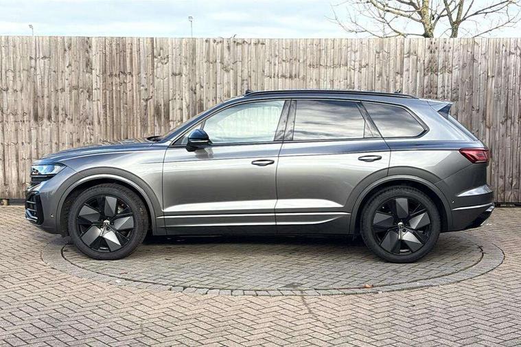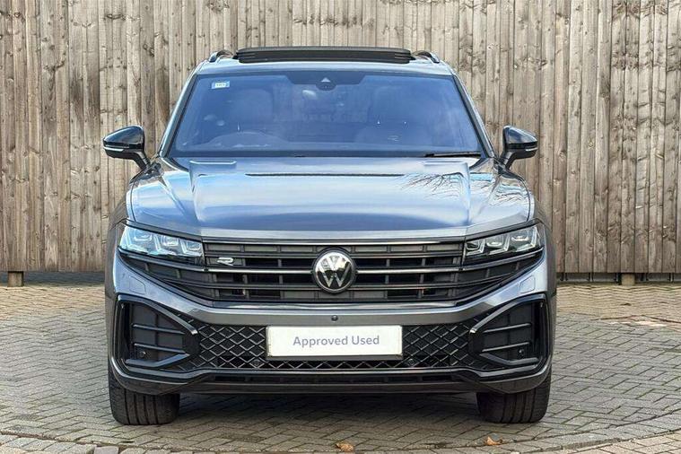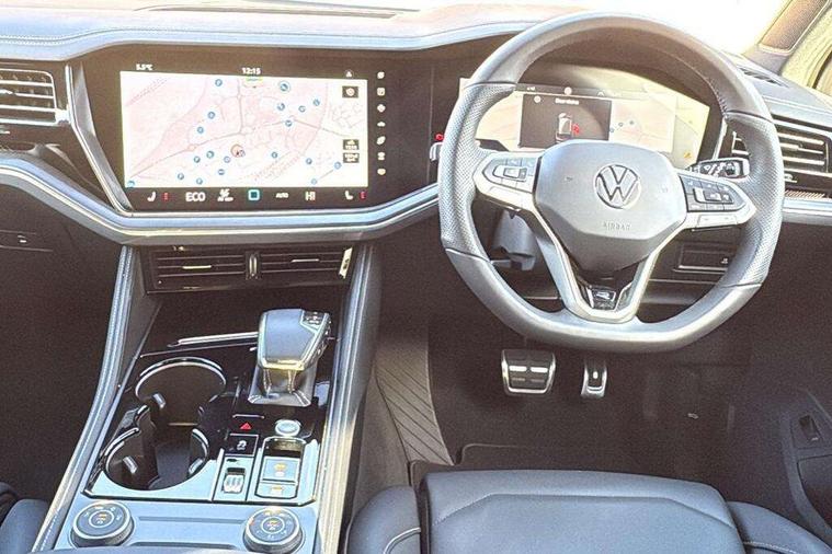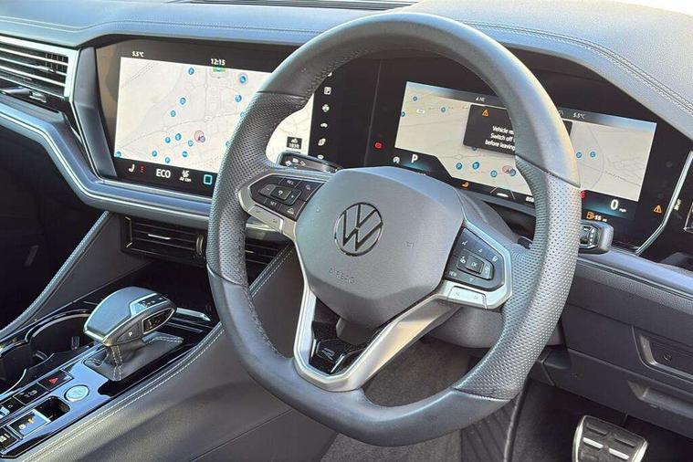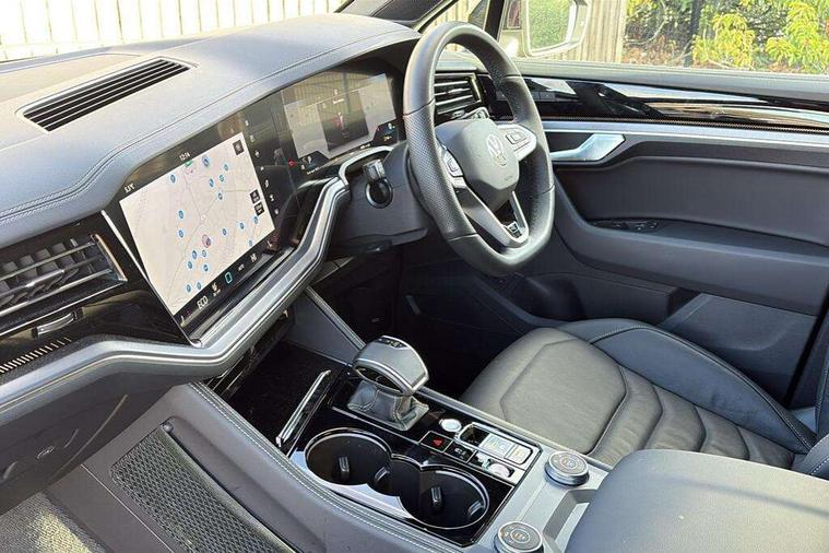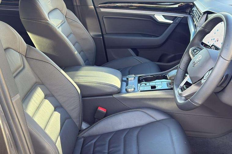 15" Screen Top infotainment system Premium (MIB3), Adaptive cruise control, Advanced driver attention and drowsiness monitor, Driver profile selection, Dynamic road sign display, E-Sim card for online connectivity, eCall emergency system, Innovision cockpit, Intelligent park assist, Mobile phone interface with inductive charging, Multi-colour Active Info display, Park Assist - Sensor controlled steering aid to assist parallel or bay parking, PAS, Warning signal and warning light for front and rear seatbelts not fastened, Wireless app connect, Adaptive chassis control, DAB Digital radio, Diversity antenna for AM/ FM reception, We Connect and We Connect Plus functionality, Automatic coming/leaving home lighting function, Automatic headlights, Black door mirrors, Black style comfort bumpers, Dynamic headlight range control with dynamic cornering light, Electric front tilt/slide panoramic sunroof and fixed rear sunroof, Electrically power adjustable, heated, folding, auto dimming, front passenger exterior door mirror lowering function, External USB type C socket and charging sockets, Gloss black roof rails, HD LED Matrix beam plus digital headlight projection with variable light distribution, Headlight washers, Highway light, LED 3rd brake light, LED daytime running lights, LED rear combination lamp with variable lighting functions and special styling, Poor weather light, Rain sensor, Rear exhaust tailpipe, Rear fog light with back up light on both sides, Rear light bar and illuminated logo, Rear side wing doors, Rear wiper, Stainless steel door sill protection, 12V socket in centre console, 3 rear headrests, 3 seat bench in 2nd row, 4 zone climate control, Airbag label on sun visor and B-pillar, Brushed stainless steel pedals, Double sun visors with illuminated vanity mirrors, Front + rear carpet mats, Front centre armrest, Leather wrapped multifunction sports steering wheel, heated, with touch control and shift paddles, Mechanical rear seat release, Power adjustable lumbar support in front, Power seats in front, right side with memory features and seat cushion depth adjustment, Rear seat backrest and split folding with center armrest, Single front passenger seat, Memory pack plus - Touareg, 3 point seatbelts, outer rear with ECE lable, ABS, Child locks on rear doors, Curtain airbags, Driver and front passenger safety-optimised head restraints, Driver/Front Passenger airbags, Extended pedestrian protection measures, Front assist, Front seat side impact airbags, Generative braking with start and stop system, Height adjustable 3 point front seatbelts with pre tensioners, Passenger airbag deactivate switch, Three 3 point rear seatbelts, Two tone horn, Tyre pressure loss indicator, Warning triangle and first aid kit, Alarm system with interior protection, Easy open and close sensor controlled luggage compartment opening and closing with remote unlocking, Keyless Access Keyless locking and starting system with SAFELOCK, Aluminium decorative inserts, Black decorative trims, Gloss black decorative inserts in centre console, Tool kit,
