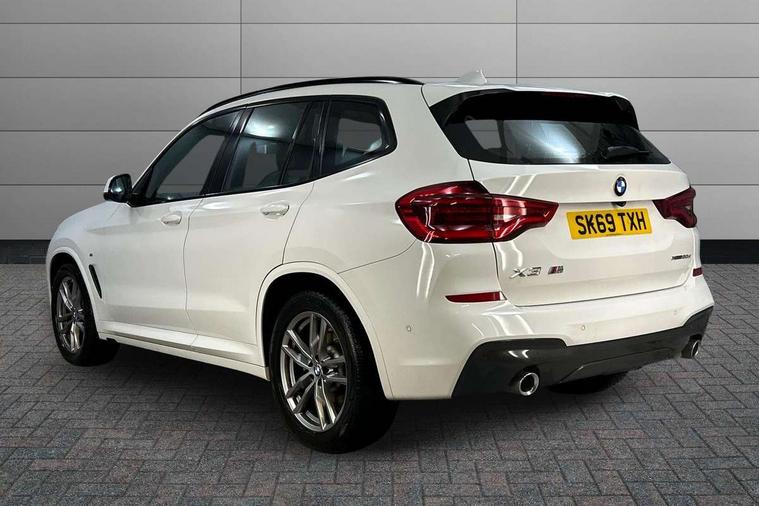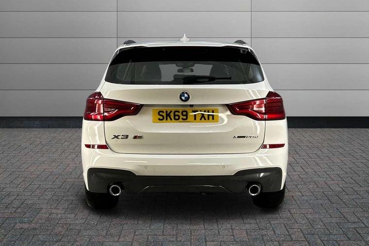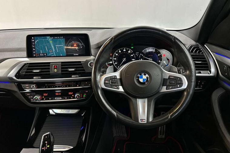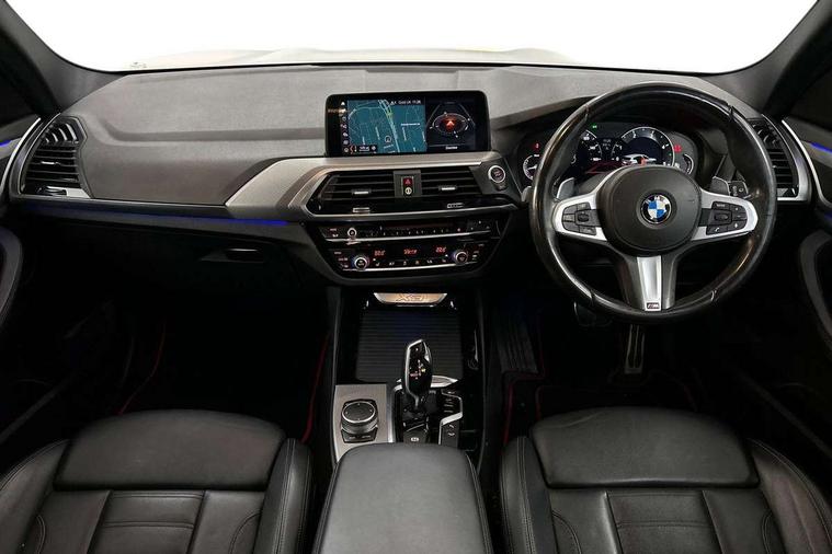 Active Guard incl speed limiting and lane departure functions with auto steering, and front collision warning with brake intervention, Attentiveness assist, Automatic tailgate operation, BMW Live Cockpit Professional sat nav system including 10.25" high resolution display and Intelligent Voice Assistant, BMW Online services, BMW Teleservices, Brake pad wear indicator in front and rear, Check Control warning system for monitoring of lights and door/luggage compartment open warning, Control display - 6.5" colour display screen, Electric Power Steering (EPS) with Servotronic, Front/rear Parking distance control, iDrive Controller with 8 favourite buttons, Lights on warning by audio warning signal when ignition is switched off, Navigation system - BMW Professional multimedia with Hard disc drive (HDD) and 10.25" touch display, Oil sensor for level and grade, warning by check control system, On board computer - average speed+fuel consumption, service interval, clock/date, odometer/trip meter, outside temperature display and ice warning, Optimum shift indicator, Personal Profile - automatic lock when driving away selectable, Real time traffic information, Semi digital instrument cluster, Stop/start system, Automatic transmission with gearshift paddles, Diesel particulate filter, Incorrect fuelling protection, Larger capacity fuel tank, Multi-link rear suspension, Performance Control, Auxiliary socket for external MP3 player, BMW professional radio/CD/MP3, DAB Digital radio, Acoustic glazing, Black finish on B pillars, Body colour door handles, Body colour electric adjust heated aspherical door mirrors, Body colour roof mouldings, Body coloured bumpers, Chrome kidney grille with high gloss black vertical slats, Direction indicator, side repeaters, integrated in exterior mirrors, Dual chrome exhaust, Dynamic brake lights, Exterior mirrors - electrically folding with anti-dazzle, Fingertip control / anti-trap function on electric window, Follow me home headlights, Front and rear bumper system with replaceable deformation elements, Front and rear electric windows, Green tinted heat insulating glass, Heated windscreen washer jets, Height adjustable headlamps, High gloss black door sill finishers, High gloss black shadow line roof rails, High gloss shadowline exterior trim in decorative moulding side frame/recess cover/guide rail/B, C pillars/mirror frame and triangle with mirror base, High level 3rd brake light incorporating LED Technology, Interior rear view electrochromatic mirror with automatic anti dazzle function, LED front fog lights, LED tail lights, Lightweight engineering, M aerodynamic bodystyling, Model designation, Rain sensor including auto headlights activation, Rear wiper, Shark fin antenna, Visible VIN plate, Welcome lighting, Windscreen wipers with adjustable interval, 12V socket in centre console and luggage area, 3 rear headrests, 3 zone automatic air conditioning, 4 lashing points to secure luggage, Ambient lighting, Anthracite headlining, Anthracite Velour floor mats, Driver/passenger sunvisors with ticket holders + illuminated vanity mirrors, Foldable boot floor with storage compartment, Four grab handles integrated in roof lining, Front and rear bottle holders integrated into door trim storage compartments, Front and rear side armrests integrated into door trim, Front centre armrest with storage compartment, Front footwell lights, Front sports seats, Front/rear courtesy lights with soft on/off dimming, Front/rear reading lights, Height adjustable front/rear head restraints, Isofix rear child seat preparation, Leather gear knob, Luggage area underfloor compartment, Luggage compartment lighting, M Sport multifunction leather steering wheel, Parcel shelf removeable and storable under boot floor, Reach and rake adjustable steering column, Rear centre armrest with 2 cupholders, Rear seat centre armrest with two cupholders, Removable / retractable luggage cover, Slope adjustable rear seats, Storage compartment in rear centre console and front/rear door trims, Through loading system with 40/20/40 split folding rear seat, Toolkit located in luggage compartment, Two front cupholders with removable oddments tray/lid, Vernasca leather upholstery, Connected pack professional - X3, ABS/EBD, ADB - Automatic Differential Brake, Automatic Stability Control (ASC), Battery safety cut-off, BMW emergency call, Brake assist, Brake assist function, Brake drying, Brake energy regeneration, Braking pre-tensioning, Child locks on rear doors, Cornering brake control (CBC), Crash Sensor - activation of central locking release, hazard warning light and interior lighting, Deactivation of fuel pump in the event of a crash, Driver and front passenger front and side airbags with passenger deactivation and ITS front and rear head airbags, DSC+, Dynamic brake control, Dynamic Traction Control - DTC, Electromechanical parking brake, Front seat belts warning, Hill descent control, Hill start assist, Seatbelt security check for front seats, Side impact protection, Three point seatbelts to all seats with front and outer rear pyrotechnic belt tensioners and seat belt force limiters, Two tone horn, Tyre pressure monitoring system, Ventilated front and rear disc brakes, Warning triangle and first aid kit, Central locking switch for all doors, fuel filler cap and luggage compartment, Electronic engine immobiliser, Locking wheel nuts, Remote control including two integrated key - one button for open/close all lockable content, windows and separate button for open luggage compartment, Remote control Thatcham category 1 alarm, Start/stop button with Comfort Go keyless engine start and auto Start/stop deactivation button, Low rolling resistance tyres,