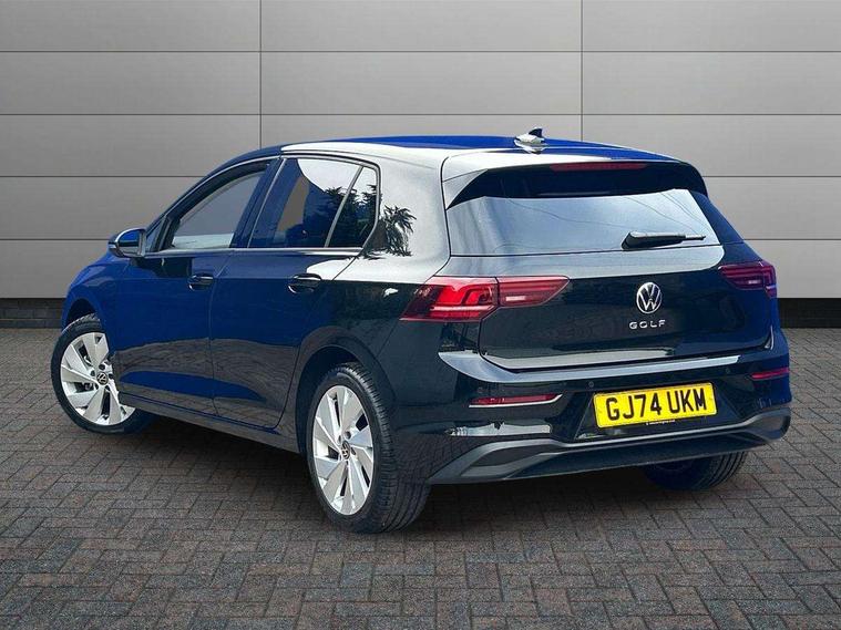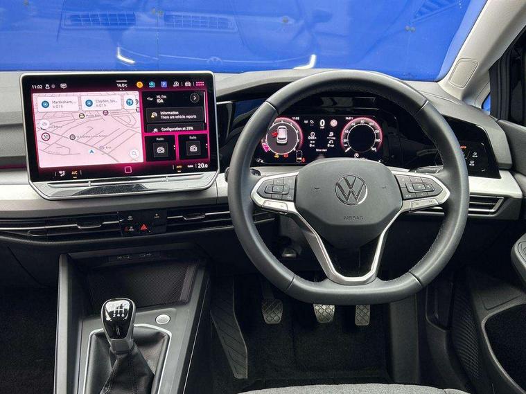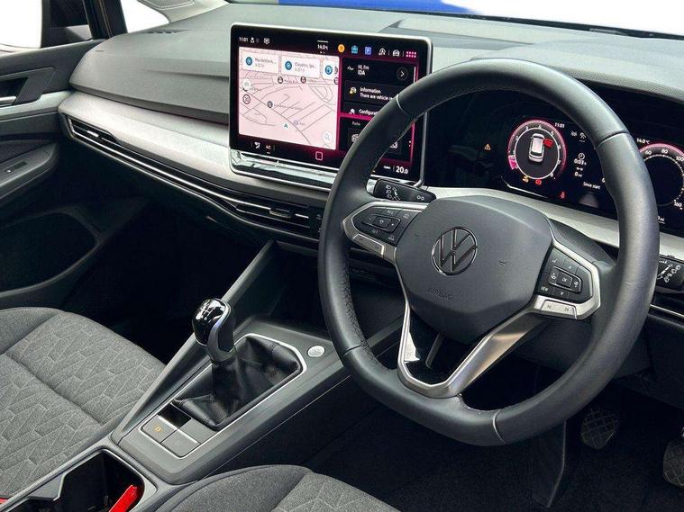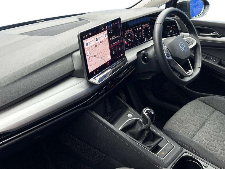Activated carbon canister, Adaptive cruise control (ACC), Advanced driver attention and drowsiness monitor, Dynamic road sign display, E-Sim card for online connectivity, eCall emergency call system, Multi-color Digital cockpit pro, selection of different info profile possible, Multifunction front facing camera for distance control, Navigation system, Oncoming vehicle braking when turning including swerve support, Preparation for light assist system, Speed limiter, Speedo, rev counter, electronic odometer, trip, service interval display, exterior temperature and fuel gauge, Voice enhancer and voice control, Warning signal and warning light for front and rear seatbelts not fastened, We connect plus preparation, We connect preparation, Wireless app connect, Petrol Particulate Filter, Start-stop system with battery regeneration (recuperation - energy recovery during braking), XDS electronic differential lock for improved traction and handling, 2 USB C ports in front, 2 USB charging sockets on the centre console in the rear charging capacity upto 45W, Comfort telephony + wireless charging, without wireless aerial connection, Digital radio reception (DAB), Diversity antenna for FM reception, Gaming platform via car app, Infotainment system with 12.9" display, Mobile phone interface with inductive charging feature, 3rd brake light, Auto dimming rear view mirror, Auto headlights, Automatic headlamp activation with Coming home and Leaving home feature, Body colour door handles, Body colour door mirrors, Exterior ambient lighting with illuminated door handles, Exterior mirrors convex on the left and aspherical on the right, Front and rear electric windows, Heat insulating windshield made of laminated glass, LED daytime running lights, Rain sensor, Rear exhaust tailpipe, Rear fog light on one side and reversing lights on both sides, Rear side wing doors, Rear tinted glass 65% light absorbing from B pillar backwards, Rear windscreen washer and wiper with interval delay, Remote electrically foldable door mirrors, puddle lights and reverse activated passenger's door mirror, Standard bumpers, Welcome light with surround lighting, 12V socket in front centre console, 12V socket in luggage compartment, 3 rear head restraints, 3 seat bench in 2nd row, Chrome plated radiator grille inserts, air vent surrounds and light switch surrounds, Front centre armrest, Front head restraints, ISOFIX anchors for child seats on outer rear bench seats and on front passanger seat compatible for i-Size, Leather gearshift handle, Luggage compartment lighting, Rear cupholder and loadthough, Single front passenger seat, Soul black instrument panel, Split folding backrest with centre armrest and unsplit rear seat bench, Standard pedal cluster, Storm grey roof lining, Sun visors with illuminated vanity mirrors, Parking and comfort pack - Golf Estate/Hatchback, 3 point height adj front seatbelts + pretensioners, 3 rear three point seatbelts, ABS, Autonomous emergency braking front assist with pedestrian and cyclist monitoring, Child locks on rear doors, Driver and front passenger airbag with front passenger airbag deactivation, Electronic parking brake with auto hold, ESC (Electronic Stability Control), Extended pedestrian protection measures, Rear disc brakes, Two tone horn, Tyre pressure loss indicator, Volkswagen roadside assistance, Alarm with interior protection, Anti theft wheel bolts, Keyless start with SAFE lock, Preparation for alcohol interlock, Nature cross brushed decorative inserts for dashboard and front door panels,