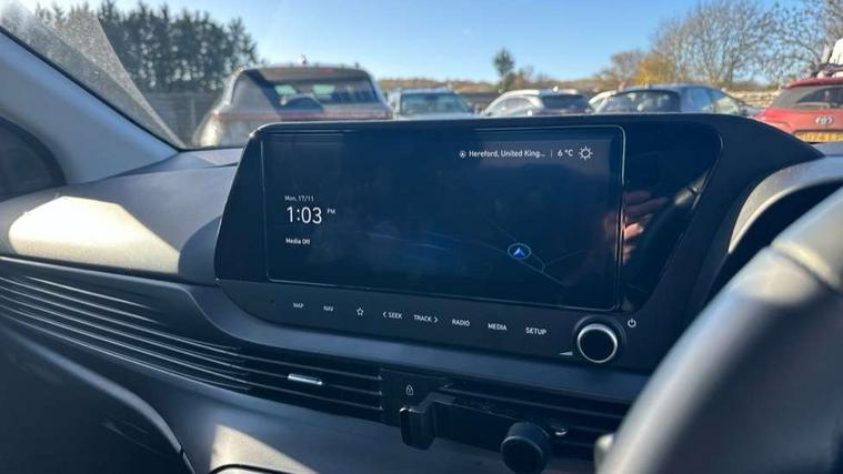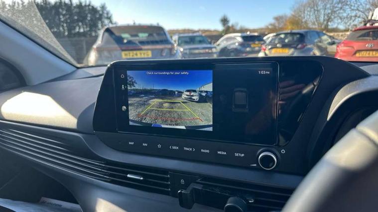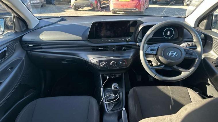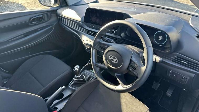 10.25" touchscreen + navigation, 2nd Gen eCall, 8" Touchscreen DAB Radio with android auto and apple carplay, Cruise control + speed limiter, Forward collision assist with car, pedestrian and cycle detection, Intelligent speed assist, Intelligent speed limit warning, Lane follow assist, Lane keep assist, PAS, Rear parking sensor, Rear view camera with dynamic guidelines, USB C port front, Automatic headlights with dusk sensor, Electric adjustable heated door mirrors, Front grille mesh pattern design, High beam assist, LED 3rd brake light, LED daytime running lights, LED Headlights, LED taillights, Rain sensor, Rear side wing doors, Rear wiper, Repositioned flat metal hyundai emblem, Trailer wiring, 3 seat bench in 2nd row, Adjustable head restraints, Air conditioning, Cloth upholstery, Floor mats, Leather steering wheel, Single front passenger seat, 3x3 point rear seatbelts, ABS with front and rear diagonally split, Autonomous emergency braking, Child locks on rear doors, Front ventilated disc brakes, Rear solid disc brakes, Tyre pressure monitoring system, 16" alloy wheels, Tyre repair kit,