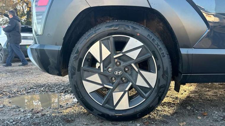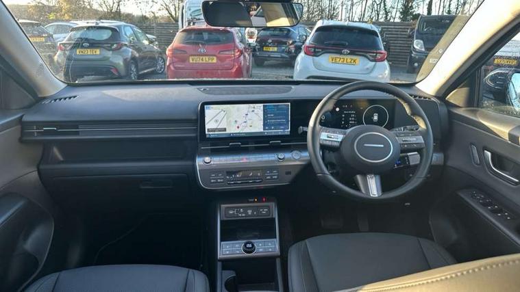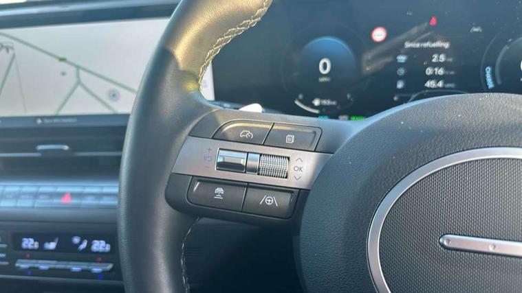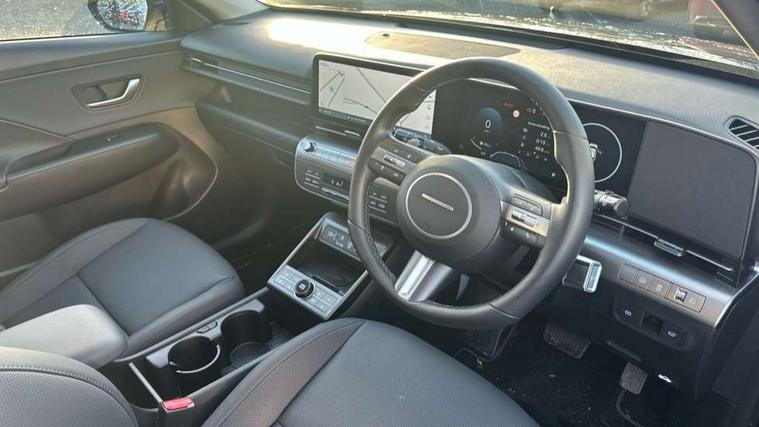12.25" digital instrument cluster, 12.3" touchscreen centre console display satellite navigation with bluelink, live services and mapcare, Blind spot collision avoidance assist, Blind spot view monitor, Bluetooth connectivity with voice recognition, Driver status monitor (DSM), Driver supervision instrument cluster with 12.3" LCD display, eCall emergency call system, Feature on demand - Enabled, Forward collision avoidance assist (FCA 1.5) - Car, pededstrian, cycle and junction turning, Front parking sensor, HDA - Highway Drive Assist Level 1.5, Height adjustable power tailgate, Intelligent speed limit assist, Lane follow assist, Lane keep assist, Leading vehicle departure alert (LVDA), Parking Collision Avoidance Assist-Reverse (PCA-R), Parking distance warning - side, Parking system with rear camera and guidance system, PAS, Rear cross traffic collision avoidance (RCCA), Rear parking sensor, Rear view camera with dynamic guidelines, Roadside assistance, Safe exit warning (SEW), Smart cruise control with stop and go functionality, Surround view monitor, Wireless phone charging pad, Wireless Smartphone Integration includes Apple CarPlay and Android auto, 2 front USB C and 2 rear USB C charging points, Bose Premium Audio system with 7 premium speakers + subwoofer, DAB Digital radio, Steering wheel audio, phone and cruise controls, Auto dimming rear view mirror, Automatic headlights with dusk sensor, Automatic windscreen wipers with rain sensor, Black painted wheel arch inserts, Body colour exterior door handles, Body coloured door mirrors, Door mirror LED indicator lights, Electric front windows with anti-trap mechanism and one touch control, Electric rear windows, Electric sunroof, Electrically adjustable and heated door mirrors, Horizon centre LED DRL, LED projector headlights, LED taillights, LED upper and lower rear lights, Power folding door mirrors, Privacy glass - Rear windows and tailgate, Rain sensor, Rear roof spoiler with integrated LED brake light, Rear side wing doors, Rear skid plate - silver, Rear wiper, Roof rails, Solar glass with front door glass and windscreen, Tinted glass in front and rear doors, Windscreen auto defog function, 12V power outlet in front console, 2 zone climate control, 3 seat bench in 2nd row, 40/20/40 split folding rear seat, Adjustable head restraints, Ambient lighting, Driver and passenger front seat pockets, Driver's seat electric adjustments, Driver's seat lumbar support, Driver/passenger sunvisors and illuminated vanity mirrors, Floor mats, Front passenger's seat electric adjustments, Heated front seats, Heated rear seats, Heated steering wheel, Height/reach adjustable steering column, Leather steering wheel, Leather upholstery, LED centre interior light, LED front interior light, Luggage compartment LED lighting, Luggage net, Luggage shelf, Metal paint effect interior door handles, Rear centre armrest with cupholders, Shift by wire SBW, Single front passenger seat, Ventilated front seats, Vertical adjustment rear head restraints, Trailer wiring package - Kona, Airbag - front, front side, curtain and centre front airbag, Anti-lock brake system (ABS), Childproof rear door locks, Downhill brake control, Electric parking brake, Electronic stability control, Fixed 3 point for second row centre passenger seatbelt, Hill start assist control (HAC), Rear seat alert, Tyre pressure monitoring system, Alarm/immobiliser, Rear occupant alert, Remote central locking, Smart key with keyless entry and start/stop button, Five year annual vehicle health checks, 18" Alloy wheels, Temporary mobility kit (TMK),