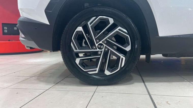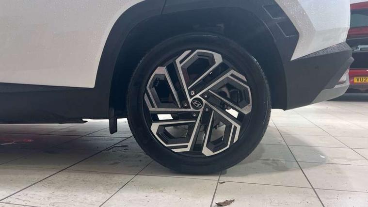12.3" LCD display with driver's supervision instrument cluster, 12.3" widescreen navigation with bluelink and mapcare, Blind spot view monitor, Bluetooth system, Cruise control - smart adaptive speed control with stop and go function, Digital clock, Drive mode selector, Driver attention warning, E-call, Emergency stop signalling system, Forward Collision Avoidance Assist (FCA) - Car, Pedestrian and Cycle, Forward Collision Avoidance Assist Junction Turning (FCAJX), Front and rear parking sensors, Front, rear and side parking distance warning, Highway Driving Assist (HDA), Hyundai road side assistance, Intelligent speed limit assist, Lane follow assist, Lane keep assist, Over the air updates(OTA), Parking collision avoidance assist (PCA), PAS, Rear camera and guidance parking system, Rev counter, Smart power tailgate, Surround view monitor, Tailgate open warning light, Trip computer, Trip odometer, Voice recognition, Water temperature gauge, Windscreen washer fluid sensor and warning indicator, Wireless Apple CarPlay/Android Auto, Wireless phone charging pad, 2 front and 2 rear USB-C ports, DAB Digital radio, Krell premium audio system with 8 speakers and subwoofer, Steering wheel mounted audio/phone controls, Adjustable intermittent front windscreen wipers with aero wiper blade, Auto dimming rear view mirror, Automatic defog system, Automatic headlights with dusk sensor, Automatic windscreen wipers with rain sensor, Black wheel arches, Body colour bumpers, Body colour door mirrors with integrated indicators, Body colour exterior door handles, Electric tilt/slide panoramic sunroof, Electrically adjustable, heated and power folding door mirrors, Follow me home headlights, Front and rear electric windows with anti-trap mechanism and one touch control, Front fog lights, LED 3rd brake light, LED daytime running lights, LED rear lights, Matrix LED headlights, Positioning Lights - LED, Privacy glass - Rear windows and tailgate, Rear side wing doors, Rear wash/wipe with intermittent wipe setting, Roof rails, Tinted glass with windscreen shade band, Trailer stability assist, 12V power outlets in front console and luggage compartment, 3 seat bench in 2nd row, 40/20/40 split folding rear seat, 64 colours interior ambient lighting, Adjustable head restraints (Up and down), Cupholders in rear armrest, Door courtesy lights, Driver and passenger sunvisors with illuminated LED vanity mirrors, Driver's seat electric adjustments, Driver's seat memory, Front and rear door pockets, Front armrest with storage box, Front centre console and door bottle holders, Front passenger's seat electric adjustments, Heated front seats, Heated rear seats, Heated steering wheel, Height/reach adjustable steering column, Illuminated/air conditioned glove compartment, ISOFIX child seat anchorage points attached on outer rear seats, Leather upholstery, Leather wrapped steering wheel and gear knob, Luggage compartment lighting, Luggage cover, Luggage hooks, Luggage net, Map and reading lights, Rear seat remote folding function, Rear side window sunblind, Reclining rear seats, Retractable load cover, Single front passenger seat, Sunglasses holder, Three zone climate control, Touch sensitive climate controls with temperature dials, TUCSON branded metal door scuff plate, Underfloor boot compartment, Ventilated front seats, Trailer wiring package - Tucson, 3x3 point rear seatbelts, Active bonnet, Airbag - Front, front side, curtain and centre front airbags, Anti-lock brake system (ABS), Brake assist function, Childproof rear door locks, Curtain airbag roll over sensor, Downhill brake control, Electric parking brake, Electronic stability control, Front and rear seatbelt reminder, Front passenger airbag deactivation switch, Front seatbelt pretensioners, Hill start assist control (HAC), Multi-Collision braking, Outer rear seatbelt height adjustment, Seatbelt height adjustment for front seats, Traction control, Tyre pressure monitoring system with individual tyre pressure display - TPMS, Vehicle stability management, Deadlocks, Immobiliser, Locking wheel nuts, Remote control central locking, Smart key with keyless entry and engine start/stop button, Speed sensitive auto door locking, Thatcham category 1 alarm, 19" Alloy wheels, Tyre repair kit,