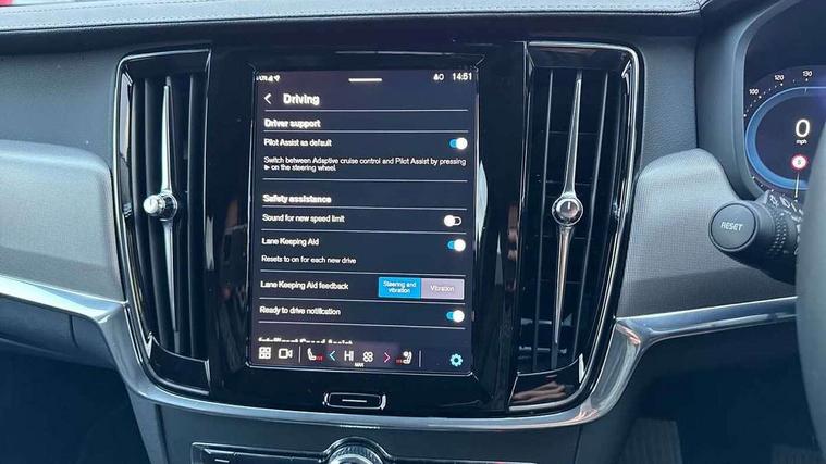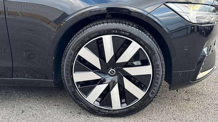 12.3" Progressive Driver Display, 9" centre console touch screen, Adjustable steering wheel force, Bluetooth Handsfree Phone Connection, Drive mode settings, E-call, Google automotive services - Enabled entertainment apps, navigation with google maps, voice recognition with google assistant, Handsfree bootlid opening/closing, Lane keep assist with driver alert control, Oncoming Lane Mitigation, Power operated tailgate, Speed limiter, Speed sensitive steering, Volvo on call, 7m 10amp charge cable with 3 pin plug and 7m 1 phase 16amp type 2/mode 3 charge cable, 8 speed automatic transmission with start/stop + manual change functions, Electric rear axle drive, Lithium-ion battery, Recharging port located in nearside front wing, DAB Radio (Digital Audio Broadcasting), Steering wheel remote infotainment controls, Adaptive brake lights with high level LED brake lights, Auto dimming interior + exterior mirrors, Automatic headlamp levelling, Automatic LED Headlights + Active high beam incorporating daytime running lights, Colour coordinated auto folding and heated power door mirrors, Dark tinted windows for rear side windows and cargo area, Front and rear power windows, High gloss black door mirrors and window surround, High gloss black lower front bumper, High gloss black mesh front grille with silk metal surround, High gloss black rear bumper deco, Home safe and approach lighting, Integrated roof rails in high gloss black, Laminated rear and side windows, Puddle lights in exterior door handles, Rain sensor with automatic windscreen wiper activation, Rear LED lights with sequential indicators, Rear side wing doors, Rear wiper, Roof antenna, Roof spoiler, Visible VIN plate, 2 zone electronic climate control with Clean zone air quality system + pollen filter, 3 seat bench in 2nd row, 3 spoke leather steering wheel with chrome trim, A-pillar parking ticket holder, Ambient door and instrument panel lighting, B Pillar ventilation, Bright metal luggage threshold, Cargo divider with grocery bag holder, Center Console Cupholders and Storage, Charcoal headlining, Driver's side lower dashboard storage compartment, Extended front seat cushions, Front 12V socket tunnel console and cargo area, Front centre armrest storage illumination, Front footwell and side step illumination, Front head restraints, Front/rear door pockets and front cupholder illumination, Front/rear reading lights, Heated front seats, Height/reach adjustable steering column, Illuminated glovebox, Illuminated luggage compartment, Illuminated tailgate, Illuminated vanity mirrors + ticket holder, Integrated sun curtains in rear doors, Isofix system on outer rear seats, Load cover, Load protection net, Off-black finish in steering wheel, Power driver seat with memory for seat and exterior mirrors, Power Folding Rear Seat Backrests and Headrests, Rear armrest with storage + cupholders, Rear footwell and side step illumination, Recharge aluminium tread plates, Single passenger seat, Ski hatch, Sport pedals, Sports floor mats, Sports leather gear knob, Sports tailored steering wheel, Underfloor cargo storage, Versatile split folding rear seat - 60/40, Driver assist pack - V90, 3x3 point rear seatbelts, Active bonnet, City safety with steering support with Pedestrian + cyclist + front collision warning with full auto brake and rear auto brake, Drivers knee airbag, Dual stage driver/passenger airbags, Front seats SIPS airbags, Hill start assist, IC (Inflatable Curtains) - Full Length, Passenger airbag cut-off device, Power parking brake with auto hold function, Road sign information display, Run off Road Mitigation, Run off Road Protection, Seatbelt reminder and pretensioners for all seats, SIPS (Side Impact Protection System), Slippery road and hazard light alert, Stability and Traction Control with Spin control, Engine Drag Control and Corner Traction Control, Tyre pressure monitoring system, Vehicle deceleration control with Anti-lock Brake System, Electronic Brake Distribution and Emergency Brake Assist, Warning triangle and first aid kit, WHIPS whiplash protection system - front, Anti-theft alarm including immobiliser/volume sensor + level sensor, Care key with user defined top speed, Key integrated remote control central locking + fuel flap with deadlocking system and auto open/close power windows, Keyless drive with Keyless entry and start, Locking wheel nuts, Private locking for tailgate, Metal mesh inlays, Tailored Instrument Panel and Door Tops with Contrast Stitching, Tyre sealant kit and compressor,