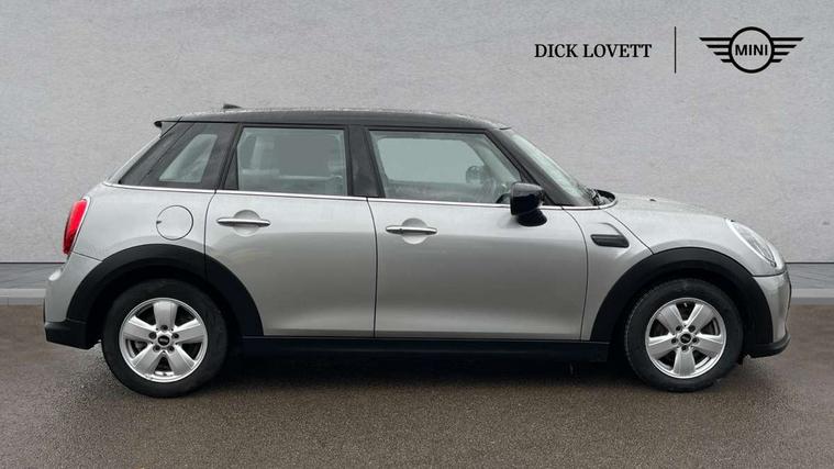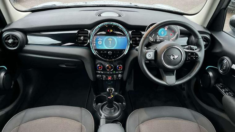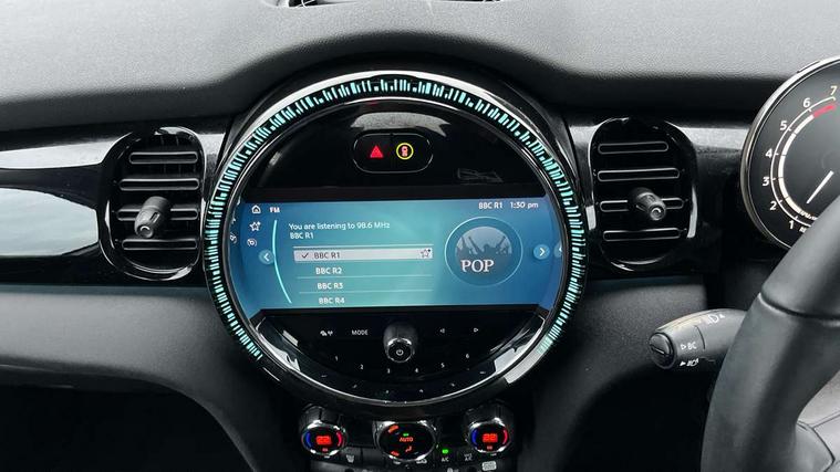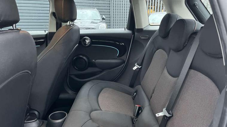 Apple CarPlay, Automatic start/stop function with brake energy recuperation, Compatible mobile phone bluetooth with audio streaming, Electro-mechanical speed dependant steering assistance, Flexible car sharing preparation, Mini E-call, MINI TeleServices, On board computer, Service interval indicator, Double Vanos system, Fully variable valve control, Gear change indicator display, High precision injection, Performance Control, Steptronic transmission with double clutch, 8.8" touchscreen with LED ring, FM tuner and DAB digital radio, 3rd brake light, Automatic headlight activation switch, Body colour fuel filler cap, Chrome border high gloss black slats radiator grille, Dynamic brake lights, Electric front+rear windows, Exhaust tailpipe on left with chrome finisher, Heated rear window, Heated windscreen washer jets, Metal door sill strips with MINI imprint, Model logo Cooper on right of tailgate, Rain sensor window wipers, Rear fog lights, Rear LED lights with union jack design, Rear side wing doors, Rear window wiper, Side scuttle panel with integrated indicator, Sun/heat protection glass, White indicator lenses, 12V Accessory socket in centre console, 3 seat bench in 2nd row, 4 lashing eyes in luggage compartment, 60/40 split folding rear seat, Ambient lighting, Carbon black colour line - Knee roll and door armrest, Chrome interior highlights, Cupholders, Front and rear head restraints, Front and rear isofix with front passenger airbag deactivation, Front and rear velour floor mats, Glove compartment, Height and length steering column adjustment, Interior lighting with 12 different colours across the dashboard, underneath door bezel with illuminated laser-engraved design on central display, Leatherette gearshift lever and handbrake gaiters, LED reading lights, vanity mirror lights, front foot well light and spotlight on front seats, Mechanical seat adjustment - forward/back & backrest for front seats and driver seat height adjust, Multifunction steering wheel, Satellite grey headlining including grab handles and clothes hooks, Single front passenger seat, Sport leather steering wheel with speed limiter and audio/communication controls, Storage compartments in doors, Sunvisors with vanity mirrors, 3 point seatbelts on all five seats, 6 Airbags - front, side, head and seat belt tensioners, Anti-lock braking system (ABS), Child locks on rear doors, DSC - Dynamic Stability Control, Front and rear disc brakes, Hill start assist, Single tone fanfare horn, Tyre pressure monitoring system, Alarm system with tilt sensor, monitoring doors, bonnet interior and tailgate, Electronic vehicle immobiliser, Start/stop toggle with keyless go, Piano black interior trim, Tool kit, Tyre repair kit,