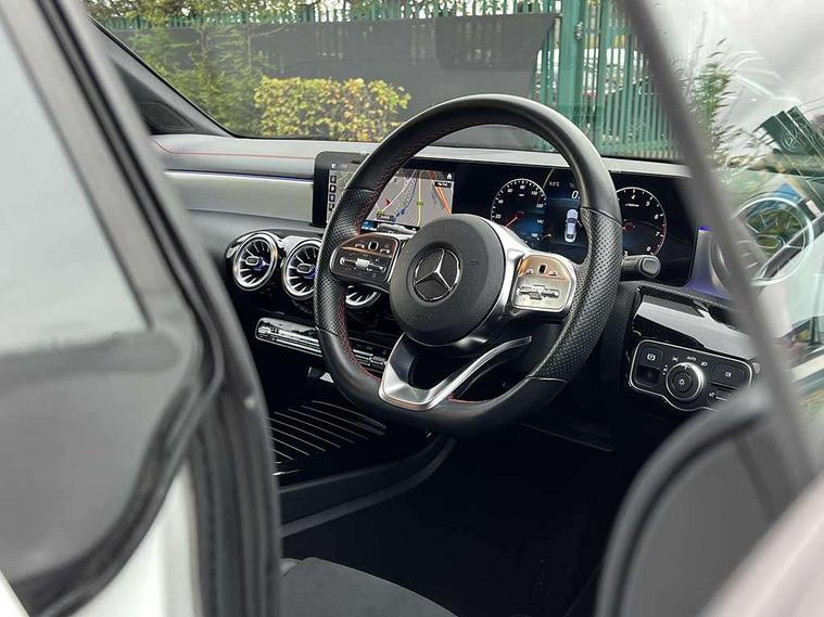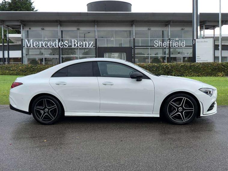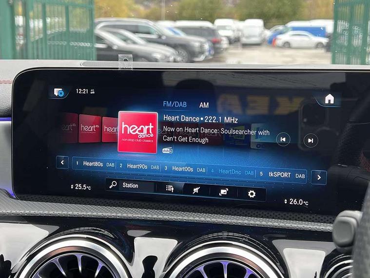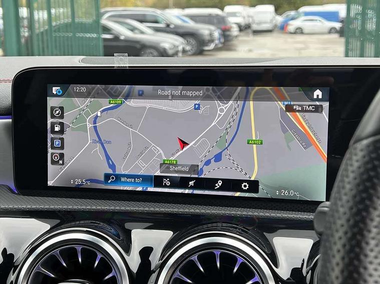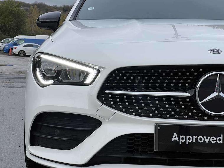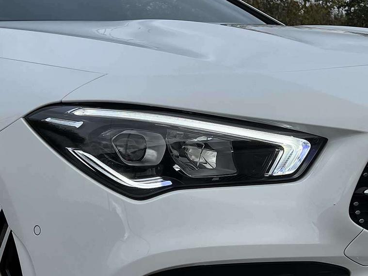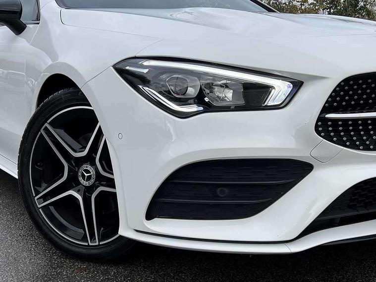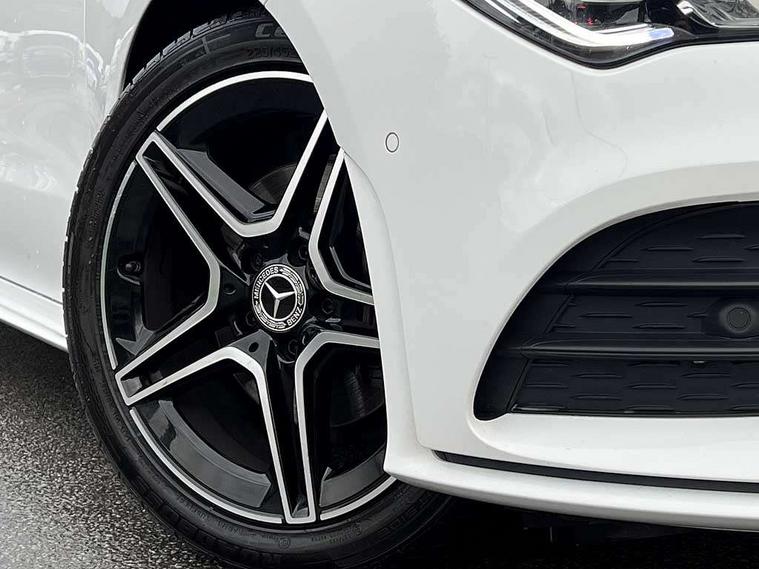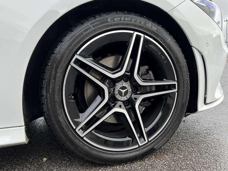 10.25 inch Instrument display with digital cockpit, 10.25 inch touchscreen central media display, Active lane keeping assist, Attention assist - Monitors steering behaviour and long journey fatigue, Bluetooth connection, Car wash mode, Cruise control with limiter, Direct steer system with speed sensitive power steering, DYNAMIC SELECT with a choice of driving modes (ECO, Comfort, Sport and Individual), ECO start/stop function, Fluid level warning indicator for fuel, oil, coolant and washer fluid, Hard-disk navigation, Hey Mercedes Voice activation, Lamp failure indicator, Mercedes me connect including emergency call system, accident recovery, breakdown and maintenance management, Mercedes me remote services, Outside temperature gauge, Owners manual and service booklet in English, Pre-installation of private car share, Preinstallation for Mercedes Benz link, Radio aerial integrated into front and rear windshields, Service indicator (ASSYST), Smartphone integration with Apple CarPlay and Android auto, Speed limit assist, Trip computer in multifunction display with current consumption indicator, Lowered comfort suspension, Rear axle multi-link, DAB digital radio tuner, MBUX multimedia system, Mid-range sound system, USB (type C) ports (2) in stowage compartment and 1 in front of centre console, Adaptive brake lights, AMG body styling with AMG front apron and rear apron and visible exhaust tailpipe in chrome trim elements, AMG bodystyling side skirts, Body colour bumpers, Body colour door handles, Chrome beltline strips, Diamond radiator grille pins in chrome, Electric windows, Electrically adjustable and heated door mirrors with integrated LED indicators, Exhaust system with 2 Visible tailpipe trim elements and rear apron with trim in chrome, Headlamp assist automatic headlamp activation, Heated glass rear windscreen + timer control, High level LED third brake light, Interior mirror with black reading lamps and frameless, LED high performance headlamps with integrated LED daytime running lights, LED tail lamp, Privacy glass with dark tinting on rear side windows and rear window, Rain sensing windscreen wipers with two sensitivity settings, Rear boot, Rear fog lamp, Rear side wing doors, Variable front intermittent wipers, Window line trim strip in chrome, 3 seat bench in 2nd row, 3 spoke flattened bottom nappa leather multifunction steering wheel with perforated leather in grip area, 40:20:40 split folding rear seat backrests, Air conditioning - Two zone thermotronic luxury automatic climate control with display, Air vents with surround in silver chrome, Artico man-made leather upholstery, Automatic child seat recognition sensor, Black roof lining, Brushed stainless steel sports pedals with rubber studs, Floor mats with stitched AMG lettering, Front centre armrest with stowage, Galvanished gear shift paddles on steering wheel, Heated front seats, Illuminated front door sills with changeable cover, Illuminated glove compartment stowage, Interior lighting - 64 colour Ambient lighting, Luggage net on driver/front passenger seat backrest, Manually adjustable front seats, Manually height and reach adjustable steering column, Rear armrest with two integral cup holders for drinks, Rear head restraints, Single front passenger seat, Sport seats with fixed head restraints, Stowage compartment in centre console with retractable cover, Sunvisors with illuminated vanity mirrors, Touchpad on center console, Twin front cupholders, Two outer rear seat isofix and top tether child seat fixing points, Keyless go comfort pack - CLA, Light and sight pack - CLA, Mirror pack - CLA, Night package - CLA, Parking package - CLA, Seat comfort pack - CLA, Active bonnet pedestrain safety measure which detects an impact and raises bonnet by 65mm, Active brake assist includes forward collision warning system with autonomous braking, Adaptive brake assist with hold function and hill start assist, Anti lock braking system (ABS) with brake assist, Black seat belts, Bonnet with power domes, Brake pad wear warning indicator, Childproof locks manually operated for rear doors and electrically operated for rear power windows, Crash responsive emergency lighting, Driver and front passenger head and sidebags, Driver and front passenger windowbags, Drivers knee airbag, Dual stage driver and front passenger airbags, Electric parking brake, Electronic stability programme with acceleration skid control, ESP curve dynamic assist, Front and rear seatbelt reminder, Front passenger seat occupancy sensor, Three point rear seat belts, Tyre pressure monitoring system, Warning triangle and first aid kit, Guard 360 degree guard vehicle protection system with immobiliser and interior protection, Remote central locking and crash sensor with emergency opening function, Light aluminium with longitudinal grain interior trim, 18" AMG 5 twin spoke light alloy wheels painted in black with high sheen finish, Summer tyres, Tirefit tyre sealant kit,