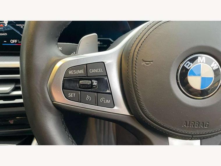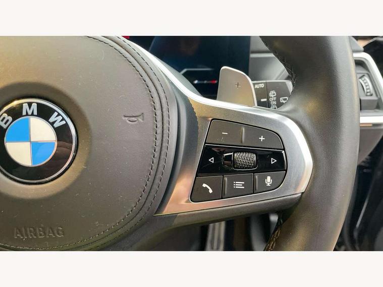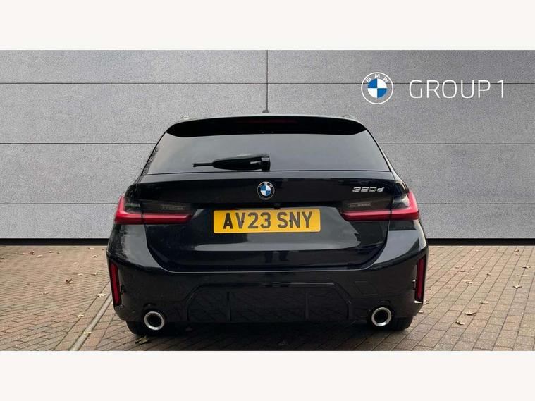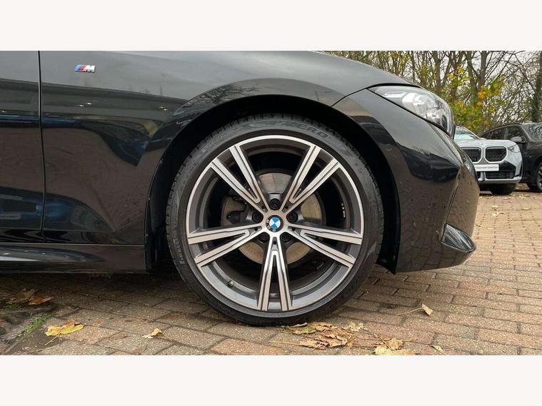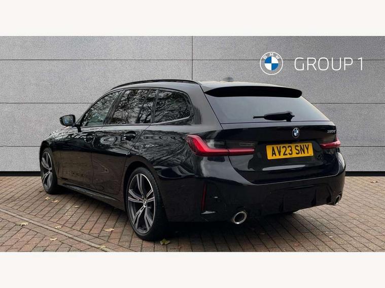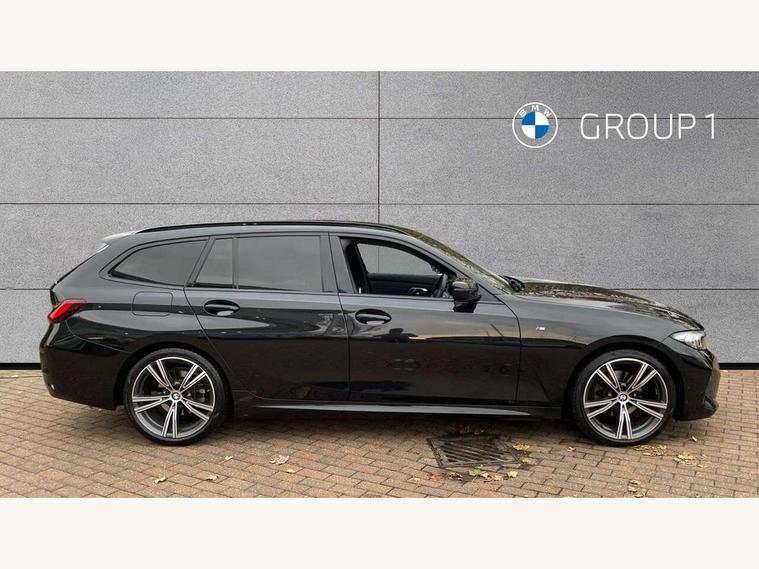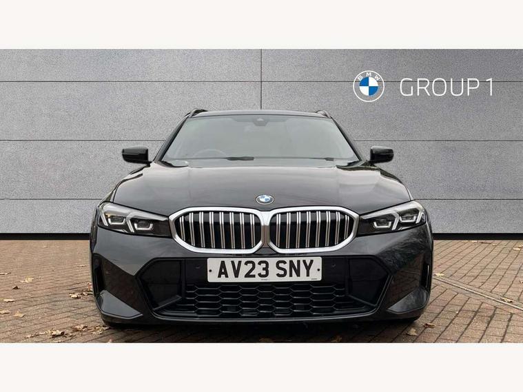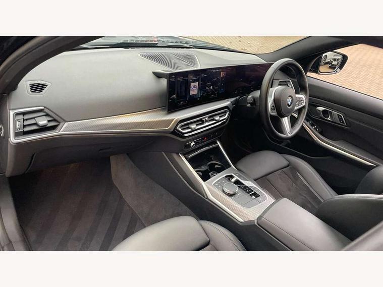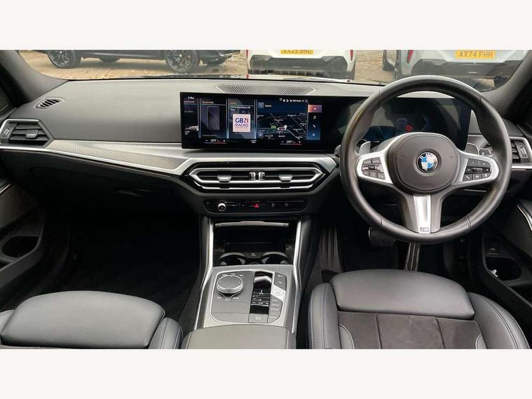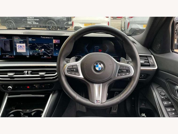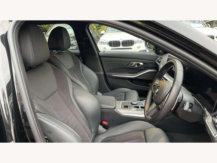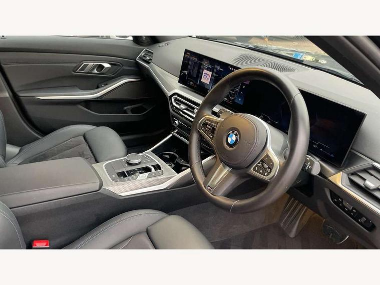 Active guard plus, Attentiveness assist, Automatic Start/stop button, BMW iDrive, BMW Teleservices, Condition based service, ConnectedDrive Services, Driving experience switch, Live cockpit plus with Navigation + 12.3" instrument display + 14.9" display, Intelligent voice assist, 2 USB, 4G LTE connect, Oil sensor for level and grade, Preparation for driver assistance, Shifting point display, Variable sport steering, 48V Mild hybrid technology, Double joint spring strut front axle, Fuel tank breather system, Larger capacity fuel tank, M sport suspension, Sport automatic transmission with steering-wheel mounted gearshift paddles and launch control, DAB tuner, 3rd brake light, Acoustic glazing, Automatic headlight beam throw control with load dependent regulating reaction, dynamic compensation of braking dive and acceleration squat, BMW emblem, engine compartment lid and tailgate, Body colour roof fin, Door sill strips, Electric windows - front and rear, with open/close fingertip control, anti-trap facility and comfort closing, Follow me home headlight function, Front and rear bumper system with replaceable deformation elements, Front apron plastic in body colour, Fuel filler flap - right rear in body colour, Heated washer jets, High gloss shadow line exterior trim, High gloss shadow line roof rails, Illuminated bow type door handles in body colour drivers side with door lock, Interior rear view electrochromatic mirror with automatic anti dazzle function, LED rear lights, Licence plate panel integrated into front bumper and tailgate, Matt black B-pillar finsher, Matt black window recess cover, Model designation on right side of tailgate, One piece front bumper cover including towing eye cover in body colour, Rain sensor with automatic headlight activation, Rear side wing doors, Rear wiper, Reversing lights, Side frame decorative moulding black matt, Visible exhaust tailpipe finisher, Welcome lights in interior and door handle area, 12V power socket in front storage compartment, 2 front cupholder in centre console with clamping elements and matt black inlay, 3 seat bench in 2nd row, 3 zone automatic air conditioning, 40:20:40 split folding rear seat with loading system, Ambient inside door handle light, Ambient light design projected onto the left and right entering and exiting area, Ambient lighting front and rear with 9 selectable colours, Ambient storage compartment lighting in the centre console, Anthracite headlining, Armrest integrated in front and rear door trim + front centre console armrest, BMW ID, Contour lighting in instrument panel and door trim panel, Cruise control operation in steering wheel, Driver backrest width adjustment, Folding rear centre armrest with 2 cupholders, Front and rear ambient footwell lighting, Front and rear door exit lighting (left / right), Front and rear headrests, Front and rear reading lights, Front and rear velour floor mats, Front sport seats, Heated front seats, Height adjustable mechanically and infinitely variable steering column, Illuminated armrest storage compartment, Illuminated glove compartment, Illuminated luggage compartment, Lashing eyelets in luggage compartment, M Sport multifunction leather steering wheel, Make-up mirror lights, Single front passenger seat, Standard seat for driver and passenger with manual adjustment, Sunvisors with vanity mirrors and ticket pocket, Toolkit located in luggage compartment, Connected pack professional - 3 Series Saloon/Touring, Interior and exterior mirror pack - 3 Series Touring/Saloon, M Aerodynamics package - 3 Series Saloon/Touring, M sport exterior styling pack - 3 Series Saloon/Touring, Storage compartment pack - 3 Series Saloon/Touring, 3x3 point rear seatbelts, BMW emergency call, Child locks on rear doors, Crash sensor activating of airbags, Unlocking doors, hazard warning lights, interior light, safety battery terminal, Driver and front passenger with seat occupancy detection for driver's and passenger side, Driver and passenger side airbags, body protection at side and airbags deploy from seat backrests, Dynamic brake control, Dynamic stability control + (DSC+) - Anti-lock Braking System (ABS) with brake assist and cornering brake control + Automatic Stability Control (ASC), Dynamic Traction Control - DTC, Electric parking brake including automatic hold function and automatic release of the parking brake when driving off, Electronic differential lock control (EDLC), Head airbags in 1st and 2nd row, head protection at side, curtain airbags open from headliner above 1st and 2nd row, Plastic fuel tank, Side impact protection, Tyre pressure monitoring with three level warning strategy, Ventilated front and rear disc brakes, Warning triangle and first aid kit, Alarm system, Centre lock switch, Closing system with central locking, Electronic vehicle immobiliser,