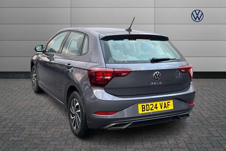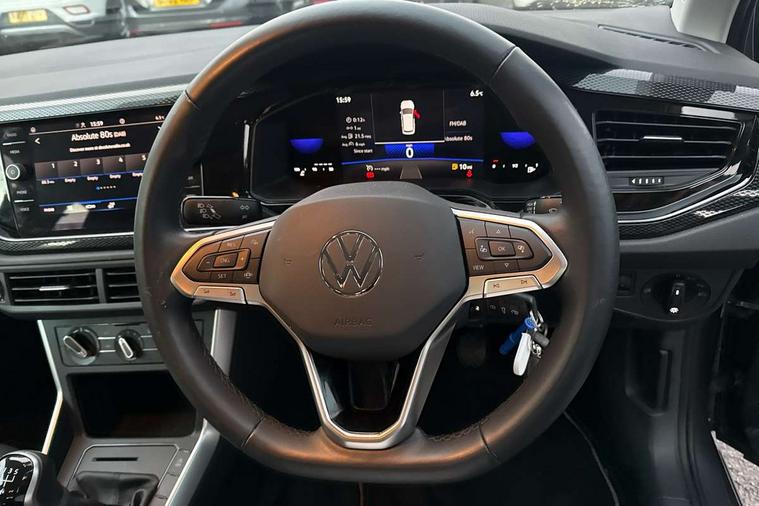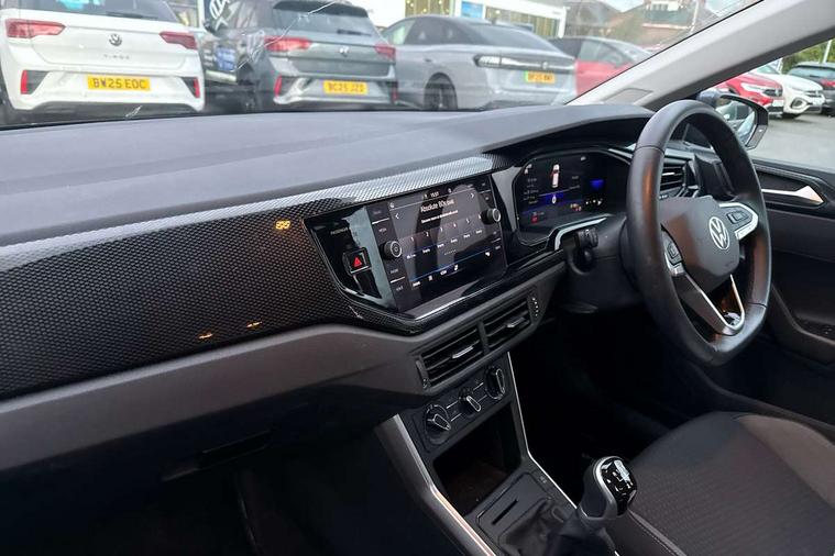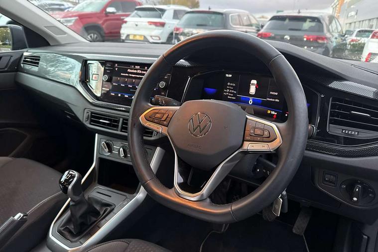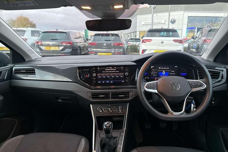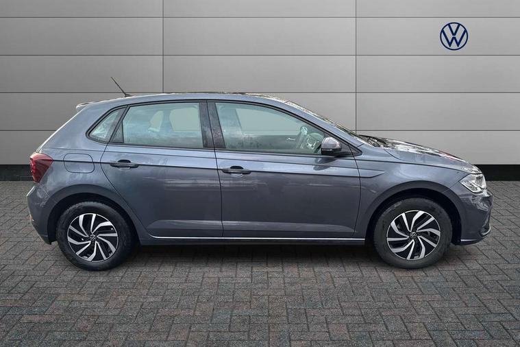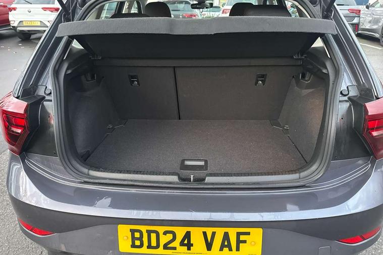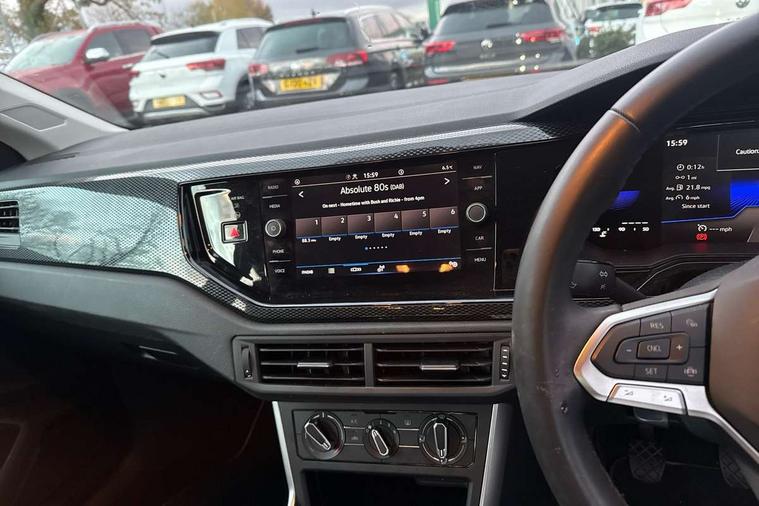 Advanced driver attention and drowsiness monitor, Bluetooth mobile phone interface, Cruise control + speed limiter, Dynamic road sign display, Emergency call service, Lane keeping system Lane Assist, Power assisted speed sensitive steering, Preparation for navigation system with media and internet package, Preparation for We connect and We connect plus, Speedo and rev counter, electronic odometer, trip, service interval display and exterior temperature gauge, Standard rear axle, Trip computer, Warning signal and warning light for front and rear seatbelts not fastened, Washer fluid level indicator, Wireless app connect, Front wheel drive, Rear shock absorpion, Start-stop system with battery regeneration (recuperation - energy recovery during braking), DAB Digital radio, Diversity antenna for FM reception, Front and rear 6 speakers, Automatic dimming interior rear view mirror, Automatic headlight control with LED separate daytime running lights with coming/leaving home function, Body colour bumpers with chrome inserts, Body colour door handles, Body colour door mirrors, Electric front windows, Engine badge deletion, Headlight range adjustment, Heat insulating and laminated safety glass windshield, Heat insulating darkened glass in side and rear windows, Heat insulating glass windscreen, LED Headlights, LED rear combination lamps, Power folding adjustable/heated exterior mirrors and front passenger exterior mirror lowering function, Rain sensor, Rear electric windows, Rear fog light, Rear side wing doors, Rear windscreen washer and wiper with interval delay, Third brake light, 12V power socket in centre console, 2 front and 2 rear reading lights with switch off delay and dimmer, 2 USB-C ports in the front, 2 USB-C charging sockets on the center console in the rear, 3 rear head restraints, 60/40 split folding rear seat and rear seat bench not split, Ceramique roof lining, Chrome plated radiator grille inserts, air vent surrounds and light switch surrounds, Door and side trim panel, Driver and front passenger seat height adjustment, Driver/passenger sunvisors with illuminated vanity mirrors, Front centre armrest, Front seat backrest storage pockets, Front standard seats, Handbrake lever handle in leather, Hartley/Thomas cloth upholstery, Headliner in recycled material, Isofix child seat preparation easy-fit (for two outer rear seats, and front passenger seat) compatible with I-size, Leather trimmed gear knob, Luggage compartment cover, Luggage compartment lighting, Removable luggage compartment floor, Single front passenger seat, Standard climatic zones, Standard pedal cluster, Three spoke leather wrapped multifunction steering wheel, Light and vision pack - Polo, 3 point height adj front seatbelts + pretensioners, 3x3 point rear seatbelts, ABS, Driver and front passenger airbag with front passenger airbag deactivation, Drivers and front passengers safety optimised head restraints, ESC (Electronic stability control) + EDL (Electronic Differntial lock) and ASR (Traction control), Extended and predictive pedestrian/ cyclist protection, Front assist with autonomous emergency braking (for Adaptive Cruise Control ACC up to 130 mph), Front curtain and side airbags with center airbag, Front disc brakes, Hill hold control, Manual child lock in rear doors, Rear drum brakes, Single tone horn, Tyre pressure loss indicator, Alarm with interior protection, Anti-theft alarm system with interior monitoring, backup horn, and towing protection, Anti-theft wheel bolts, Electronic engine immobiliser, Lava stone black gloss/matt decorative inserts in dash and front door panels, Low rolling resistance tyres,