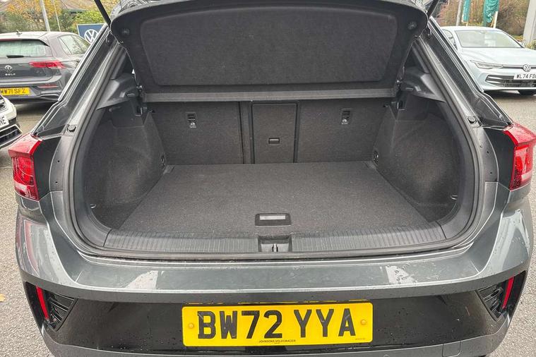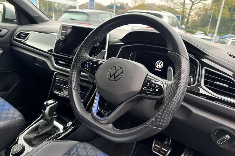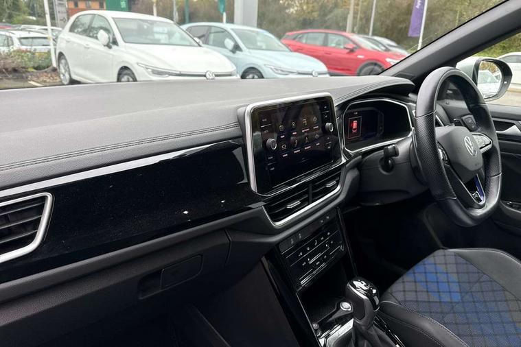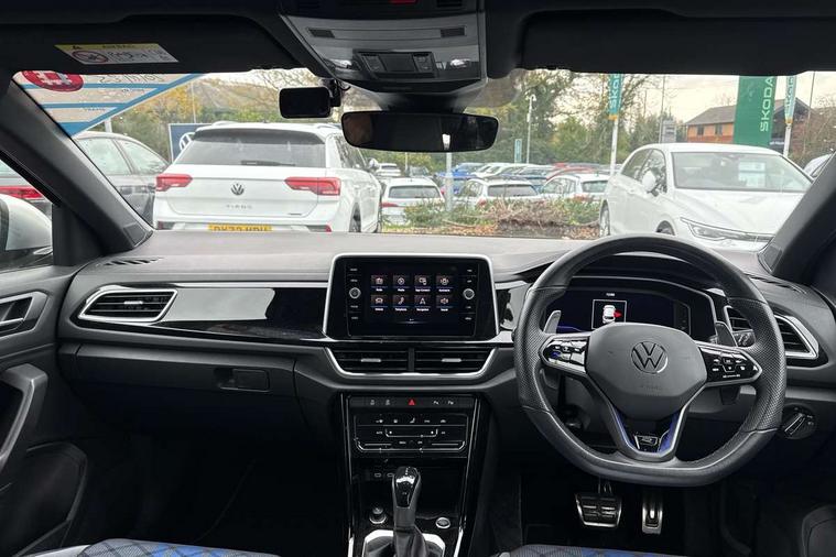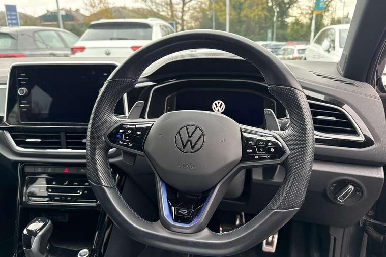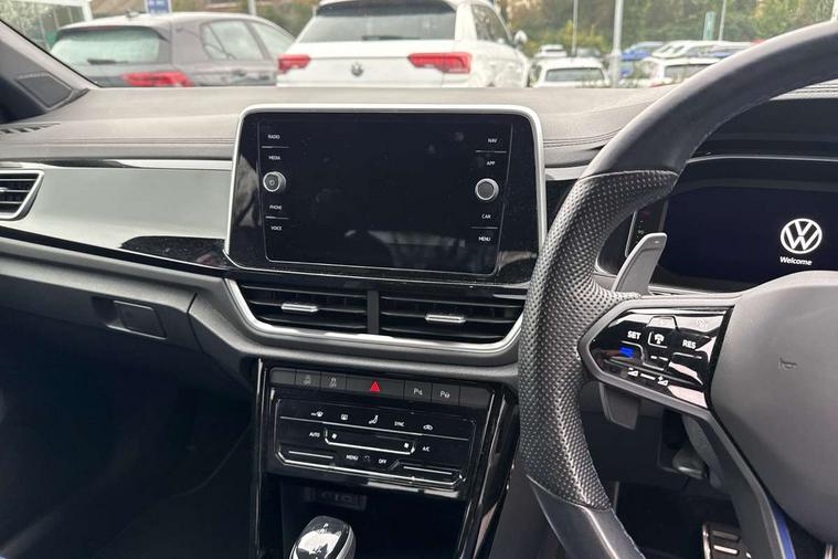 10.25" Digital cockpit pro, Bluetooth mobile phone interface, Driver alert system with fatigue detection, Driver tips and journey analysis, Emergency call service, Lane keeping system Lane Assist, Modified key software - reduce switch off time for key status change to Long no motion, Online services, Park assist including front and rear parking sensors, Service interval indicator, Tailgate/trunk lid release from outside, Think blue trainer driver tips and journey analysis, Warning sound and light for front seatbelts unfastened, Wireless app connect, Battery regeneration during braking, Four wheel drive, Start/stop function with battery regeneration, Diversity antenna for FM reception, Front and rear 6 speakers, Music playback - MP3, WMA and AAC files, Premium USB cable in choice of either Apple or Android smartphone compatibility, SD card slot, Simultaneous pairing of 2 compatible mobile devices, Title and cover art display, We Connect and We Connect Plus functionality, 3rd brake light, Auto dimming interior rear view mirror, Automatic hazard lights activation under emergency braking, Automatic headlight control with LED separate daytime running lights with coming/leaving home function, Extended roof spoiler, Exterior mirrors aspherical on driver side, convex on front passenger side, External USB type C socket and charging sockets, Front windscreen wiper with intermittent wipe and 4 position delay, Heated rear window, LED Plus headlamps, LED rear combination lamps, LED rear number plate lights, LED tail lamp rear comination lamps, Power windows with comfort operation and circuit breaker, Privacy glass for rear side windows and rear window, R-Line design body coloured bumpers, Rain sensor, Rear fog light on one side and reversing lights on both sides, Rear side wing doors, Rear wash/wipe with intermittent wipe setting, Remote electrically foldable door mirrors, puddle lights and reverse activated passenger's door mirror, 12V power socket in centre console, 3 rear head restraints, 3 seat bench in 2nd row, 4 load lashing points in luggage compartment, Air care climatronic air conditoning system with active combination filter and 2-zone temperature control, Ambient lighting - 10 colour (blue), Black roof lining, Chrome plated radiator grille inserts, air vent surrounds and light switch surrounds, Door and side trim panel with leatherette insert, Drawer under drivers seat, Driver/front passenger seat height adjustment, Front + rear carpet mats, Front centre armrest, Front cupholders x 2, Front footwell illumination, Front scuff plates with R logo in door apertures, Front sport seats, Heated leather wrapped multi function sports steering wheel with tiptronic, Instrument lighting, white adjustable panel illumination, Interior light delay, Isofix child seat preparation, Leather gearshift handle, LED interior light with switch off delay/dimmer and 2 front/rear LED reading lights, Load-through provision with cup holder when folded down ('Unsplit rear seat bench, split folding backrest, with centre armrest), Luggage compartment lighting, Lumbar support for driver's and front passengers seat, Non-folding front passenger seat backrest, R-logo stitching in floor mats, Single front passenger seat, Stainless steel pedals, Storage compartment in left and right luggage area, Storage compartment in rear doors, Storage compartments in driver and front passenger doors, Sunvisors with illuminated vanity mirrors, Variable boot floor, height adjustable and removable, Driver assistance pack without proactive passenger protection - T-Roc, R styling pack - T-Roc, 3 point height adj front seatbelts + pretensioners, 3 point seatbelts in outer rear with ECE label, ABS, Child locks on rear doors, Driver and front passenger airbag with front passenger airbag deactivation, Driver and front passenger safety-optimised head restraints, Drivers seatbelt reminder, Electronic parking brake, Electronic Stability Control (ESC) inc EDL (Electronic Differential Lock) and ASR (Traction Control), Front and rear passengers curtain airbag system including front side airbags, Front assist with city emergency braking and pedestrian monitoring, Front seat side impact airbags, Hill descent control, Hill start assist, Predictive pedestrian protection, Rear disc brakes, Single tone horn, Tyre pressure loss indicator, Volkswagen roadside assistance, Alarm with interior protection, Anti-theft alarm system with interior monitoring, backup horn, and towing protection, Keyless entry and start, Remote central locking with SAFELOCK, radio remote control with 2 remote control folding keys, Trims for alloy wheels,