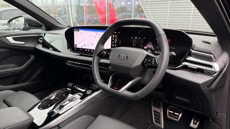 Adaptive cruise control, Advanced driver attention and fatigue montior, Audi application store, Audi assistant, Audi connect emergency call and service, Audi drive select, Audi smartphone interface, Audi virtual cockpit plus with 11.9" OLED colour display, Automatic start/stop system with coasting functionality, Camera based traffic sign recognition, Intersection assist, Lane departure warning, MMI navigation plus with high resolution 14.5" OLED touchscreen colour display, Park assist plus, Parking system plus with 360 display, Progressive steering with servotronic, Rear view camera, Swerve assist and turn assist, Traffic sign based speed limiter, Sports suspension lowered by 20mm, 2 USB-C ports in both the front and rear, Audi sound system impressive sound with 10 loudspeakers including centre speaker and subwoofer, 6-channel amplifier with a total output of 180 watts, DAB digital radio reception, Smartphone compartment with wireless charging, Aluminium window trims, Auto dimming rear view mirror, Body colour door mirrors, Door mirrors - electrically adjustable, heated, folding and auto dimming on both sides, Front and rear electric windows, Front door sill trims with aluminium inlays, illuminated with 'S' logo, High beam assist, LED headlights Plus incl. digital daytime running lights, turning light, all-weather light, motorway light, manouevring light and intersection light, LED rear lights pro incl. dynamic rear indicators and illuminated light strip with animated coming and leaving home function, LED third brake light, Privacy glass, Rear and side windows with heat insulating glass, Rear boot, Rear side wing doors, S Line badges on the front wings, S line bumpers, radiator grille and diffuser in phantom black and diffuser insert in matt anthracite, White rhombus logo projection light in exterior mirrors, Windscreen with acoustic glazing, 3 rear headrests, 3 seat rear bench, 3 spoke leather steering wheel with multi-function buttons with touch control, flattened on top and bottom, with S badging and contrast stitching, 3-zone automatic climate control, 40:20:40 split folding rear seat bench with centre armrest and cup holders, Comfort front centre armrest, Front and rear floor mats, Front seats with manual adjustment for position and 4-way electric lumbar support, Front sport seats with integrated headrest and S embossed logo, Headlining in black cloth, Heated front seats, i-Size child seat mounting on the front passenger side and outer rear seats, i-Size and top tether on the outer rear seats, Luggage compartment lid, electrically opening and closing, Manual steering column height and depth adjustment, Single front passenger seat, Stainless steel pedals and footrest, Steering wheel grips in perforated leather and shift paddles, Ambient lighting package plus - A5, 3x3 point rear seat belts, Driver airbag, Electric child safety locks, First aid kit with warning triangle and vests, Front emergency brake assist, Front passenger airbag, Front passenger airbag deactivation, Front side airbags with head airbag system and front interaction airbag, Hill hold assist, Seat belt monitoring with rear seat occupant reminder, Tyre pressure loss indicator, Anti theft alarm, Anti-theft wheel bolts, Keyless Go, Accent surfaces and control buttons in gloss black, Black dashboard with contrast stitching, Inlays in matt brushed aluminium with linear embossing, anthracite, Softwrap in leatherette with contrast stitching, Upper and lower interior elements in leatherette, Tyre repair kit,