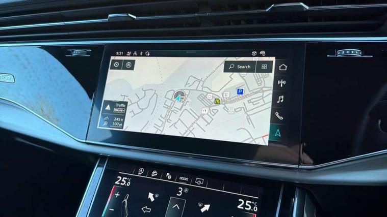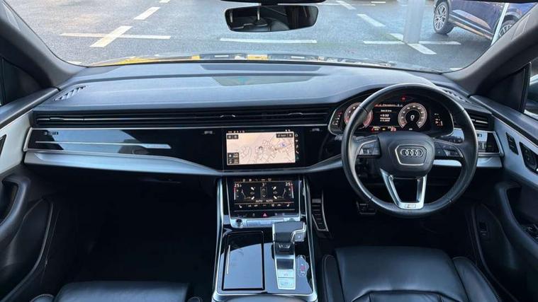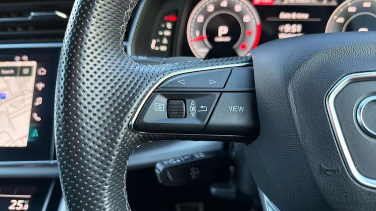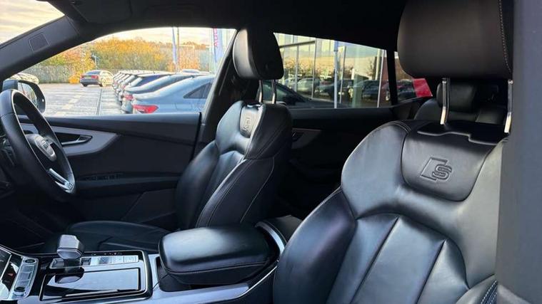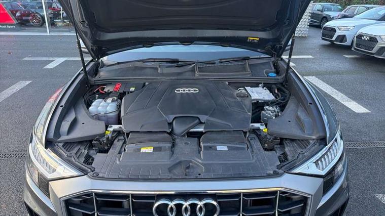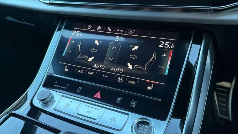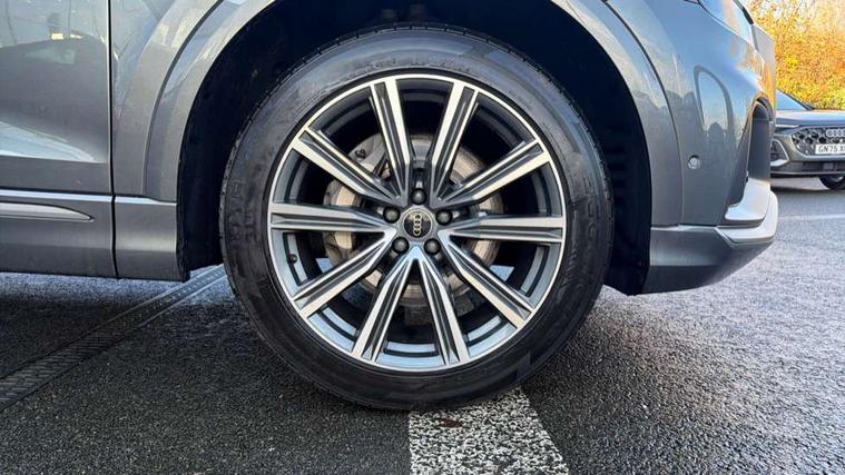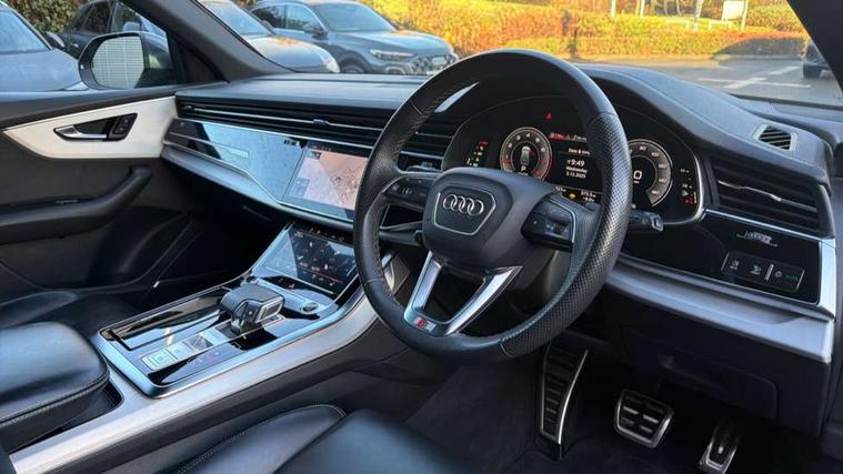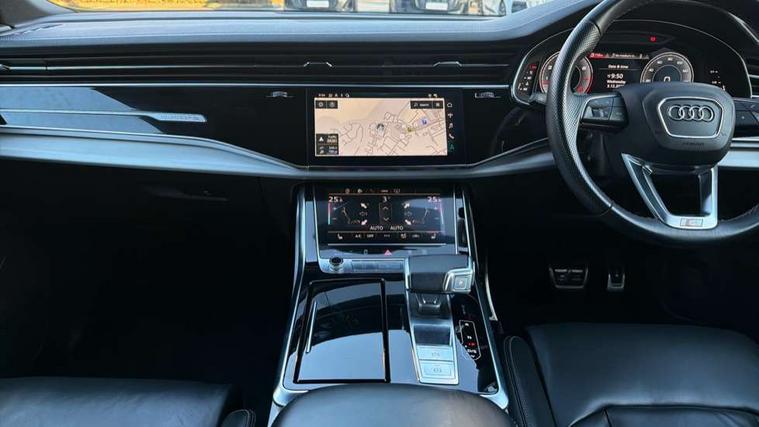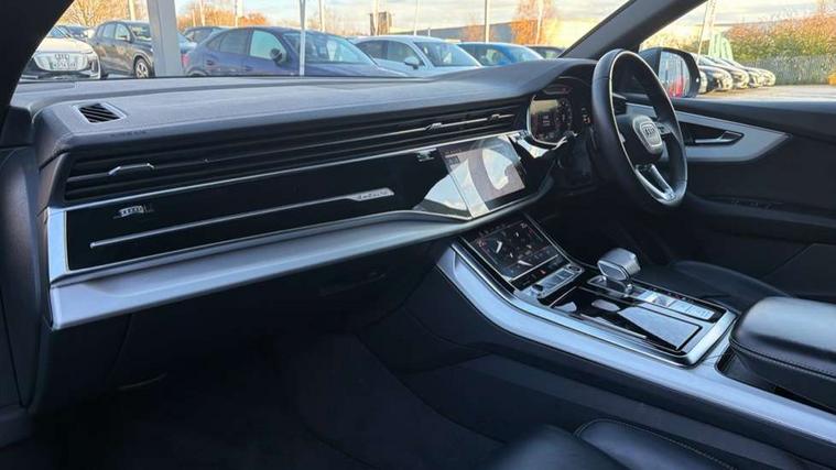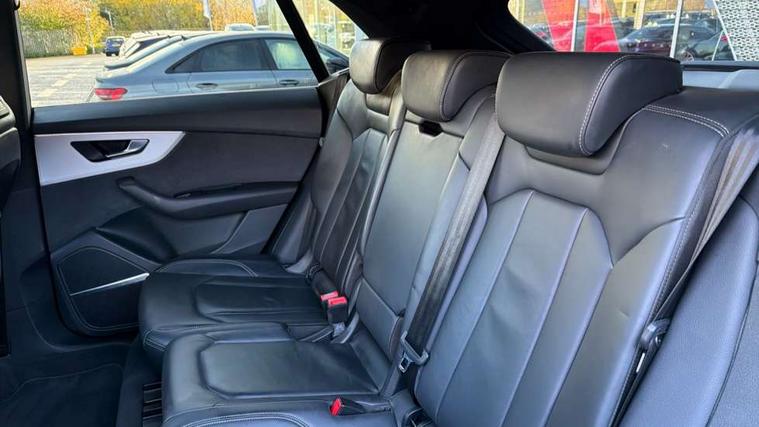 10.1" and 8.6" Dual colour touchscreens, Audi connect safety and service (e-call), Audi connect with Amazon Alexa Integration, Audi drive select, Audi parking system plus includes 360 degree display with front and rear sensors, Audi virtual cockpit - 12.3" high resolution LCD display with fully customisable instrument cluster, Automatic start/stop system, Electro-mechanical PAS, Low washer fluid indicator, MMI - Multi Media Interface control system, MMI navigation plus with MMI touch, Natural voice recognition, On board computer, Operating buttons in black, glass look with haptic feedback, Power operated tailgate, Rear view camera, Service interval indicator, Smartphone interface includes wireless Apple carplay/Android Auto, 48V Mild hybrid technology, 85 litre fuel tank, Adaptive sport air suspension, Quattro all wheel drive with self locking centre differential, Audi music interface with 2 USB ports with charge and data functions, Audi sound system with 6 channel amplifier, 180 watt amplifying capacity and 10 loudspeakers including subwoofer, Aux-in socket, DAB Digital radio, 3rd brake light, Acoustic windscreen, Aluminium window trim, Audi HD Matrix LED headlights with dynamic front and rear indicators, Auto dimming frameless rear view mirror, Body colour door mirrors, Coming/leaving home lighting function, Electric front+rear windows, Electrically folding auto dimming/adjustable/heated door mirrors with memory function, LED side indicators and kerb view function for passenger side, Headlight washers, Heat insulating glass in windshield, Illuminated door sill trims with S line logo, LED signature daytime running lights, Platinum grey front spoiler lip and diffuser insert with honeycomb grille in black, Privacy glass - dark tinted rear and rear side windows from B-pillar backwards, Rain and light sensors, Rear side wing doors, Rear wiper, S line badges on front wings, S Line body styling, S line bumpers in full body colour paint finish, S line roof spoiler, S Line side skirts, S line side ventilation grille, 2 zone automatic climate control, 3 bench rear seats in 2nd row, 4-way lumbar support for front seats, 40:20:40 split folding rear bench seat, Black cloth headlining, Comfort front centre armrest, Driver seat memory function, Electrically adjustable front seats, Front head restraints, Front/rear floor mats, Heated front seats, ISOFIX child seat mounting for front passenger seat and 2 outer rear seats with top tether child seat mounting for all 3 rear seats, LED interior ambient lighting, Luggage compartment sill protection in stainless steel, Rear centre armrest with 2 cupholders, Rear headrests, Single front passenger seat, Stainless steel pedals, Sunvisors with illuminated vanity mirrors, 3 point seatbelts on all seats, Audi pre sense front, Child locks on rear doors, Driver and front passenger, front side and curtain airbags, Electromechanical parking brake, Electronic Stability Control (ESC) including ABS, ASR and EDL, Front passenger airbag deactivation, Hill descent control, Hill hold assist, Predictive pedestrian protection, Seatbelt monitoring, Traction control, Tyre pressure loss indicator, Warning triangle and first aid kit, Anti theft alarm with tow away protection, Anti-theft wheel bolts and wheel loosening detection, Immobiliser, Keyless go with remote central locking, Dark matt brushed aluminium inlay, Tool kit, Tyre repair kit,