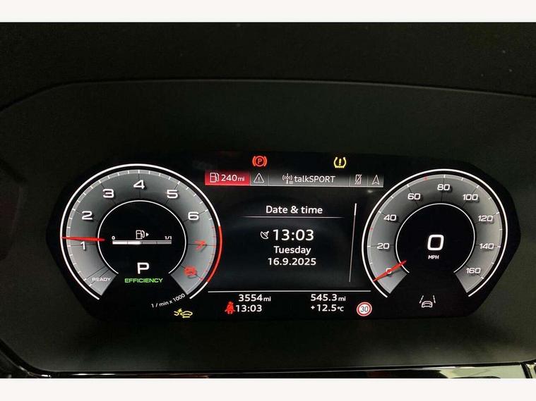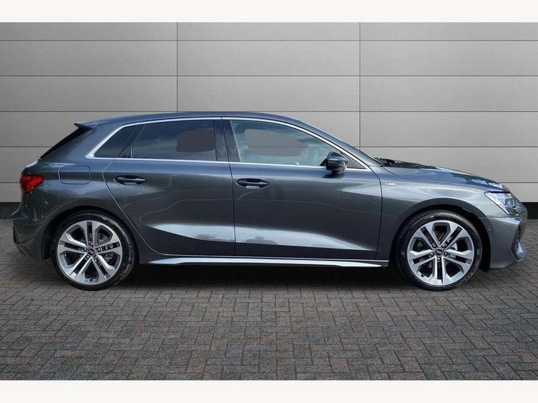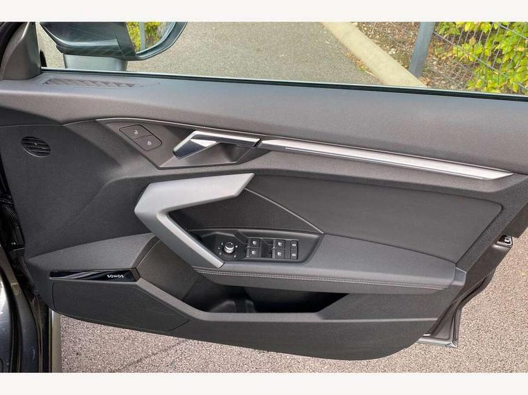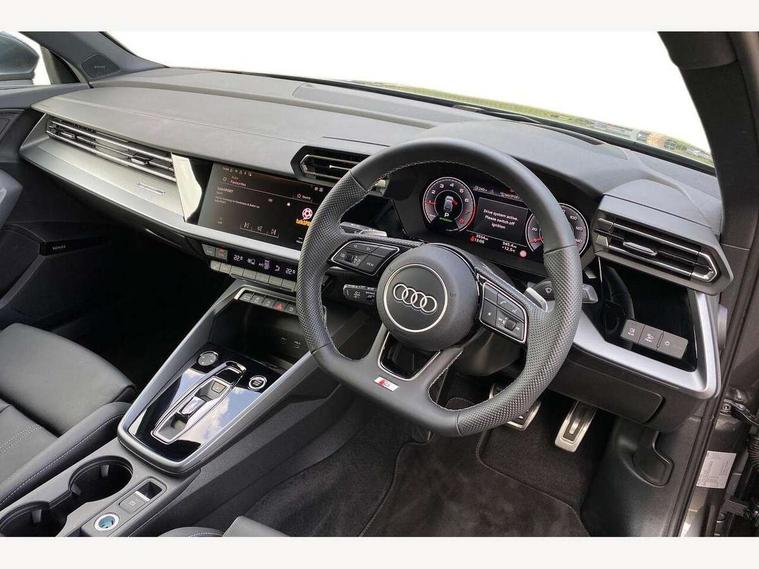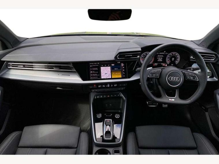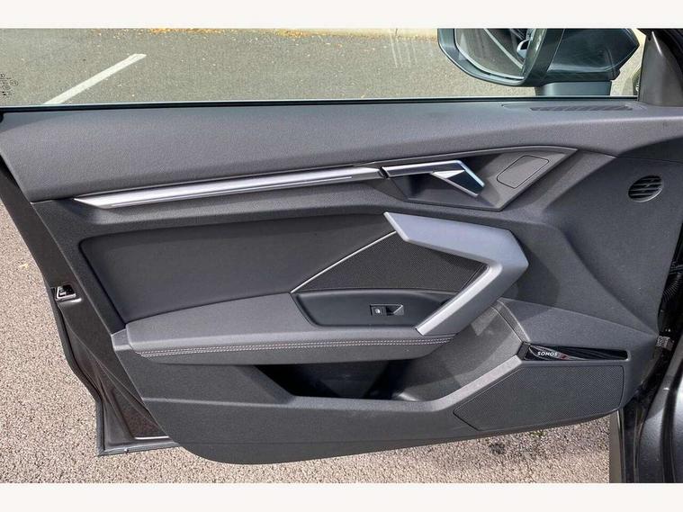 Adjustable speed limiter, Audi drive select, Audi smartphone interface with app store includes wireless Apple carplay, Android auto and Amazon alexa integration, Audi virtual cockpit plus - 12.3" full HD resolution dynamic digital instrument cluster, Automatic start/stop system with recuperation, Bluetooth interface, Camera based traffic sign recognition, Collision avoidance assistant, Cruise control, Distraction and Fatigue warning, e-Call (emergency call), Electromechanical power speed sensitive steering, Emergency assist, Lane departure warning system, MMI Navigation Plus with high resolution 10.1" colour touch screen display, Park Assist with parking system Plus, Service indicator, Tailgate, Trip computer, Voice control system with natural language interaction, Sports suspension, Audi Phonebox light with wireless charging, Audi sound system - 10 loudspeakers including centre loudspeaker and subwoofer, DAB Digital radio, USB ports with charging function in the rear, Acoustic glass windscreen, All weather light, Aluminium window trim, Auto dimming frameless rear view mirror, Automatic dynamic range control, Body colour exterior mirrors, Chrome exhaust tailpipes, Dipped beam, main beam, position light and turning light, Electrically adjustable/heated/folding/auto dimming door mirrors with integrated LED indications + kerb view function for passenger side, Exterior model badging, Front and rear side air inlets in grained matt black with dark liquid chrome frame, Front electric windows, Front radiator grill in high gloss dark chrome, Heat insulating glass windscreen, Illuminated door sills with aluminium inserts at the front with S logo, Intersection light, LED 3rd brake light, LED brake lights, LED daytime running x3, LED headlights with LED rear lights and dynamic rear indicators, LED rear number plate lights, LED reverse light, LED tail lights, Light and rain sensors, Manoeuvring light, Motorway light, Privacy glass - dark tinted rear window, rear door and side windows, Rear diffuser and grill in grained matt black with inlay in dark liquid chrome, Rear electric windows, Rear side wing doors, Rear wiper, S line bumpers, S roof spoiler, Side S line emblems on front wings, Side sill trim in dark liquid chrome, Static Cornering lights, 12V socket and storage compartment in front centre console, 3 seat bench in 2nd row, 3 spoke flat bottomed leather multifunction sport steering wheel with gear shift paddles, 3-zone deluxe automatic air conditioning, 4 way electrically adjustable lumbar support for driver and front passenger, 40/20/40 split folding rear seat bench, Black cloth headlining, Black front and rear floor mats, Front and rear centre armrest in artificial leather with contrasting stitching on armrests and instrument panel, Front and rear headrests, Heated front seats, Height and reach adjustable steering wheel, Manual boot compartment lid, Manually adjustable front seats, Rear centre armrest with cupholder, S badging on the steering wheel, Seat side bolsters, Single front passenger seat, Stainless steel pedals and front footrest in black, Twin leather upholstery with front sports seats S embossed logo, Aluminium interior elements pack - A3, Multi-coloured LED interior lighting package with Multi-coloured contour lighting of instrument panel - A3, 3x3 point rear seat belts, Driver and front passenger airbag with passenger airbag deactivation, Electronic Stabilisation Control (ESC) including ABS, ASR and EDL, First aid kit with warning triangle and 2 safety vests, Front side airbags with head airbags and interaction airbag, Hill hold assist, Pre-sense front with pedestrian and cyclist detection, Seatbelt monitoring, Tyre pressure loss indicator, Anti theft alarm, Anti-theft wheel bolts, Electronically operated child locks, Immobiliser, Remote central locking with safelock, Black dashboard, Inlay in dark aluminium spectrum,