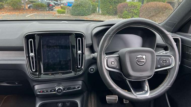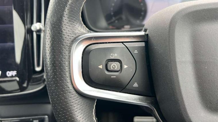 12.3" Active TFT crystal driver's instrument display, 9" centre console portrait touch screen, Adjustable steering wheel force, Bluetooth hands free telephone kit, Drive mode selector, Lane keep assist with driver alert control, Oncoming Lane Mitigation, Sensus navigation with European mapping and traffic information, Speed limiter, Speed sensitive steering, Voice activated control for key functions, Volvo on call, Sports chassis, DAB Digital radio, Steering wheel mounted remote controls, Adaptive brake lights with high level LED brake lights, Auto dimming interior mirror, Automatic headlamp levelling, Black stone door mirrors, Black stone roof, Colour coordinated auto folding and heated power door mirrors, Dark tinted windows for rear door side windows and cargo compartment, Dual integrated exhaust pipes with high gloss black surround, Front aluminium tread plates, Front and rear electric windows, High gloss black front and rear skid plate, High gloss black lower front bumper, High gloss black mesh front grille with high gloss black surround, High gloss black roof rails, High gloss black sensus surround deco, High gloss black window trim, Home safe and approach lighting, LED front fog lights, LED Headlights + Active high beam incorporating daytime running lights, Rain sensor with automatic windscreen wiper activation, Rear side wing doors, Rear wiper, Roof antenna, Roof spoiler, Visible VIN plate, 12V socket in front tunnel console and luggage compartment, 2 zone electronic climate control and rear air vent, 3 seat bench in 2nd row, 60/40 split folding rear seat, Ambient front door and instrumental panel lighting, Centre console cupholders and storage, Charcoal headlining, Driver's side lower dashboard credit card storage compartment, Front door pocket and front cupholder illumination, Front footwell illumination, Front headrests, Front reading light and theatre lighting, Front tunnel net pocket and integrated waste bin, Glovebox bag hook, Height/reach adjustable steering column, High gloss centre tunnel deco, Illuminated glovebox, Illuminated luggage compartment, Illuminated tailgate, Illuminated vanity mirrors, Isofix attachments on outer rear seats, Key integrated remote, Leather gearknob, Load protection net, Multi directional lumbar support, Multicolour theatre lights, Rear armrest / integral cup holders / storage tray, Rear coat hook, Rear reading and courtesy lights, Single front passenger seat, Sports Leather steering wheel, Sports pedals, Underfloor cargo storage, 3x3 point rear seatbelts, City safety includes pedestrian, cyclist and large animal detection and front collision warning with full auto brake, Drivers knee airbag, Dual stage driver/passenger airbags, Electronic parking brake with auto hold, First aid kit, Front and outer rear seatbelt reminder and pretensioners, Front seats SIPS airbags, Hill descent control, Hill start assist, Inflatable curtain, Passenger airbag cut-off device, Road sign information display, Run off Road Mitigation, Run off Road Protection, SIPS (Side Impact Protection System), Slippery road and hazard light alert, Stability and Traction Control with Spin control, Engine Drag Control and Corner Traction Control, Tyre pressure monitoring system, Vehicle deceleration control with Anti-lock Brake System, Electronic Brake Distribution and Emergency Brake Assist, Warning triangle, WHIPS whiplash protection system - front, Anti-theft alarm including immobiliser/volume sensor + level sensor, Care key with user defined top speed, Key integrated remote control central locking + fuel flap with deadlocking system and auto open/close power windows, Locking wheel nuts, Private locking for tailgate, Cutting edge aluminium inlay,