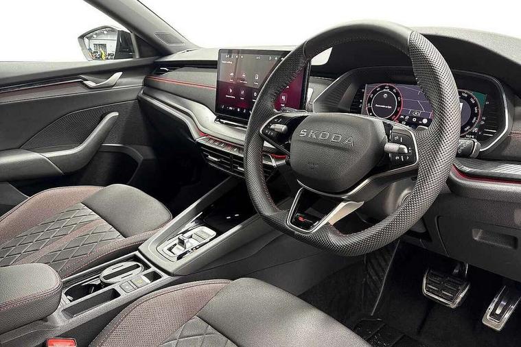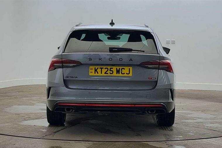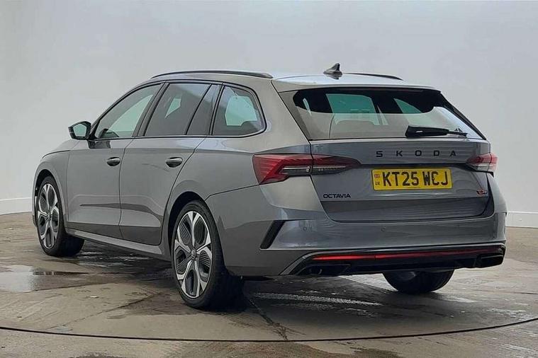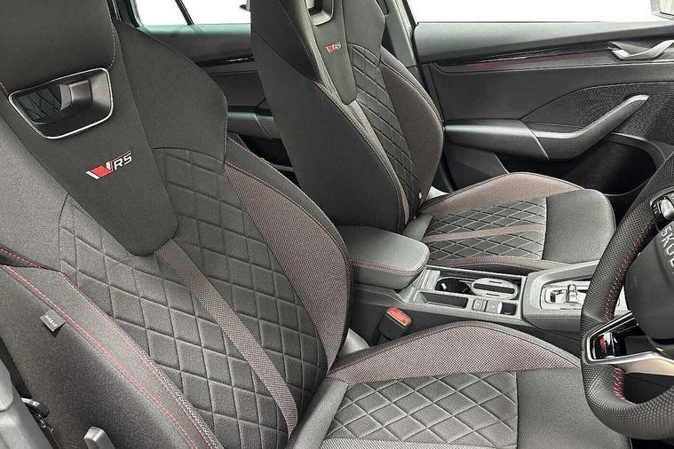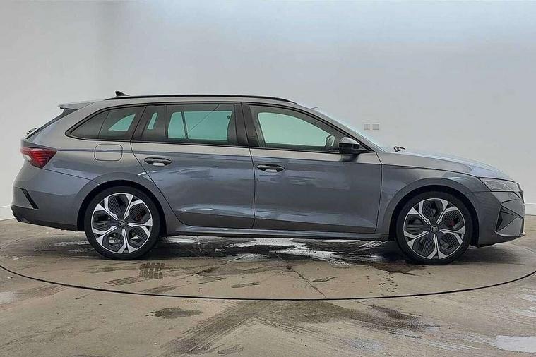 1x USB Typc C port in rear view mirror, 4x USB Type C ports - 2x in front centre console and 2x in rear (45W), Drive mode selection, Driver fatigue sensor, eCall emergency system, Electronic engine sound, Front assist system, Progressive dynamic steering, Traffic sign recognition, Turn Assist, Virtual Cockpit - 10.25" digital display, Voice control system, Wireless charging (15W) with cooling function, Wireless SmartLink for Apple CarPlay and Android Auto, Electronically controlled limited slip differential, vRS suspension, 13" touchscreen display with navigation, DAB Digital radio, Aero front windscreen wipers with intermittent function, Auto dimming rear view mirror, Black sport exhaust pipes, Body colour bumpers, Body colour door handles, Bumpers with rear red reflector strip, Electric front and rear windows, Exterior gloss black sports styling including front grille, window surrounds, door mirrors and badging, Gloss black diffuser, Gloss black roof rails, Gloss black spoiler, Heated rear windscreen, High beam control, High level third brake light, Ice scraper in fuel cap, LED daytime running lights, Logo projection in front doors, Rain and light sensors, Rear fog light on one side and reversing lights on both sides, Rear privacy glass, Rear side wing doors, Rear window wiper, Unique vRS bumpers and exterior styling, 12 volt socket in boot, 2x umbrella in door, 3 rear headrests, 3 seat bench in 2nd row, 4 foldable roof handles, Aluminium pedals, Front head restraints, Front sport seats, Heated front seats, Illuminated glovebox, Interior door handles in dark chrome, Jumbo Box storage, Luggage compartment lighting x2 lights, Mechanical rear seat release from boot, Single front passenger seat, Steering wheel in black leather with black stitching, Storage compartments in left and right of boot, Sun visors with mirrors, Sunglasses storage, Three spoke leather sports multifunction steering wheel with paddles, Ticket holder, Unsplit rear bench seat, split folding backrest with centre armrest with cupholder, Waste bin in door panel, Comfort package - Octavia Estate, Family package - Octavia, Light and view package plus - Octavia, vRS Design Selection pack - Octavia, 3x3 point rear seat belts, Alarm with interior monitoring, tilt sensor and back up horn, Curtain airbags and front side airbags, Driver and front passenger airbags, Drivers knee airbag, Electronic parking brake, ESC including ABS, EBV, MSR, ASR, EDS, HBA, DSR, Front central airbag, Hill hold assist, ISOFIX on front passenger seat and outer rear seats, Passenger airbag deactivate switch, Red brake calipers, Three point seat belts in front and rear, Two tone horn, Tyre pressure monitor, Visual and acoustic seat belt reminder, Warning reflectors in front door, Anti-theft wheel bolts, Keyless entry and start/stop, Remote central locking, Gloss black air vent surrounds, 19" Elias anthracite alloy wheels,
