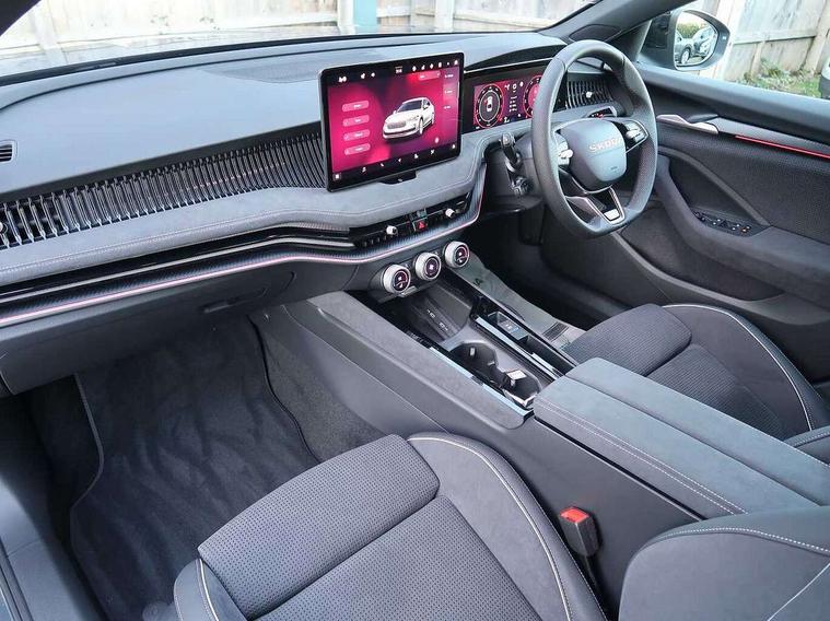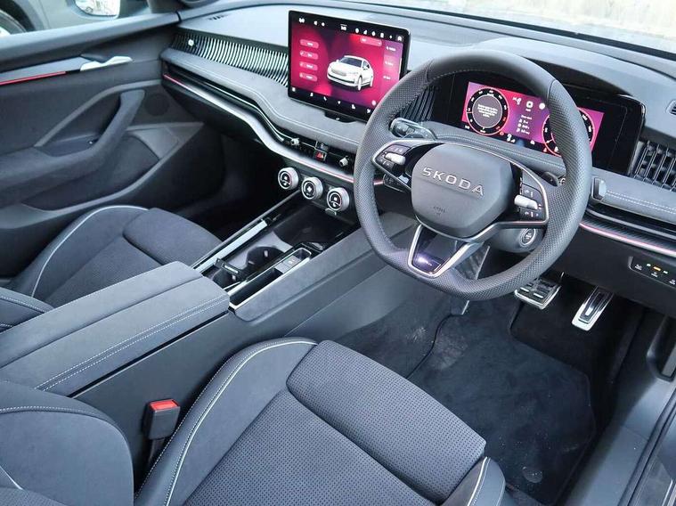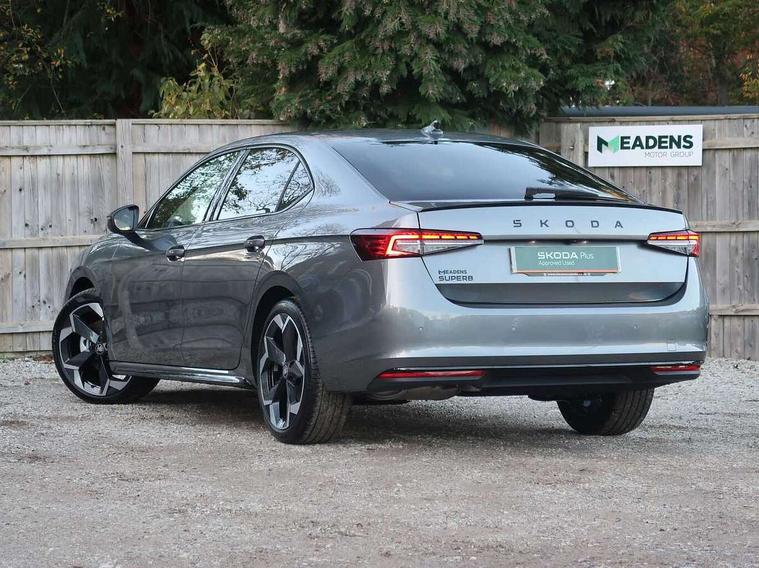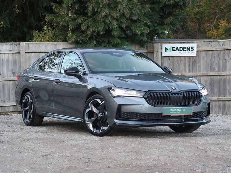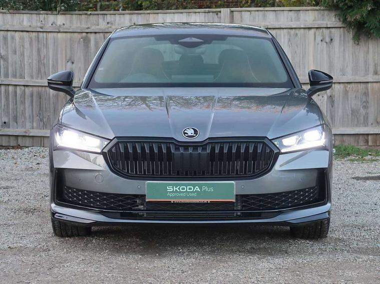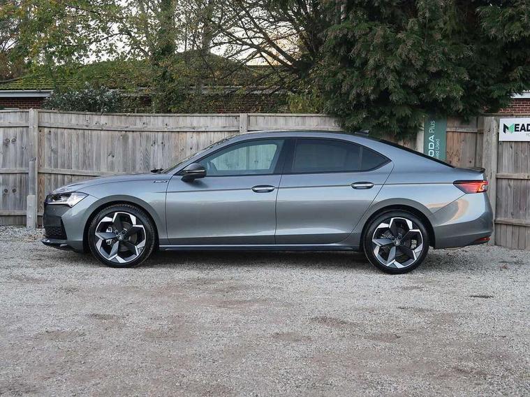 13" touchscreen display with satellite navigation, 4x USB-C ports (2x in front centre console and 2x in rear) (45W), Adaptive cruise control with speed assist, lane assist plus and traffic tram assist, Blind spot detection with door exit warning, Bluetooth system, CareConnect and Emergency Call, ChatGPT functionality, Driver fatigue sensor, Front assist with extended predictive pedestrian protection, Front cross traffic assist, PAS, Quick start all heating software functionality, Stop/start engine system, Traffic sign recognition, Turn assist with evasive assistance, Virtual Cockpit - 10.25" digital display, Voice control system, Washer for rear camera, Wireless charging for one smartphone (15W) with cooling function, Wireless smartlink apple carplay, SmartLink+ android auto, Dynamic chassis control plus with progressive dynamic steering, DAB Digital radio, Display cleaner, FM radio connection, Web radio connection, Acoustic side windows and interior noise suppression, Backdrop lighting, Black exterior styling window and grille surrounds, Body colour door handles, Dynamic range control with poor weather light and integrated fog light, Electrically adjustable, heated, folding and driver side auto-dimming door mirrors with memory function, integrated indicators and logo projection, Frameless auto-dimming rear view mirror with USB-C, Gloss black door mirrors, Ice scraper in fuel tank cap, LED 3rd brake light, Light assist with High beam control, Light assistant (coming/leaving home/tunnel light), Privacy glass, Rear fog lights (x2), Rear side wing doors, Skoda lettering in black, Sportline badging, Sports bumpers, Windscreen wipers with rain sensor, 12V socket 1x centre console 1x boot, 14-way electrically adjustable, memory, front seats with 4-way pneumatic lumbar support, and extendable thigh support with smart comfort entry aid, 2x cargo elements in boot, 2x light in boot, 3 seat bench in 2nd row, 60:40 Split folding rear seats, Aluminium pedals, Bottle holders in the front doors 1.5 litre bottle and rear 1.5 litre bottle, Cup holder in front with easy open mat, Front armrest with storage box, Front sports seats, Heated and ventilated front seats, Height adjustable front and rear head restraints, Illuminated glovebox, Interior lights with control switches, Isofix child seat fittings in outer rear and front passenger seats, LED front and rear reading lights, Single front passenger seat, Skoda lettering on steering wheel, Storage compartment with cover, Storage pockets on back of front seats, Sun visors with illuminated vanity mirrors, Ticket holder on A Pillar, Tri zone climate control, Umbrella in driver's door, Light and view package - Superb, Transport package - Superb Hatchback, 3 rear seatbelts, 8 Airbags - Front driver and passenger, front side driver and passenger, centre, curtain front and rear, drivers knee, Crew protect assist, Driver and passenger seatbelts with warning light, Electronic parking brake, ESC including ABS, EBV, MSR, ASR, EDS, HBA, DSR, RBS, CBC, multi-collision brake (MKB) and Auto hold, Hill hold assist, Power operated child lock in rear doors, Alarm with interior monitoring tilt sensor and back up horn, Backrest remote release from trunk, Electronic engine immobiliser, Keyless start/stop, Remote central locking with SAFE system, Third key, Walk away locking, Decorative front door sills, 19" Torcular polished black alloy wheels with anti theft wheel bolts,
