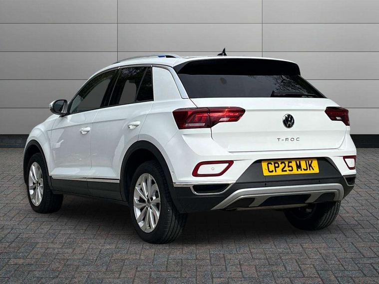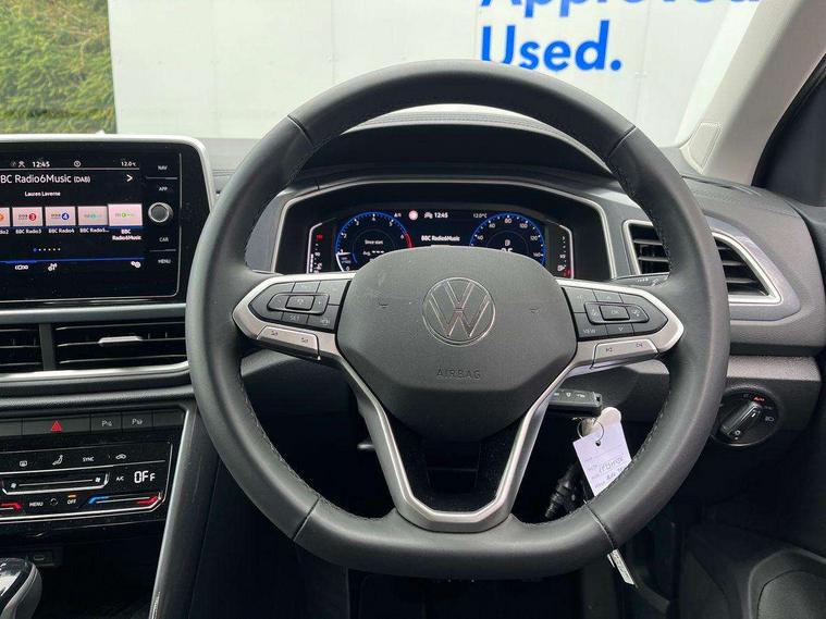 10.25" Digital cockpit pro, Advanced driver attention and drowsiness monitor, Emergency call service, Lane keeping system Lane Assist, Mobile phone interface, Modified key software - reduce switch off time for key status change to Long no motion, Online services, Park assist including front and rear parking sensors, Power assisted speed sensitive steering, Service interval indicator, Tailgate/trunk lid release from outside, Think blue trainer driver tips and journey analysis, Warning sound and light for front seatbelts unfastened, Wireless app connect, Battery regeneration during braking, Start/stop function with battery regeneration, DAB Digital radio, Diversity antenna for FM reception, Front and rear 6 speakers, Music playback - MP3, WMA and AAC files, Premium USB cable in choice of either Apple or Android smartphone compatibility, SD card slot, Simultaneous pairing of 2 compatible mobile devices, Title and cover art display, We Connect and We Connect Plus functionality, Auto dimming interior rear view mirror, Automatic hazard lights activation under emergency braking, Automatic headlight control with LED separate daytime running lights with coming/leaving home function, Body colour sports bumpers with silver metallic underbody fascia, Body coloured exterior mirror housings and door handles, Dynamic headlight range control with self adjusting whilst driving, Electrically adjustable and heated door mirrors, Extended roof spoiler, Exterior mirrors aspherical on driver side, convex on front passenger side, External USB type C socket and charging sockets, Front windscreen wiper with intermittent wipe and 4 position delay, Heated rear window, LED 3rd brake light, LED rear combination lamps, LED rear number plate lights, Light mode for poor weather, rain, fog or snow, Power windows with comfort operation and circuit breaker, Privacy glass for rear side windows and rear window, Rain sensor, Rear exhaust tailpipe, Rear fog light on one side and reversing lights on both sides, Rear side wing doors, Rear wash/wipe with intermittent wipe setting, Remote electrically foldable door mirrors, puddle lights and reverse activated passenger's door mirror, 12V power socket in centre console, 3 rear head restraints, 3 seat bench in 2nd row, 4 load lashing points in luggage compartment, Air care climatronic air conditoning system with active combination filter and 2-zone temperature control, Chrome plated radiator grille inserts, air vent surrounds and light switch surrounds, Door and side trim panel with leatherette insert, Drawer under drivers seat, Front + rear carpet mats, Front centre armrest, Front comfort sports seats, Front cupholders x 2, Front footwell illumination, Front seat back storage pockets, Glove compartment door with light, Instrument lighting, white adjustable panel illumination, Interior ambient lighting and surround lighting, Interior light delay, Isofix child seat preparation, Leather gearshift handle, LED interior light with switch off delay/dimmer and 2 front/rear LED reading lights, Load-through provision with cup holder when folded down ('Unsplit rear seat bench, split folding backrest, with centre armrest), Luggage compartment lighting, Non-folding front passenger seat backrest, Single front passenger seat, Storage compartment in left and right luggage area, Storage compartment in rear doors, Storage compartments in driver and front passenger doors, Sunvisors with illuminated vanity mirrors, Variable boot floor, height adjustable and removable, Driver assistance pack without proactive passenger protection - T-Roc, 3 point height adj front seatbelts + pretensioners, 3 point seatbelts in outer rear with ECE label, ABS, Child locks on rear doors, City emergency braking and pedestrian monitoring, Driver and front passenger airbag with front passenger airbag deactivation, Driver and front passenger safety-optimised head restraints, Drivers seatbelt reminder, Electronic parking brake, Electronic Stability Control (ESC) inc EDL (Electronic Differential Lock) and ASR (Traction Control), Front and rear passengers curtain airbag system including front side airbags, Predictive pedestrian protection, Rear disc brakes, Two tone horn, Tyre pressure loss indicator, Volkswagen roadside assistance, Deep iron grey decorative inserts in dashboard, centre console and front door trim panels, Trims for alloy wheels,