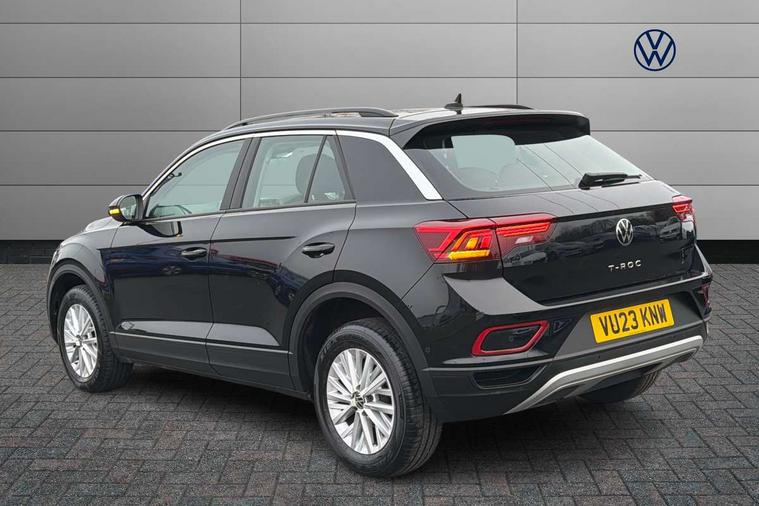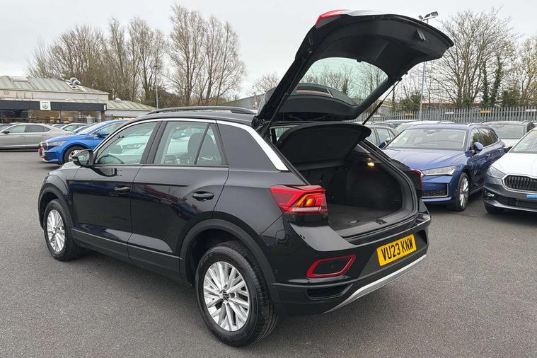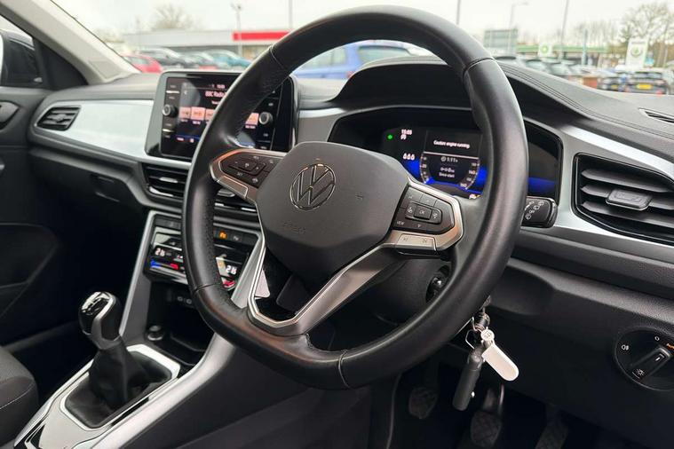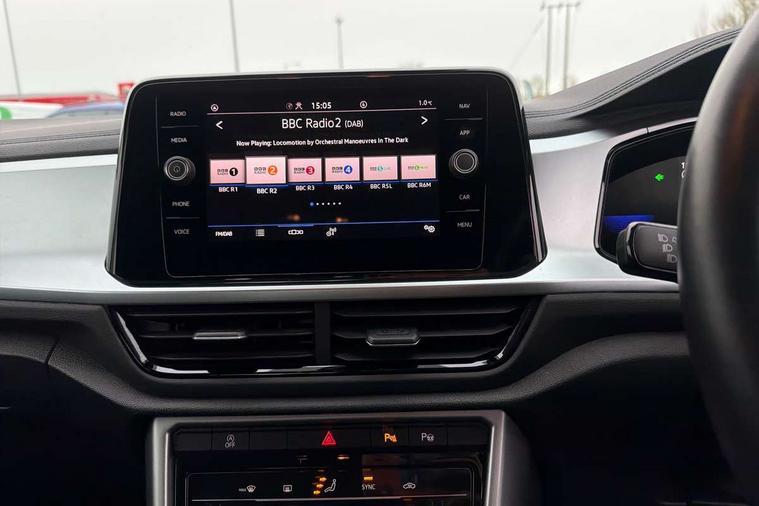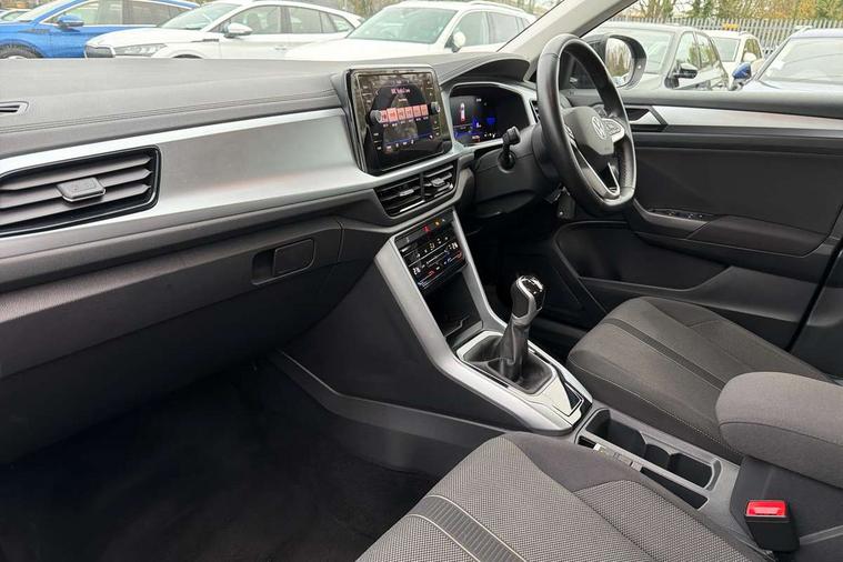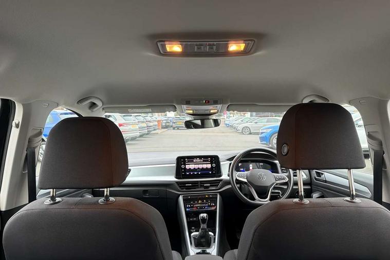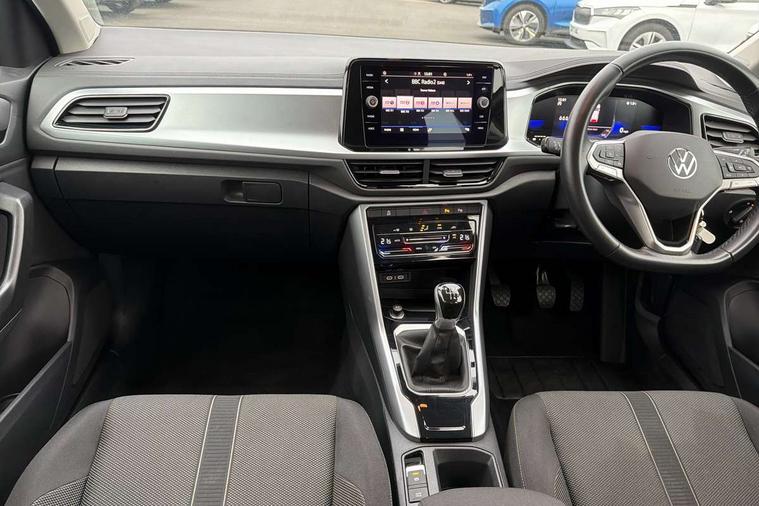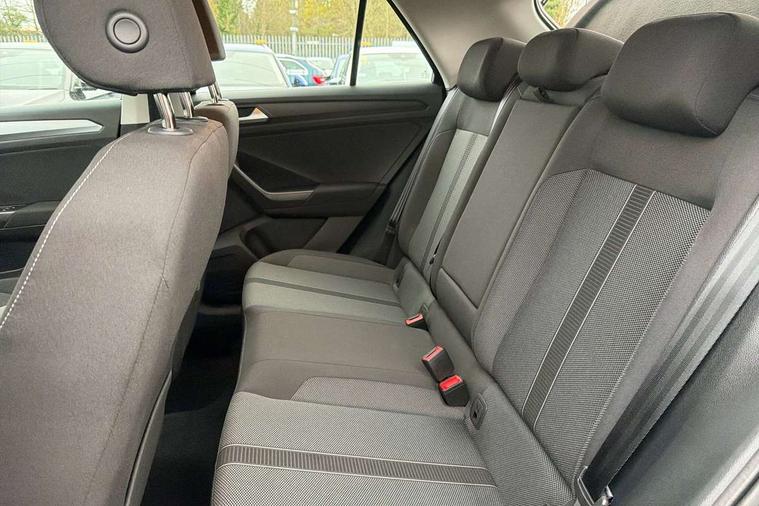 Bluetooth mobile phone interface, Driver alert system with fatigue detection, Driver tips and journey analysis, Emergency call service, Lane keeping system Lane Assist, Modified key software - reduce switch off time for key status change to Long no motion, Online services, Park assist including front and rear parking sensors, Power assisted speed sensitive steering, Service interval indicator, Tailgate/trunk lid release from outside, Think blue trainer driver tips and journey analysis, Warning sound and light for front seatbelts unfastened, Wireless app connect, Battery regeneration during braking, Front shock absorption, Rear shock absorption chassis with increased ride height, Start/stop function with battery regeneration, DAB Digital radio, Diversity antenna for FM reception, Front and rear 6 speakers, Music playback - MP3, WMA and AAC files, Premium USB cable in choice of either Apple or Android smartphone compatibility, SD card slot, Simultaneous pairing of 2 compatible mobile devices, Title and cover art display, We Connect and We Connect Plus functionality, 3rd brake light, Auto dimming interior rear view mirror, Automatic hazard lights activation under emergency braking, Automatic headlight control with LED separate daytime running lights with coming/leaving home function, Black roof rails, Body coloured bumpers and radiator grille with chrome trim and front fog lamps with chrome bezel, Body coloured exterior mirror housings and door handles, Extended roof spoiler, Exterior mirrors aspherical on driver side, convex on front passenger side, External USB type C socket and charging sockets, Front windscreen wiper with intermittent wipe and 4 position delay, Heated rear window, LED Headlights, LED rear combination lamps, LED rear number plate lights, LED tail lamp rear comination lamps, Power windows with comfort operation and circuit breaker, Rain sensor, Rear exhaust tailpipe, Rear fog light on one side and reversing lights on both sides, Rear side wing doors, Rear wash/wipe with intermittent wipe setting, Remote electrically foldable door mirrors, puddle lights and reverse activated passenger's door mirror, 12V power socket in centre console, 3 rear head restraints, 3 seat bench in 2nd row, 4 load lashing points in luggage compartment, Air care climatronic air conditoning system with active combination filter and 2-zone temperature control, Ambient lighting with mirror logo projection, Cloth upholstery, Door and side trim panel in cloth, Drawer under drivers seat, Driver/front passenger seat height adjustment, Front centre armrest, Front comfort sports seats, Front cupholders x 2, Front reading light, Instrument lighting, white adjustable panel illumination, Interior light delay, Isofix child seat preparation, Leather gearshift handle, Load-through provision with cup holder when folded down ('Unsplit rear seat bench, split folding backrest, with centre armrest), Luggage compartment lighting, Lumbar support for driver's and front passengers seat, Non-folding front passenger seat backrest, Single front passenger seat, Storage compartment in left and right luggage area, Storage compartment in rear doors, Storage compartments in driver and front passenger doors, Sunvisors with illuminated vanity mirrors, Variable boot floor, height adjustable and removable, Driver assistance pack without proactive passenger protection - T-Roc, 3 point height adj front seatbelts + pretensioners, 3 point seatbelts in outer rear with ECE label, ABS, Child locks on rear doors, Driver and front passenger airbag with front passenger airbag deactivation, Driver and front passenger safety-optimised head restraints, Drivers seatbelt reminder, Electronic parking brake, Electronic Stability Control (ESC) inc EDL (Electronic Differential Lock) and ASR (Traction Control), Front and rear passengers curtain airbag system including front side airbags, Front assist with city emergency braking and pedestrian monitoring, Front disc brakes, Front seat side impact airbags, Hill start assist, Predictive pedestrian protection, Rear disc brakes, Single tone horn, Tyre pressure loss indicator, Volkswagen roadside assistance, Alarm with interior protection, Anti-theft alarm system with interior monitoring, backup horn, and towing protection, Remote central locking with SAFELOCK, radio remote control with 2 remote control folding keys, Pewter matt decorative inserts for intrument panel, centre console and door panels at the front, Trims for alloy wheels,