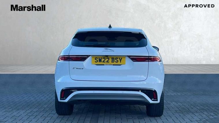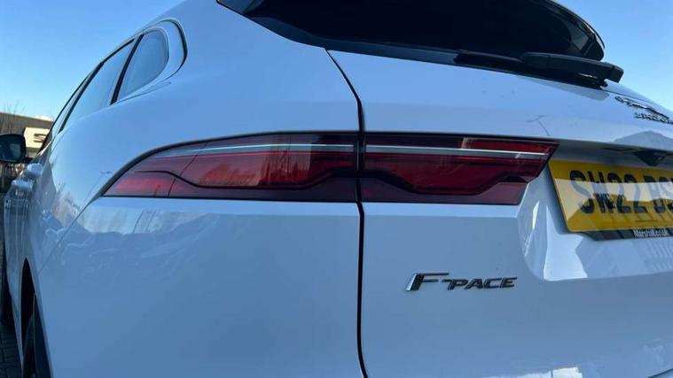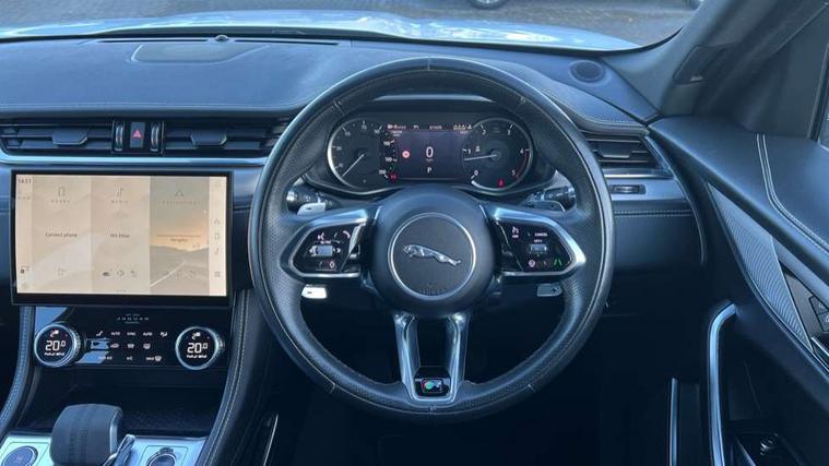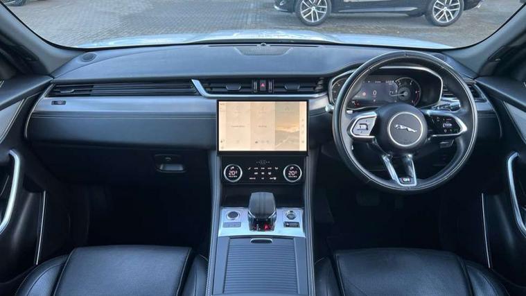 11.4" touchscreen, Android Auto, Apple car play, Bluetooth connectivity, Driver alert system, Driver condition monitor, eCall emergency call system, Eco driving style assistant, Electric power assisted steering, InControl remote, Jaguar Toggle shift selector, Lane departure warning system, Lane keep assist, Outside temperature gauge, Personalisation profile management, Pivi pro connected navigation system with app interface and media storage, Pro services and wifi hotspot, Push button starter, Service interval indicator, Speed proportional steering, Start up sequence with movement in dials and lighting, Traffic sign recognition with adaptive speed limiter, Trip computer, Voice control system, 8 speed automatic transmission, All terrain progress control, All Wheel Drive (AWD), Open differential with torque vectoring by braking, AM/FM radio, Bluetooth streaming, DAB Radio (Digital Audio Broadcasting), Dynamic volume control, InControl apps, InControl protect, iPod integration, 3 flash lane change indicators, Approach Illumination, Auto dimming rear view mirror, Automatic headlights, Body colour door mirrors, Electric windows with one touch open/close and anti trap, F-Pace and R Dynamic badge, Green tinted glass, Heated front windscreen + heated washer jets, Heated rear window with timer, Jaguar script and leaper, LED High level third brake light, LED tail lights, Non acoustic front windscreen, R Dynamic badge on side door, Rain sensor windscreen wipers, Rear fog lights, Rear metal tread plates, Rear side wing doors, Rear wiper, Trailer stability assist, Variable front intermittent wipers, 12V power point front, 3 rear headrests, 3 seat bench in 2nd row, Air distribution speed, Centre armrest console, Centre console with side storage, Deletion loadspace storage rails, Door sill tread plates, Fold flat front seats, Front centre armrest with storage compartment, Front door storage space, Glovebox finisher with jaguar script, Heated steering wheel, Hooks in loadspace, Illuminated glovebox, Interior front door handles with separate locking switches, ISOFIX on outer rear seats, Jaguar sense, Luggage tie downs in loadspace, Mist sensing, Multifunction steering wheel, Overhead lighting console, Overhead stowage for sunglasses, Passive front head restraints, Premium carpet mats, R-Dynamic branded leather steering wheel, Rear air vents, Rear armrest with twin cupholders, Rear centre headrest, Rear door storage space, Reversible boot floor, Satin chrome gearshift paddles, Shopping bag hook, Single front passenger seat, Sunvisors with illuminated vanity mirrors, Twin front cupholders with cover, Online Pack with data plan - F-Pace, 355mm front brakes and 325mm rear brakes, 3x3 point rear seatbelts, ABS, All surface progress control (ASPC), Brake pad warning light, DSC - Dynamic Stability Control, Electric parking brake (EPB), Emergency brake assist, Front airbags with passenger seat occupant detector, Front and rear seatbelt reminder, Front side airbags, Full length side window curtain airbag, Hill launch assist, Power operated child locks, Torque vectoring brake, Traction control, Tyre pressure monitoring system, Immobiliser, Keyless Start, Locking wheel nuts, Perimeter alarm, Remote central locking, Valet mode,