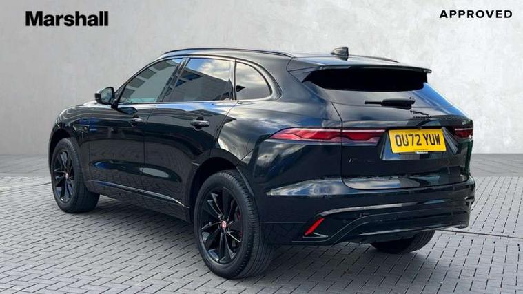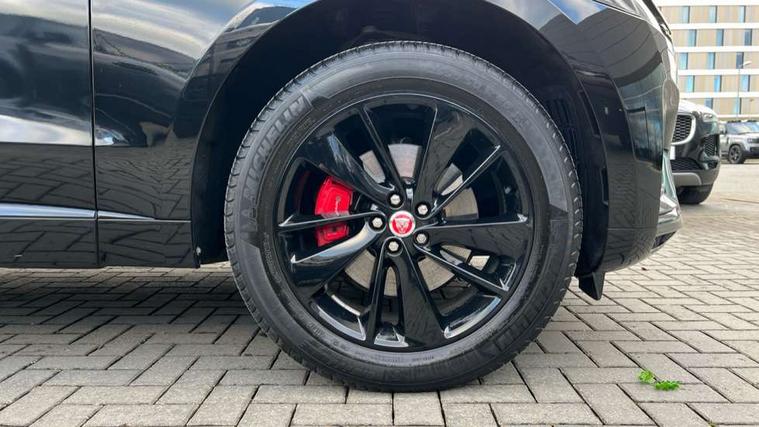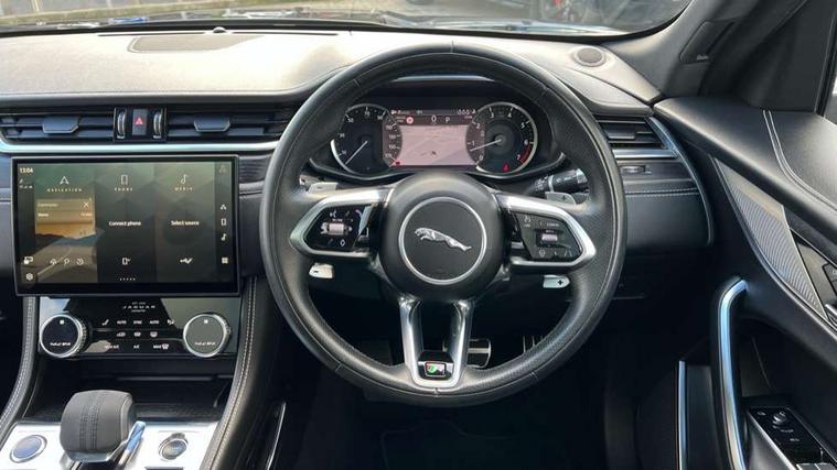11.4" touchscreen, Android Auto, Apple car play, Bluetooth connectivity, Driver alert system, Driver condition monitor, eCall emergency call system, Eco driving style assistant, Electric power assisted steering, InControl remote, Jaguar Toggle shift selector, Lane departure warning system, Lane keep assist, Outside temperature gauge, Personalisation profile management, Pivi pro connected navigation system with app interface and media storage, Pro services and wifi hotspot, Push button starter, Service interval indicator, Speed proportional steering, Start up sequence with movement in dials and lighting, Traffic sign recognition with adaptive speed limiter, Trip computer, Voice control system, 8 speed automatic transmission, All terrain progress control, All Wheel Drive (AWD), Open differential with torque vectoring by braking, AM/FM radio, Bluetooth streaming, DAB Radio (Digital Audio Broadcasting), Dynamic volume control, InControl apps, InControl protect, iPod integration, 3 flash lane change indicators, Animated directional indicators, Approach Illumination, Auto dimming rear view mirror, Automatic headlights, Electric windows with one touch open/close and anti trap, F-Pace and R Dynamic badge, Gloss black door mirrors, Gloss black roof rails, Green tinted glass, Heated front windscreen + heated washer jets, Heated rear window with timer, Jaguar script and leaper, LED High level third brake light, LED tail lights, Non acoustic front windscreen, Privacy glass, R Dynamic badge on side door, Rain sensor windscreen wipers, Rear fog lights, Rear metal tread plates, Rear side wing doors, Rear wiper, Trailer stability assist, Variable front intermittent wipers, 12V power point front, 3 rear headrests, 3 seat bench in 2nd row, Air distribution speed, Bright metal foot pedals, Centre armrest console, Centre console with side storage, Deletion loadspace storage rails, Door sill tread plates, Fold flat front seats, Front centre armrest with storage compartment, Front door storage space, Glovebox finisher with jaguar script, Heated steering wheel, Hooks in loadspace, Illuminated glovebox, Interior front door handles with separate locking switches, ISOFIX on outer rear seats, Jaguar sense, Luggage tie downs in loadspace, Mist sensing, Multifunction steering wheel, Overhead lighting console, Overhead stowage for sunglasses, Passive front head restraints, Premium cabin lighting, Premium carpet mats, R-Dynamic branded leather steering wheel, Rear air vents, Rear armrest with twin cupholders, Rear centre headrest, Rear door storage space, Reversible boot floor, Satin chrome gearshift paddles, Shopping bag hook, Single front passenger seat, Sunvisors with illuminated vanity mirrors, Twin front cupholders with cover, Black Exterior pack - F Pace R-Dynamic/Sport, Exterior pack - F Pace R-Dynamic, Online Pack with data plan - F-Pace, 355mm front brakes and 325mm rear brakes, 3x3 point rear seatbelts, ABS, All surface progress control (ASPC), Brake pad warning light, DSC - Dynamic Stability Control, Electric parking brake (EPB), Emergency brake assist, Front airbags with passenger seat occupant detector, Front and rear seatbelt reminder, Front side airbags, Full length side window curtain airbag, Hill launch assist, Power operated child locks, Torque vectoring brake, Traction control, Tyre pressure monitoring system, Immobiliser, Keyless Start, Locking wheel nuts, Perimeter alarm, Remote central locking, Valet mode,