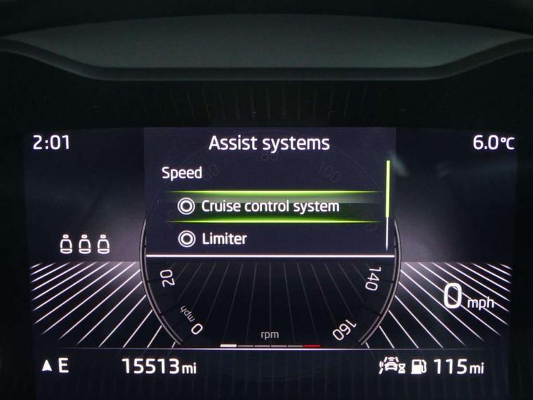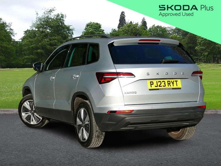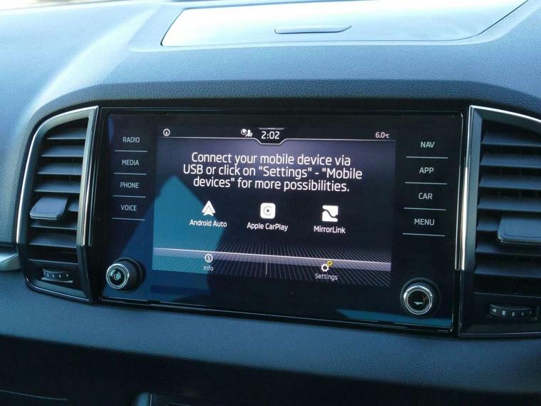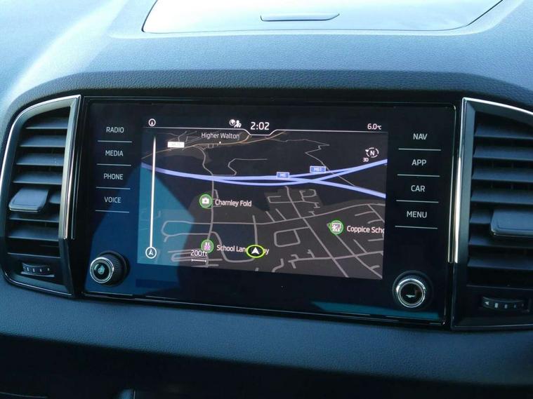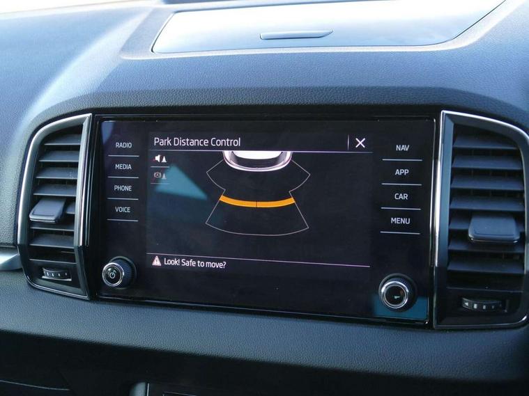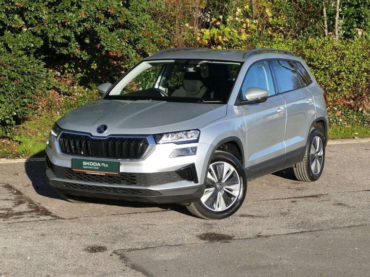 8" Digital display, Amundsen satellite navigation with 8" touchscreen display with maps Europe, WLAN and web radio, Care connect, Driver fatigue sensor, Electro-mechanical PAS, Emergency services call system, Outside temperature gauge, Service interval indicator, SmartLink wireless for Apple and wired for Android, Start/stop system with regenerative braking, USB C Port x 2 in front centre console, 8 Speakers, DAB radio with Bluetooth, USB connection, Acoustic glass, Aero front windscreen wipers with intermittent function, Auto dimming rear view mirror with light and rain sensors, Black electric window control buttons, Body colour door mirrors and handles, Dynamic headlight range control with cornering light function, Electric front and rear windows with child proof lock, Electrically adjustable heated folding and auto dimming door mirrors, Front fog lights, Heated rear windscreen, LED daytime running lights, LED Headlights, LED rear lights with high functionality welcome effect and dynamic indicators, Light assistant (coming/leaving home/tunnel light), Plastic scuff plates, Privacy glass, Rear side wing doors, Rear window wiper with washer system and intermittent control, Safety reflectors on front doors, Third brake light, 1.5 litre bottle holders in driver and front passenger door panels, 12V socket in boot, 12v socket in front centre armrest with storage compartment and rear air vents, 2 x Tablet holder, 3 rear height adjustable headrests, 3 seat bench in 2nd row, 4 foldable roof handles with rear coat hooks, Black floor carpet, Chrome inner door handles, Double sided boot floor, Driver/front passenger reading lights, Foldable hooks in the boot, Folding tables on the front seat backrests, Front head restraints, Height adjustable driver and passenger seat, Height adjustable front three point seats belts with tensioners, Height/reach adjust steering wheel, Ice scraper, Illuminated glovebox, Illuminated luggage compartment, Isofix child seat preparation for front passenger seat, Isofix child seat preparation outer rear, Manual lumbar support for front seats, Pearl grey interior ceiling, Pen holder, Pollen filter, Rear boot cover, Rear reading lights, Rubbish bin door, Safety vest holder, Single front passenger seat, Storage box in upper central dashboard closed, Sunvisors with illuminated vanity mirrors, Textile floor mats, Ticket holder, Umbrella under passenger seat, Boot pack - Karoq, Automatic door unlocking in case of crash, Automatic fuel cut off in case of crash, Child locks on rear doors, Driver airbag, Electronic parking brake with auto hold function, Emergency rear braking signal, ESC including ABS, MSR, ASR, EDS, HBA, DSR, RBS, MKB and traction control, Front side airbags, Hill hold control, Knee airbags, Passenger airbag with switch-off function, Pedestrian monitor, Seatbelt reminder signalisation and pretensioner for all seats, Three point seatbelts rear, Two tone horn, Tyre pressure display, Tyre pressure monitor, Alarm with interior monitoring, back up horn and tilt sensor with safe function, Electronic engine immobiliser, Remote central locking with 2 remote folding keys, Black centre console, Chrome framed air vents, Satin black dashboard, Satin black door trim, Anti-theft wheel bolts protection, Storage on wheel cover, Tool kit,