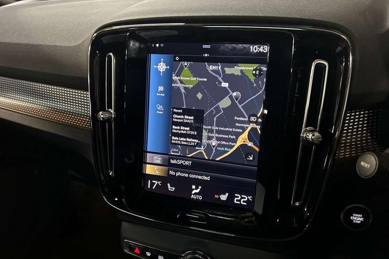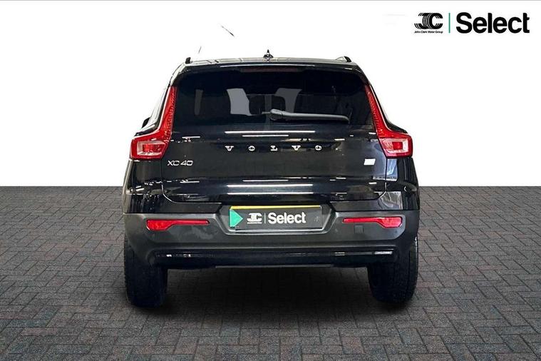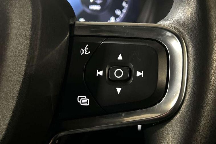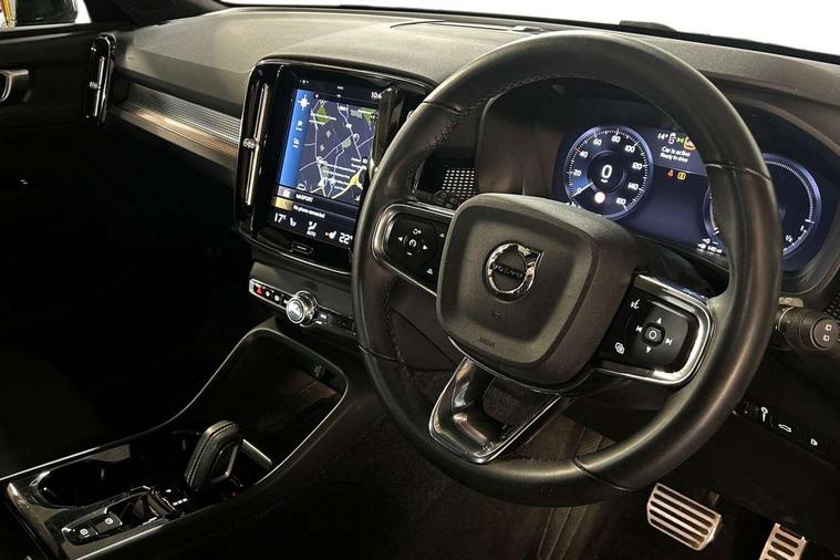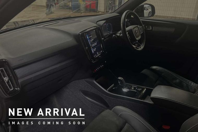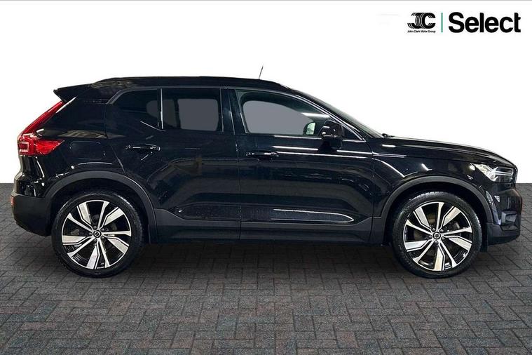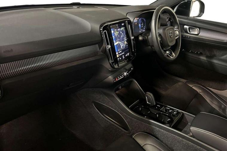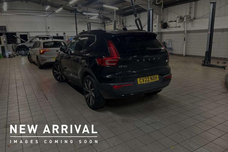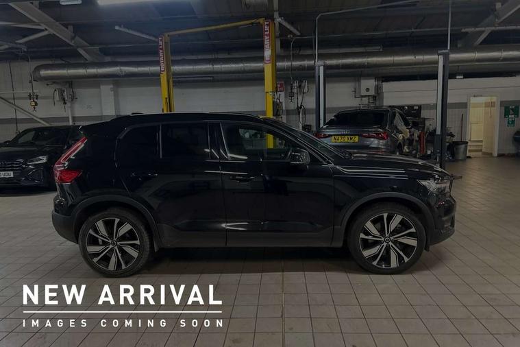 12.3" Active TFT crystal driver's instrument display, 9" centre console portrait touch screen, Adjustable steering wheel force, Bluetooth hands free telephone kit, Drive mode selector, E-call, Lane keep assist with driver alert control, Oncoming Lane Mitigation, Power operated tailgate, Sensus navigation with European mapping and traffic information, Speed limiter, Speed sensitive steering, Voice activated control for key functions, Volvo on call, 7m 10amp charge cable with 3 pin plug and 7m 1 phase 16amp type 2/mode 3 charge cable, Electric front axle drive, Recharging port located in nearside front wing, Sports chassis, DAB Digital radio, Low speed exterior sound speaker, Steering wheel mounted remote controls, Adaptive brake lights with high level LED brake lights, Auto dimming interior mirror, Automatic headlamp levelling, Automatic LED Headlights + Active high beam incorporating daytime running lights, Dark tinted windows for rear door side windows and cargo compartment, Electric adjustable/heated/auto folding door mirrors, Front aluminium tread plates, Front and rear electric windows, Heated front windscreen, High gloss black front and rear skid plate, High gloss black lower front bumper, High gloss black mesh front grille with high gloss black surround, High gloss black sensus surround deco, High gloss black window trim, Home safe and approach lighting, Integrated roof rails in high gloss black, Rain sensor with automatic windscreen wiper activation, Rear side wing doors, Rear wiper, Roof antenna, Roof spoiler, Visible VIN plate, 12V socket in front tunnel console and luggage compartment, 2 zone electronic climate control and rear air vent, 3 seat bench in 2nd row, 60/40 versatile split folding rear seat, A-pillar parking ticket holder, Bright metal luggage threshold, Centre console cupholders and storage, Charcoal headlining, Front footwell illumination, Front headrests, Front reading light and theatre lighting, Front seat cushion extensions, Glovebox bag hook, Heated front seats, Height/reach adjustable steering column, Height/tilt adjustable driver's seat, High gloss centre tunnel deco, Illuminated glovebox, Illuminated luggage compartment, Illuminated vanity mirrors, Isofix attachments on outer rear seats, Leather gearknob, Load protection net, Multi directional lumbar support, Power driver seat with memory + exterior mirrors memory, Rear armrest / integral cup holders / storage tray, Rear coat hook, Single front passenger seat, Sports floor mats, Sports pedals, Sports tailored steering wheel, Underfloor cargo storage, Vanity mirror with ticket holder, Lighting pack - XC40, 3x3 point rear seatbelts, City safety includes pedestrian, cyclist and large animal detection and front collision warning with full auto brake, Drivers knee airbag, Dual stage driver/passenger airbags, Electronic parking brake with auto hold, First aid kit, Front and outer rear seatbelt reminder and pretensioners, Front seats SIPS airbags, Hill descent control, Hill start assist, Inflatable curtain, Passenger airbag cut-off device, Road sign information display, Run off Road Mitigation, Run off Road Protection, SIPS (Side Impact Protection System), Slippery road and hazard light alert, Stability and Traction Control with Spin control, Engine Drag Control and Corner Traction Control, Tyre pressure monitoring system, Vehicle deceleration control with Anti-lock Brake System, Electronic Brake Distribution and Emergency Brake Assist, Warning triangle, WHIPS whiplash protection system - front, Anti-theft alarm including immobiliser/volume sensor + level sensor, Care key with user defined top speed, Key integrated remote control central locking + fuel flap with deadlocking system and auto open/close power windows, Locking wheel nuts, Private locking for tailgate, Cutting edge aluminium inlay, Lower dashboard, tunnel console and door panel in charcoal, 20'' 5 double spoke diamond cut/high gloss black alloy wheels,
