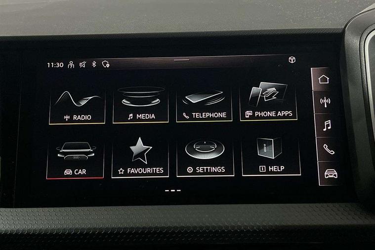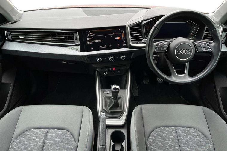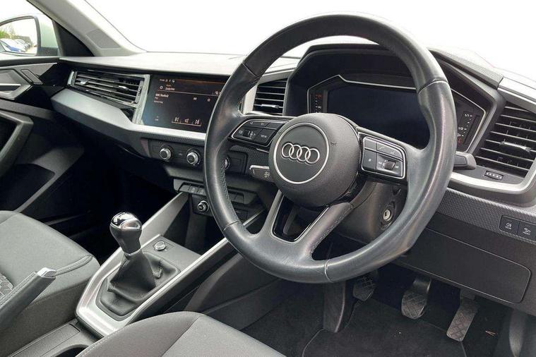 10.25" Digital instrument cluster display classis style instrument dials + speed, odometer, time, outside temperature, telephone menu + fuel level warning, Audi smartphone interface with connect compatible smartphone via USB directly MMI display + Nav, music, third party apps controlled via MMI controller, Automatic start/stop system, Bluetooth interface, Cruise control, Driver's information system, Electromechanical power steering, Emergency e-call, Lane departure warning system, Rear parking sensor, Service interval indicator, Speed limiter, Voice control system, Washer fluid level indicator, Dynamic suspension, 2 x USB type C connection points, 6 passive loudspeakers, DAB Digital radio, MMI radio plus with 10.1" colour MMI display screen and MMI touch, Auto dimming rear view mirror, Body coloured bumpers, Body coloured door mirrors, Electric front and rear windows, Electrically adjustable, heated, folding door mirrors with integrated LED side indicator, Front side air inlets in grained matt black and C frame in anthracite black, Heat insulating glass windscreen and side windows, Heated rear windscreen, High level LED brake light, LED headlights with LED rear lights + dynamic rear indicators + headlight adjustment and high beam, turning light + LED daytime running lights, Radiator grille and rear diffuser in matt anthracite black, Radiator protective grille frame in matt aluminium silver, Rain and light sensors, Rear fog lights, Rear side wing doors, Rear wiper, Side front spoiler lips in grained matt black, 12V socket in centre console with two cup holders, 3 rear seats with headrests, 3 seat bench in 2nd row, 3 spoke leather multifunction plus steering wheel, 40:60 Split folding rear seat or folded fully, Black front and rear floor mats, Door sill trims with aluminium inlay, Driver and passenger seat with manual height adjust with forward and backwards adjustment, Front head restraints, Front passenger seat, Grey cloth headlining, Height and reach adjustable steering wheel, ISOFIX child seat mounting for front passenger and outer rear seats including top tether attachment point of outer rear seats, Leather gear knob with aluminium trim, Leather handbrake grip, Luggage compartment light with front and rear reading lights, Manual air conditioning, Manually adjustable lumbar support in front seats, Novum cloth upholstery with front sport seats, Luggage compartment pack - A1, 3x3 point rear seatbelts, Audi pre-sense front with pedestrain and cyclist recognition, Brake assist function, Driver and front passenger airbag with front side and head airbags, Electronic Stability Control including ABS, EBD, ASR and EDL, Front passenger airbag deactivation switch, Hill hold assist, Manual rear child locks, Seatbelt height adjustment for front seats, Seatbelt monitoring, Tyre pressure warning light, Warning triangle and first aid kit, Anti theft alarm, Anti theft wheel bolts and loose wheel warning, Immobiliser, Remote central locking with 2 foldaway keys, Aluminium trim for control switches, air vents and digital instrument cluster, Black dashboard, Silver grey accent areas including air vents, door handle recesses and centre console in diamond paint finish, Slate grey inlays polygon structure in fine paint finish,