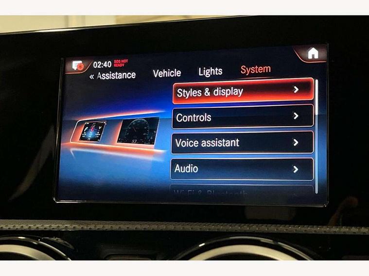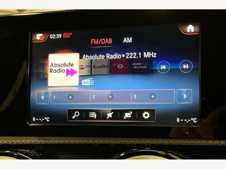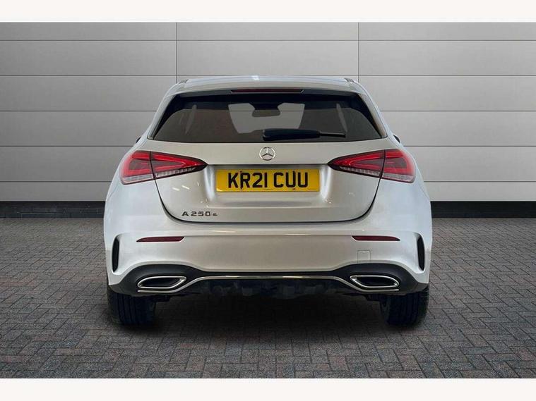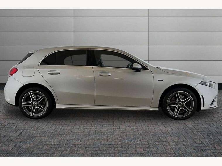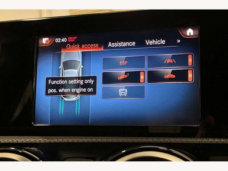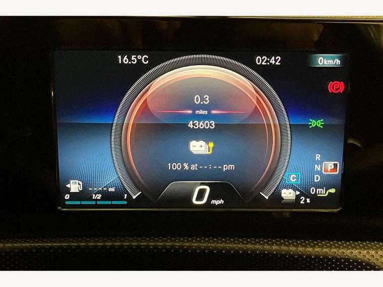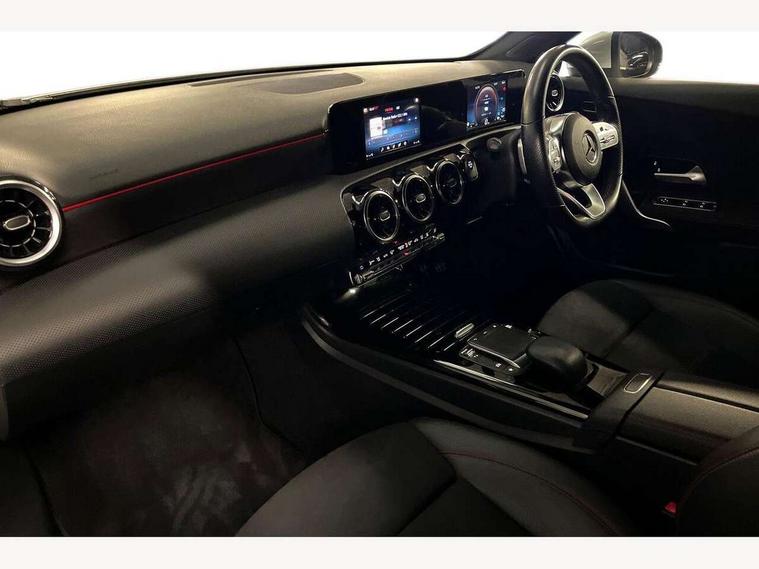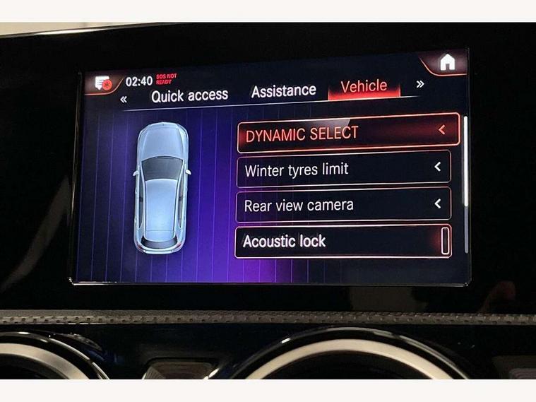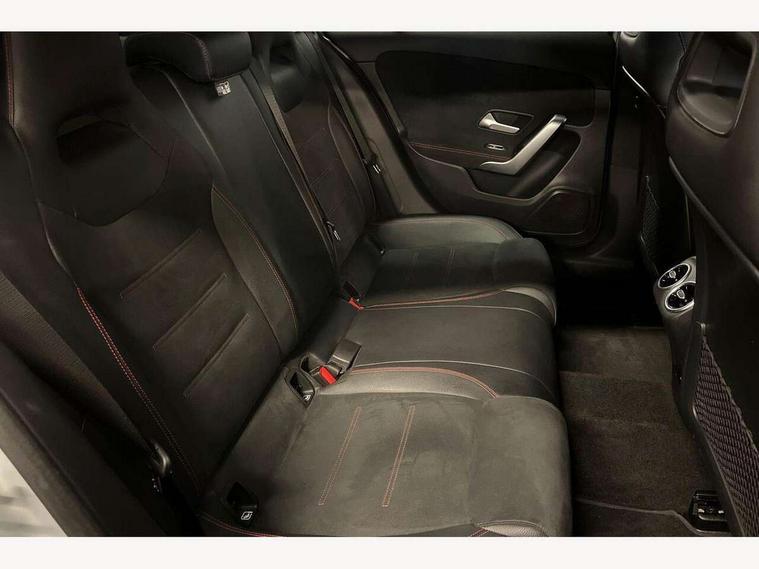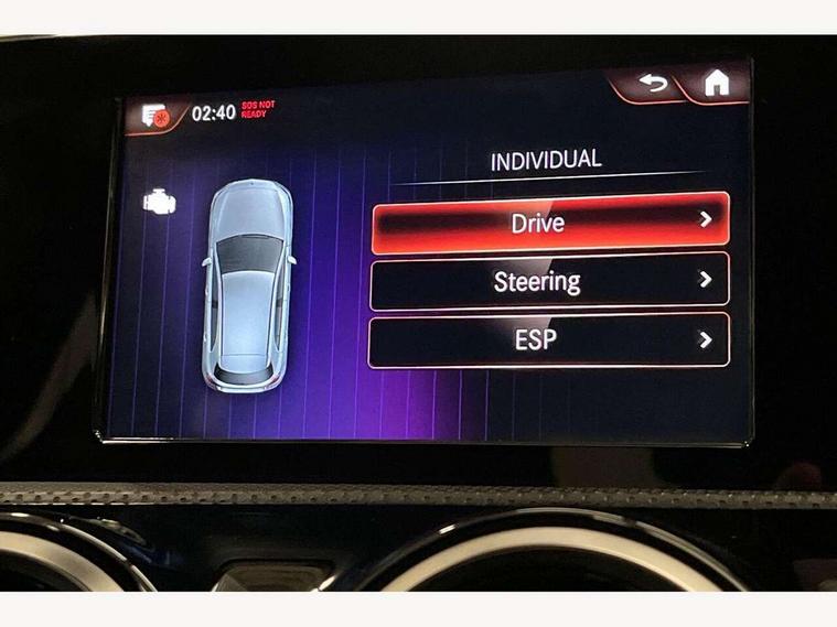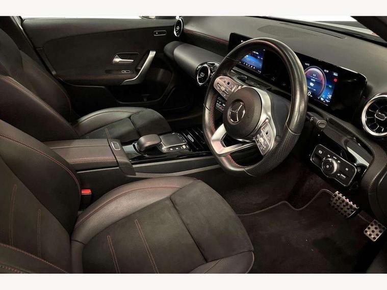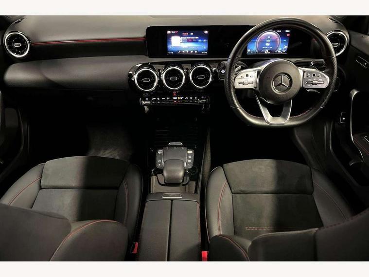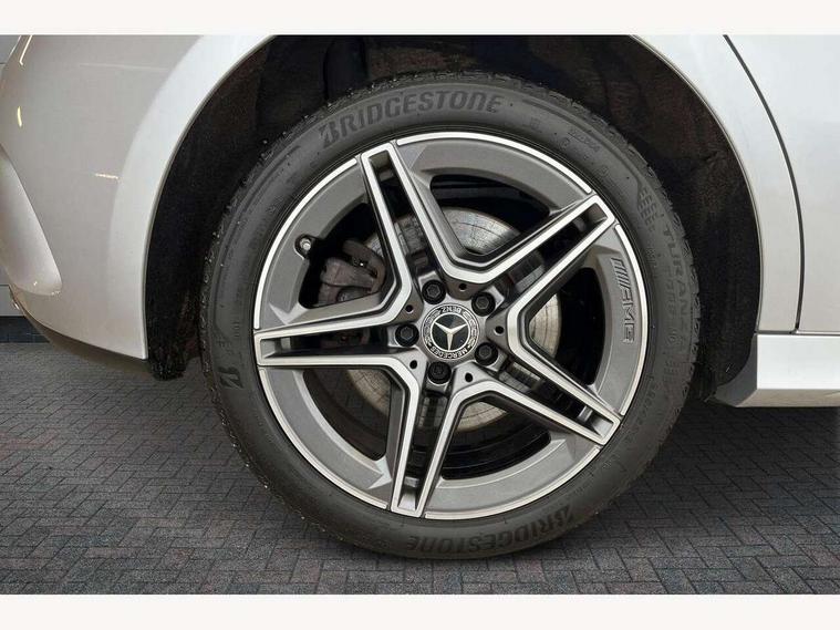 180 degree rear view camera with parking guidelines, 7" colour screen in instrument panel, 7" touchscreen media display, Acoustic ambient protection, Attention assist, Brake pad wear indicator warning light, Car wash mode, Cruise control + speed limiter, Direct steering, Dual bluetooth interfaces, DYNAMIC SELECT with a choice of driving modes (ECO, Comfort, Sport and Individual), ECO start/stop function, Fluid level warning indicator for fuel, oil, coolant and washer fluid, Hard-disk navigation, Hey Mercedes Voice activation, Lamp failure indicator, Mercedes me connect including emergency call system, accident recovery, breakdown and maintenance management, Mercedes me remote services, Outside temperature gauge, Owners manual in English, Pre-installation for private car sharing, Preinstallation for Mercedes Benz link, Remote and charging services plus, Service indicator (ASSYST), Speed sensitive power steering, Trip computer, 7.4 kW monophase on board charger, Comfort suspension, Mode 3 charging cable 11 kW, Rear axle multi-link, 2 USB ports (type C) in rear stowage compartment and one in front of center console, 6 speakers, DAB Digital radio, MBUX multimedia system with DAB digital radio and touchpad including satellite navigation, Mercedes-Benz sound system - 100W, 4 Electric Front and Rear windows, Adaptive brake lights, AMG bodystyling - Front apron with splitter in chrome, rear apron with chrome trim and chrome visible trim elements in tailpipe, Black weather strip, Body colour bumpers, Body colour door handles, Body colour side skirt, Body coloured door mirrors, Chrome beltline trim, Diamond radiator grille with chrome pins and silver louvre + chrome insert, Electric adjustable and heated door mirrors with integrated LED side indicators, EQ badging, Exhaust system - Twin visible tailpipes in polished stainless steel, Headlamp assist automatic headlamp activation, Heated glass rear windscreen + timer control, LED high performance headlamps with integrated LED daytime running lights, LED tail lamp, LED third brake light, Privacy glass, Radio aerial, Rain sensing windscreen wipers with two sensitivity settings, Rear fog lights, Rear wiper, Window line trim strip in chrome, 3 pin charging cable plug, 3 Spoke flat bottom leather multi function steering wheel with perforated leather in grip area, 40:20:40 split folding rear seats, Artico man-made leather/Microfibre Dinamica upholstery with red contrast stitching, Auto Mercedes-Benz child seat recognition sensor, Black air vents with surround in silver chrome, Black roof lining, Brushed stainless steel sports pedals with rubber studs, Charging socket, Controller on centre console with chrome surround, Floor mats with stitched edging and AMG lettering, Front centre armrest with storage compartment, Front door sills with Mercedes Benz lettering, Front seat backs luggage nets, Front seat cushion length adjustment, Galvanished gear shift paddles on steering wheel, Heated front seats, Height/reach adjustable steering column, Interior mirror with reading lamps in black and frameless, Manual height adjustable front seats, Pre-entry climate control, Rear head restraints, Seat occupancy sensor for front passenger seat, Sports seats with integrated headrests, Stowage compartment in centre console with retractable cover, Sunvisors with illuminated vanity mirrors, Touchpad on center console, Twin front cupholders, Two zone thermotronic luxury automatic climate control, Light and sight pack - A Class, Seat comfort pack - A Class, 3 rear 3 point seatbelts, ABS with Brake Assist, Active bonnet, Active brake assist includes forward collision warning system with autonomous braking, Adaptive brake assist with hold function and hill start assist, Black seatbelts, Childproof locks manually operated for rear doors and electrically operated for rear power windows, Crash responsive emergency lighting, Driver and passenger head and side airbags, Drivers knee airbag, Dual stage driver/passenger airbags, Electronic parking brake, ESP curve dynamic assist, ESP with ASR, Front and rear seatbelt reminder, Front brake callipers with Mercedes Benz lettering, ISOFIX and top tether child seat fixing points in two outer rear seats, Perforated front brake discs, Radar based regeneration, Tyre pressure monitoring system, Warning triangle and first aid kit, Window airbags, Alarm system/interior protection/immobiliser, Keyless Go, Remote central locking and crash sensor with emergency opening function, Urban guard vehicle protection system with immobiliser and interior protection, Dinamica microfibre trim in black, 18" AMG 5 twin spoke light alloy wheels in titanium grey with highsheen finish, Summer tyres, Tirefit sealant kit,