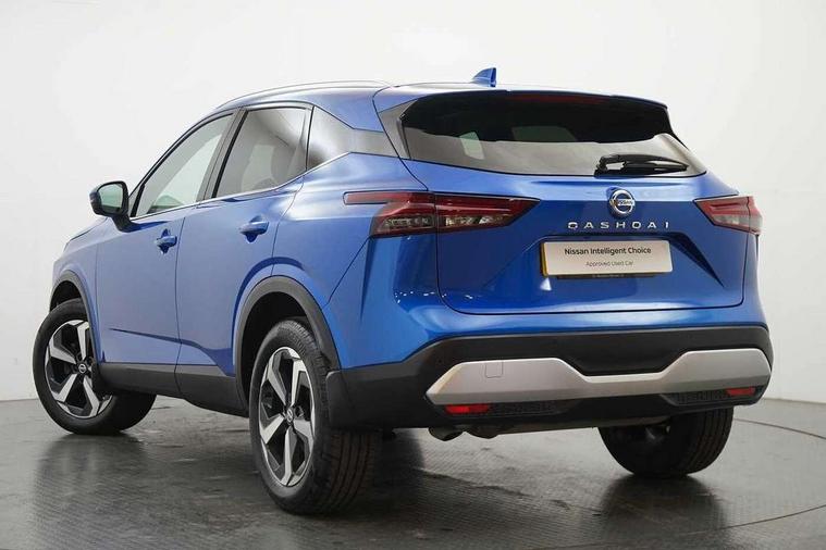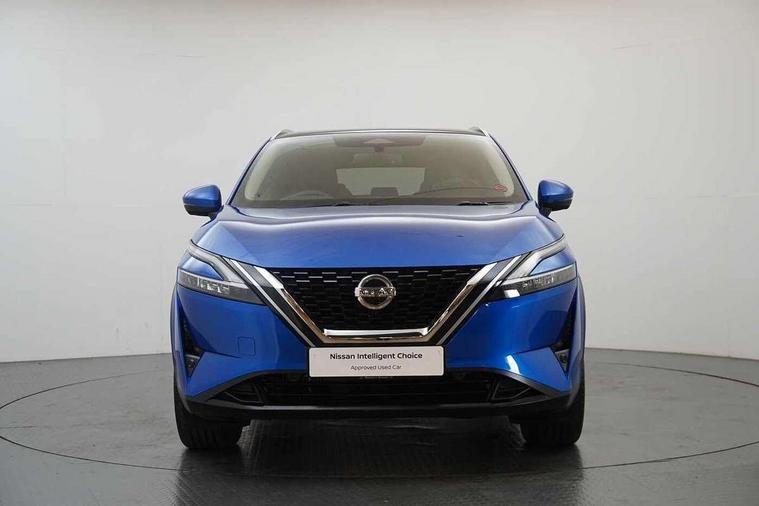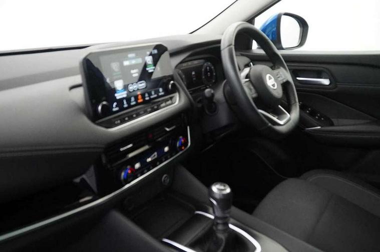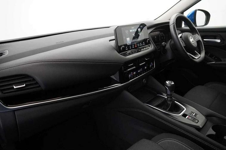 Blind spot warning, Drive modes (sport, normal, eco), Electric speed sensitive power steering, Emergency and breakdown call, Front and rear parking sensors, Full Digital 12.3" TFT Digital Combimeter, Idle stop/start system, Intelligent Cruise control (ICC), Intelligent driver alert system, Intelligent forward collision warning, Intelligent lane intervention, Lane departure prevention, Lane departure warning system, Moving object detection, Push button starter, Rear cross traffic alert, Traffic sign recognition with legal speed adjustment, Trip computer, 6 speakers, AM/FM audio system with DAB, Bluetooth audio streaming, Front USB connections (Type-A and Type-C), Rear USB charging only ports (Type-A and Type-C), 3rd brake light, Auto dimming rear view mirror, Auto rear wiper when reversing, Body colour mirror caps, Body coloured door handles, Bodyside mouldings, Chrome side window finisher, Electric auto folding door mirrors, Electrically adjustable and heated door mirrors with LED turn indicator, Fixed panoramic glass roof with electric sunshade, Follow me home headlights, High beam assist, Intelligent auto headlights, LED daytime running lights, LED rear lights, One touch front and rear electric windows with remote opening and closing, Partially body coloured bumpers, Privacy glass, Rain sensor, Rear roof spoiler, Rear side wing doors, Rear styling plate, Roof rails, Shark fin antenna, Splash free rain sensing wipers, Super UV and infrared cut glass, Three blink turn signal, 12v power socket in dashboard and luggage, 2 way electrical driver lumbar adjustment, 2x Rear coat hooks, 3 bench rear seats in 2nd row, 3 rear headrests, 4 grab handles, 6 Luggage hooks - 4 on floor, 2 on side, 60/40 split folding rear seat bench, Ambient lighting around centre console, Centre console storage tray, Chrome interior door handles, Cloth monoform upholstery, Driver and front passenger sunvisors with illuminated vanity mirrors, Driver seat back pocket, Dual zone automatic climate control with pollen filter, Front centre console and armrest, Front cupholder, Front door with bottle holders, Glovebox with light, Hard trunk cover, Height adjustable driver's seat, Height adjustable front headrests, Leather shift knob, Leather steering wheel, Luggage board system, Luggage space lighting, Manually adjustable passenger (slide recline + lifter), Multifunction steering wheel, Passenger seat back pocket, Rear armrest with 2 cupholders, Rear door bottle holders, Single front passenger seat, Soft PVC kneepad, Steering wheel switches, Tilt/telescopic adjustable steering wheel, Two rear isofix child seat anchorage points with top tether, Welcome light and console tray ambient lighting, Connectivity Pack - Qashqai, Tech Pack (Drive Assist + HUD), 3x3 point rear seatbelt pretensioners + load limiters, ABS, ESP, EBD and brake assist, Active brake limited slip, Auto hold function, Child locks on rear doors, Curtain and front side, far side airbags, Driver and passenger airbags, Driver, passenger and 2nd row rear seat belt reminder, Electronic parking brake, Front seatbelt pretensioners + load limiters, Height adjustable front seatbelts, Hill start assist, Intelligent blind spot intervention, Intelligent front emergency braking with pedestrian, cyclist recognition and junction assist, Intelligent rear automatic braking, Tyre pressure monitoring system, Vehicle dynamic control, Capless fuel filler, Engine immobiliser, Nissan i-key, Remote central door locking with deadlocking, Thatcham Cat.1 alarm, 18" Diamond cut alloy wheels,