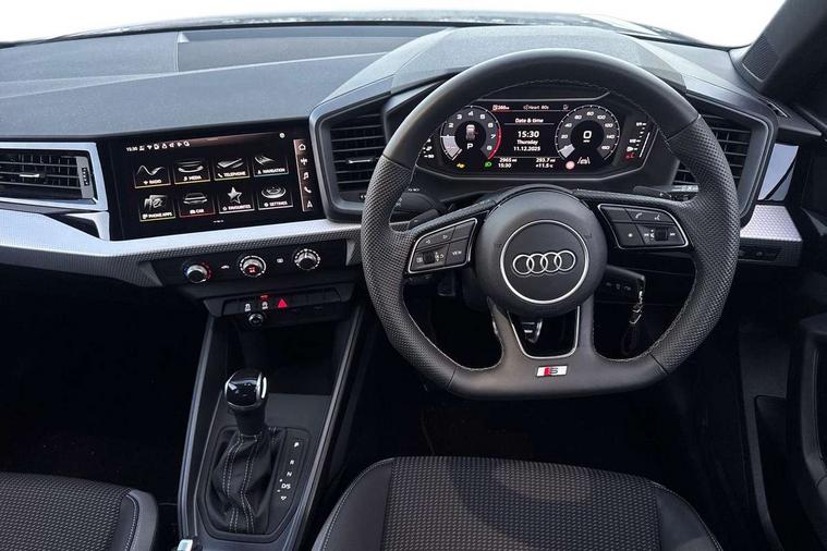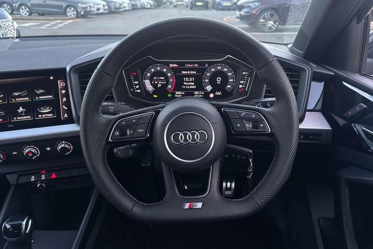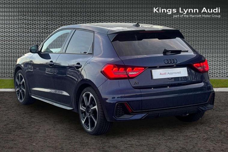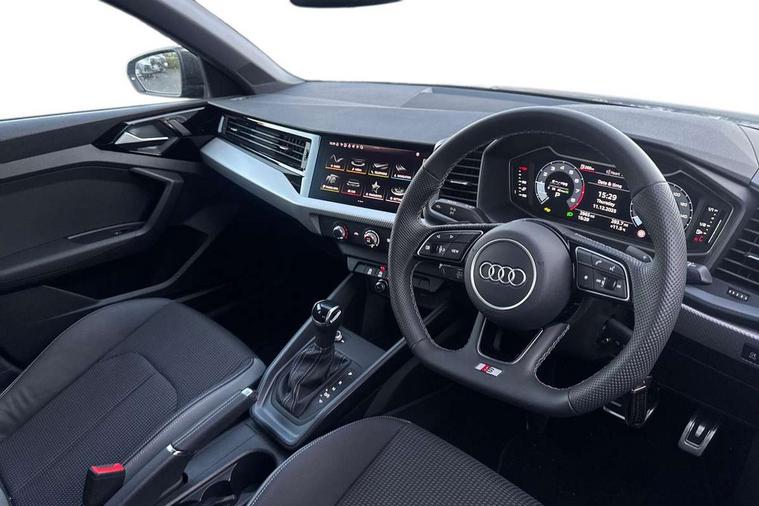 10.25" Digital instrument cluster display classis style instrument dials + speed, odometer, time, outside temperature, telephone menu + fuel level warning, Audi connect safety emergency and service including E-call, Audi smartphone interface with connect compatible smartphone via USB directly MMI display + Nav, music, third party apps controlled via MMI controller, Automatic start/stop system, Bluetooth interface, Cruise control, Driver's information system, Electromechanical power steering, Lane departure warning system, Rear parking sensor, Service interval indicator, Speed limiter, Voice control system, Washer fluid level indicator, Sports suspension, 1 x SDXC card reader, 1 x USB type C and 1 USB type A charging points, DAB Digital radio, MMI radio plus with 8.8" colour MMI display screen and MMI touch, Auto dimming rear view mirror, Black door mirrors, Black side skirts, Door sills with aluminium inlays and S Line logo, Electric front and rear windows, Electrically adjustable, heated, folding door mirrors with integrated LED side indicator, Front side air inlets in grained matt black and C frame in titanium black, Heat insulating glass windscreen and side windows, Heated rear windscreen, LED headlights with LED rear lights + dynamic rear indicators + headlight adjustment and high beam, turning light + LED daytime running lights, Radiator protective grille frame in matt aluminium silver, Rain and light sensors, Rear fog lights, Rear wiper, Side front spoiler lips in grained matt black, 12V socket in centre console with two cup holders, 3 rear seats with headrests, 3 spoke flat bottomed multi-function plus leather steering wheel with S badging, grips in preforated leather, contrast stitching and paddle shift, 40:60 Split folding rear seat or folded fully, Black cloth headlining, Driver and passenger seat with manual height adjust with forward and backwards adjustment, Front and rear black floor mats with contrast stitching in fine silver, Front head restraints, Height and reach adjustable steering wheel, ISOFIX child seat mounting for front passenger and outer rear seats including top tether attachment point of outer rear seats, Leather gear knob with aluminium trim, Luggage compartment light with front and rear reading lights, Manually adjustable lumbar support in front seats, Stainless steel pedals, Black styling pack - A1 Sportback Black Edition, LED interior lighting pack - A1, Luggage compartment pack - A1, 3x3 point rear seatbelts, Brake assist function, Driver and front passenger airbag with front side and head airbags, Electronic Stability Control including ABS, EBD, ASR and EDL, Front and rear seatbelt reminder, Front passenger airbag deactivation switch, Hill hold assist, Seatbelt height adjustment for front seats, Seatbelt monitoring, Tyre pressure warning light, Warning triangle and first aid kit, Anti theft alarm, Anti theft wheel bolts and loose wheel warning, Audi pre-sense front with pedestrain and cyclist recognition, Immobiliser, Remote central locking with 2 foldaway keys, Aluminium trim for control switches, air vents and digital instrument cluster, Silver grey inlays polygon structure in diamond paint finish, Structured grey accent areas including air vents, door handle recesses and centre console in quartz paint finish, 18" 7 spoke rotor design alloy wheels in gloss anthracite black, diamond cut finish,