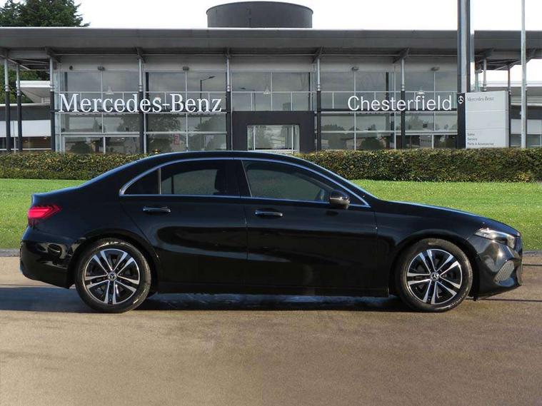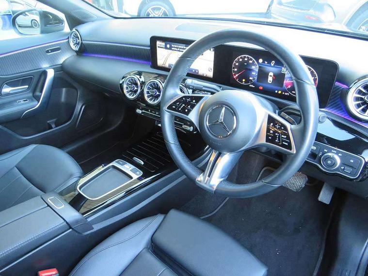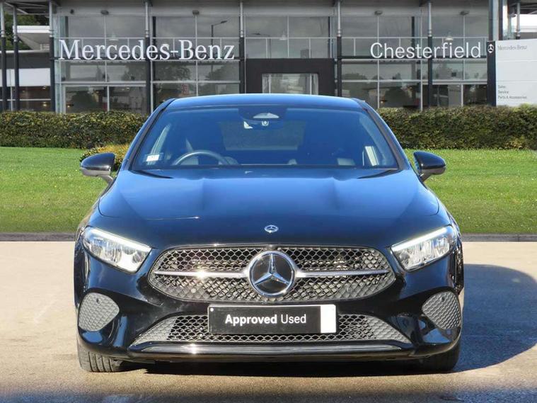 10.25 inch touchscreen central media display, 10.25" Digital instrument cluster display screen, Attention assist, Brake pad wear indicator warning light, Car wash mode, Cruise control + speed limiter, Direct steering, Direction indicators with lane change function, Dual bluetooth interfaces, DYNAMIC SELECT with a choice of driving modes (ECO, Comfort, Sport and Individual), ECO start/stop function, Engine start/stop button, Fingerprint scanner, Fluid level warning indicator for fuel, oil, coolant and washer fluid, Hard-disk navigation, Hey Mercedes Voice activation, Lamp failure indicator, Lane keeping system, Mercedes me connect including emergency call system, accident recovery, breakdown management and maintenance, Mercedes me remote services, Outside temperature gauge, Owners manual in English, Pre-installation of private car share, Preinstallation for Mercedes Benz link, Remote boot closing, Service indicator (ASSYST), Smartphone integration with Apple CarPlay and Android auto, Speed limit assist, Speed sensitive power steering, Trip computer in multifunction display with current consumption indicator, Wireless charging, Lowered comfort suspension, DAB Digital radio, MBUX multimedia system, Mercedes Benz sound system (100 W) with 6 speakers, 4 Electric Front and Rear windows, Adaptive brake lights, Body colour bumpers, Body colour door handles with chrome inserts, Body colour side skirt, Body coloured door mirrors, Chrome beltline strips, Diamond radiator grille with pins in fine star pattern, Electric adjustable and heated door mirrors with integrated LED side indicators, Exhaust system with 2 visible tailpipe trim elements and rear apron, Headlamp assist automatic headlamp activation, Heat insulating dark tinted rear and rear side windows, Heated glass rear windscreen + timer control, LED High Performance headlamps including integral LED daytime running lamps and adaptive highbeam assist, LED tail lamp, Privacy glass, Radio aerial, Rain sensing windscreen wipers with two sensitivity settings, Rear boot, Rear fog lights, Rear side wing doors, Third brake light featuring LED technology, Window line trim strip in chrome, 3 seat bench in 2nd row, 3 Spoke leather multi function steering wheel, 4 way lumbar support, 40:20:40 split folding rear seats, Air conditioning - One zone thermatic automatic climate control with automatically controlled air distribution, Artico man-made leather upholstery, Automatic child seat recognition sensor, Black air vents with surround in silver chrome, Black roof lining, Front centre armrest with stowage, Front comfort seats with adjustable head restraints, Front door sills with Mercedes Benz lettering, Front seat backs luggage nets, Gearshift paddles on steering wheel, Heated front seats, Height/reach adjustable steering column, Interior lighting - 64 colour Ambient lighting, Interior mirror with reading lamps in black and frameless, ISOFIX and top tether child seat fixing points in two outer rear seats, Rear armrest with 2 cupholders, Rear head restraints, Seat occupancy sensor for front passenger seat, Single front passenger seat, Stowage compartment in centre console with retractable cover, Sunvisors with illuminated vanity mirrors, Twin front cupholders, Velour floor mats, Keyless go comfort pack - A Class, Light and sight pack - A Class, Mirror package - A Class, Parking pack - A Class, Seat comfort pack - A Class, USB pack plus - A Class, 3 rear 3 point seatbelts, ABS with Brake Assist, Active bonnet, Active brake assist includes forward collision warning system with autonomous braking, Adaptive brake assist with hold function and hill start assist, Black seatbelts, Bonnet with power domes, Childproof locks manually operated for rear doors and electrically operated for rear power windows, Crash responsive emergency lighting, Driver and passenger head and side airbags, Drivers knee airbag, Dual stage driver/passenger airbags, Electronic parking brake, ESP curve dynamic assist, ESP with ASR, Front and rear seatbelt reminder, Tyre pressure monitoring system, Warning triangle and first aid kit, Window airbags, Alarm system/interior protection/immobiliser, Guard 360 degree vehicle protection, Remote central locking and crash sensor with emergency opening function, Dark carbon fibre interior trim, 17" 5 spoke light alloy wheels, aerodynamically optimised, painted in black with high sheen finish, Summer tyres, Tirefit sealant kit,