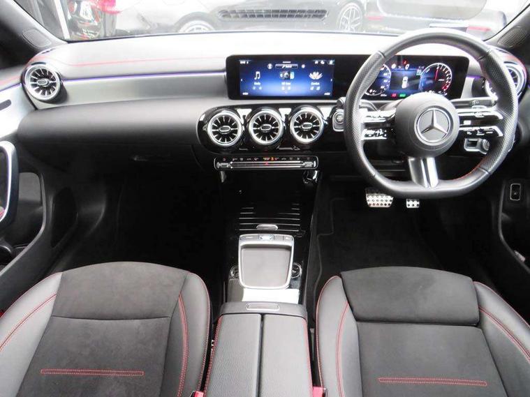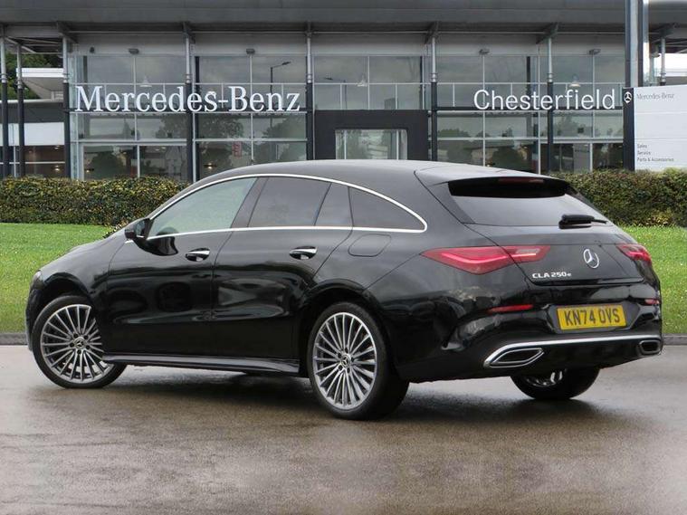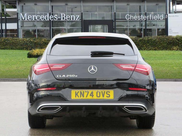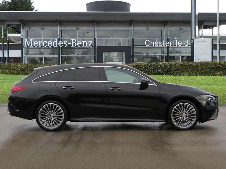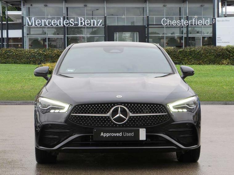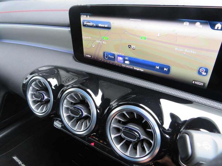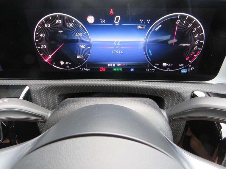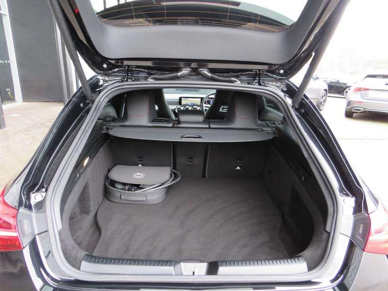 10.25 inch Instrument display with digital cockpit, 10.25 inch touchscreen central media display, Acoustic ambient protection, Active lane keeping assist, Attention assist - Monitors steering behaviour and long journey fatigue, Blind spot assist, Bluetooth connection, Car wash mode, Cruise control with limiter, Direct steer system, DYNAMIC SELECT with a choice of driving modes (ECO, Comfort, Sport and Individual), ECO start/stop function, Fingerprint sensor, Fluid level warning indicator for fuel, oil, coolant and washer fluid, Hard-disk navigation, Hey Mercedes Voice activation, Lamp failure indicator, MBUX augmented reality for navigation, Mercedes me connect including emergency call system, accident recovery, breakdown and maintenance management, Mercedes me remote and charging services plus, Outside temperature gauge, Owners manual in English, Pre-installation of private car share, Radio aerial integrated into front and rear windshields, Service indicator (ASSYST), Smartphone integration with Apple CarPlay and Android auto, Speed limit assist, Tailgate, Trip computer in multifunction display with current consumption indicator, Wireless charging in the front centre console, Charging system - AC charging system rated at 11kW, Charging system - DC charging system rated at 22kW, Comfort suspension, Mode 3 charging cable for wallbox and public charging stations with 5m upto 11kW, Rear axle torsion beam, DAB digital radio tuner, MBUX multimedia system, Mercedes Benz advanced sound system (225 W) with 10 speakers, 1 central speaker, speakers on doors, a tweeter on door, one sub woofer + boost amplifier, Pre installation for Mercedes Benz Link, Adaptive brake lights, AMG body styling with AMG front apron and rear apron and visible exhaust tailpipe in chrome trim elements, Body colour door handles, Electric windows, Electrically adjustable and heated door mirrors with integrated LED indicators, Exhaust system with 2 Visible tailpipe trim elements and rear apron with trim in chrome, Hand free access, Headlamp assist automatic headlamp activation, Heated glass rear windscreen + timer control, High gloss aluminium beltline strips, High level LED third brake light, Interior mirror with black reading lamps and frameless, LED high performance headlamps with integrated LED daytime running lights and adaptive highbeam assist, LED tail lamp, Privacy glass with dark tinting on rear side windows and rear window, Radiator grille with Mercedes-Benz pattern in chrome with central Mercedes star and single louvre with chrome inserts, Rain sensing windscreen wipers with two sensitivity settings, Rear fog lamp, Rear side wing doors, Rear wiper, Variable front intermittent wipers, Window line trim strip in high gloss aluminium, 3 seat bench in 2nd row, 3 twin spoke flattened multifunction steering wheel in nappa leather - horizontal twin spoke in high gloss black, vertical twin spoke in silver chrome, 40:20:40 split folding rear seat backrests, Air conditioning - Two zone thermotronic luxury automatic climate control with display, Air vents with surround in silver chrome, Automatic child seat recognition sensor, Black roof lining, Brushed stainless steel sports pedals with rubber studs, Charging socket, Electrically adjustable front memory seats including 4 way lumbar support, Floor mats with stitched AMG lettering, Fluorescent jacket, Front centre armrest with stowage, Galvanished gear shift paddles in silver chrome, Heated front seats, Illuminated front door sills with Mercedes Benz lettering and changeable cover, Interior lighting - 64 colour Ambient lighting, Luggage net on driver/front passenger seat backrest, Manually height and reach adjustable steering column, Pre-entry climate control, Rear armrest with two integral cup holders for drinks, Rear head restraints, Single front passenger seat, Sport seats with fixed head restraints, Stowage compartment in centre console with retractable cover, Sunvisors with illuminated vanity mirrors, Twin front cupholders, Two outer rear seat isofix and top tether child seat fixing points, Keyless go comfort pack - CLA with easy pack tailgate, Light and sight pack - CLA, Mirror pack - CLA, Parking pack with reversing camera - CLA, Seat comfort pack - CLA, USB package plus - CLA, Active bonnet pedestrain safety measure which detects an impact and raises bonnet by 65mm, Active brake assist includes forward collision warning system with autonomous braking, Adaptive brake assist with hold function and hill start assist, Anti lock braking system (ABS) with brake assist, Black seat belts, Bonnet with power domes, Brake calipers with Mercedes-Benz lettering, Brake pad wear warning indicator, Childproof locks manually operated for rear doors and electrically operated for rear power windows, Crash responsive emergency lighting, Driver and front passenger head and sidebags, Driver and front passenger windowbags, Drivers knee airbag, Dual stage driver and front passenger airbags, Electric parking brake, Electronic stability programme with acceleration skid control, ESP curve dynamic assist, Exit warning, Front and rear seatbelt reminder, Front passenger seat occupancy sensor, Perforated front brake discs, Radar-based recuperation, Sports braking system, Three point rear seat belts, Tyre pressure monitoring system, Warning triangle and first aid kit, Alarm system with immobiliser and interior protection -Thatcham category 1, Guard 360 deg vehicle protection - tow away protection with visual, acoustic warning, interior monitoring, preinstallation for parking damage, Remote central locking and crash sensor with emergency opening function, Light aluminium with longitudinal grain interior trim, 19" AMG multi spoke light alloy wheels painted in titanium grey with high sheen finish, Summer tyres, Tirefit tyre sealant kit,