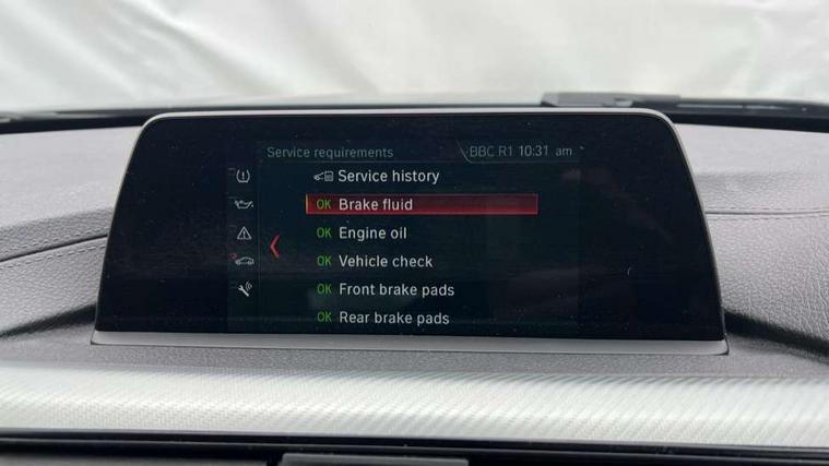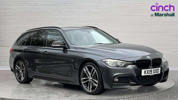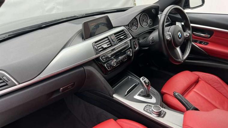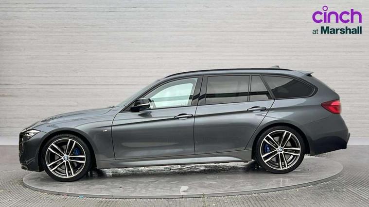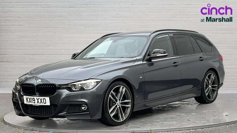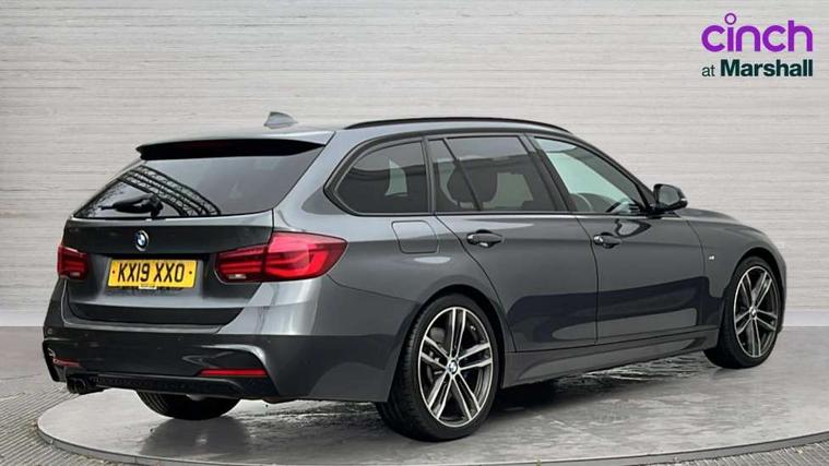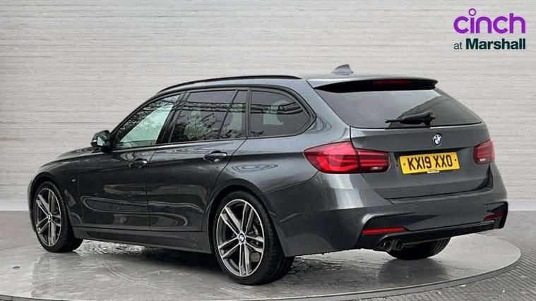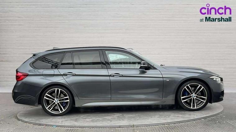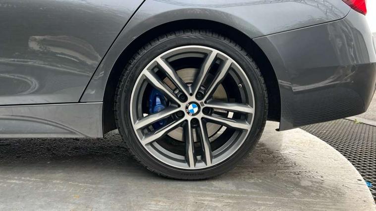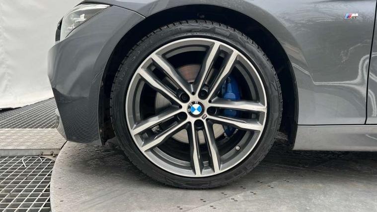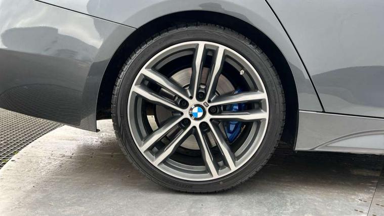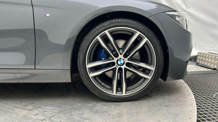 Automatic start/stop system, Automatic tailgate operation, Average speed gauge, BMW iDrive controller on centre console, BMW Online services, BMW remote services, BMW Teleservices, Brake force display, Brake pad wear indicator in front and rear, Check Control warning system for monitoring of lights and door/luggage compartment open warning, Controller and Control Display+6.5" monitor, Digital clock, Door/boot open warning light, Instrument cluster with speedometer with mph readout, tachometer, fuel gauge and oil temperature gauge, Lights on warning, M Sport instrument cluster, Odometer, Oil sensor for level and grade, On board computer, On board diagnostics, Operation warning of all exterior lights, Optimum shift indicator, Outside temperature display, Pesonal profile, Real time traffic information, Service interval indicator, Trip computer, Battery cut-out switch, Drive Performance Control, Electronic differential lock, Multi-link rear suspension, Sport automatic transmission with steering-wheel mounted gearshift paddles and launch control, BMW professional radio/CD/MP3, CD player, DAB Digital radio, Harman/Kardon loud speaker system, 2 speed adjustable intermittent wipers with wash/wipe function, Active air flap radiator grille, Auto dimming rear view mirror, Automatic headlight beam throw control, Body colour bumpers, Body colour door handles, Body colour roof mouldings, Clear indicator lenses, Dark chrome exhaust tailpipe, Dark headlamp surround, Darkened rear light clusters, Direction indicator, side repeaters, integrated in exterior mirrors, Door sill finisher with M designation, Dynamic brake lights, Electric front and rear windows with one touch/convenient open/close function, Front and rear bumper system with replaceable deformation elements, Green tinted heat insulating glass, Heated rear window with automatic switch off, Heated windscreen washer jets, High beam assistant, High gloss black air inlets, High gloss black finish B pillar, High gloss black rear bumper insert, High gloss shadow line, High level third brake light, Independent opening for tailgate window, LED fog lights, LED rear lights, LED welcome home lights, M aerodynamic body styling, Matt black exterior trim, Rain sensor + automatic driving lights control, Rear wash/wipe, Shark fin roof aerial, Sun protection glass, Visible VIN plate, 12V sockets in front centre console and passenger footwell, 3 rear seat head restraints, 4 foldable grab handles - rear with clothes hook, 4 lashing points on luggage floor, 40:20:40 split folding rear bench seat, Anthracite headlining, Automatic interior light soft on/soft off system, Dual zone automatic air conditioning, Folding front centre armrest + storage, Front and rear door armrests, Front and rear velour floor mats, Front door storage bins with bottle holder, Front sports seats with electric side bolster adjustment, Glovebox light, Glovebox opener with chrome spider, Height adjustable front headrests, Indirect front interior illumination - soft-light function, Leather gear knob, Leather gear selector lever handle, Leather handbrake lever, Luggage compartment lighting, Reach + rake adjustable steering column, Rear centre armrest with 2 cupholders, Rear child seat isofix attachment with passenger airbag deactivation, Retractable luggage cover, Separation net, Storage compartment in rear centre console, front and rear door trims and under luggage compartment, Sunvisors with illuminated vanity mirrors and ticket pocket, Through load system, Toolkit located in luggage compartment, Two front cup holders with a sliding lid, Extended lighting package - 3 Series, Extended storage pack - 3 Series Touring/Saloon, High gloss shadow line pack - 3 Series, Interior lights pack - 3 Series Touring, Luggage compartment storage pack - 3 Series Touring, 3 point seatbelts on all seats (2 front, 3 rear), front pyrotechnic belt tensioners and belt force limiters, rear coded belt buckles, ABS, Automatic Stability Control (ASC), BMW emergency call, Brake drying, Brake energy regeneration, Braking pre-tensioning, Cornering brake control (CBC), Crash sensor, Driver and front passenger front and side airbags with passenger deactivation and ITS front and rear head airbags, DSC+, Dynamic brake control, Dynamic Traction Control - DTC, Hill start assist, M Sport braking system, Rear child proof door locks, Seatbelt security check for driver seat, Side impact protection, Twin horns, Tyre pressure monitor, Ventilated front and rear disc brakes, Warning triangle and first aid kit, Alarm system (Thatcham 1) with remote control and electronic engine immobiliser, Automatic drive away locking facility, Central locking switch for all doors, fuel filler cap and luggage compartment, Remote control including integrated key with blue insert, Start/stop button with Comfort Go keyless engine start and auto Start/stop deactivation button, Air-conditioning and radio control panel with Chrome highlight, 19" M double spoke alloy wheels style in bicolour orbit grey - style 704M, Low rolling resistance tyres, Run-flat tyres,