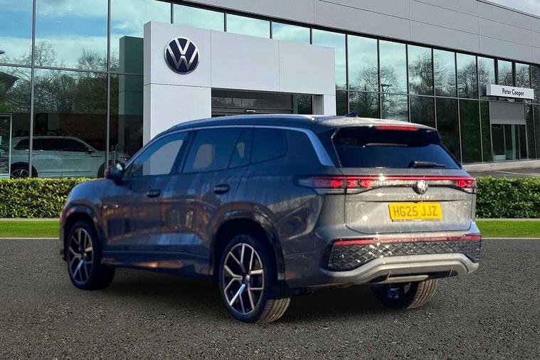 Adaptive cruise control (ACC), Digital Cockpit Pro - 10.25" high resolution dash display screen with customisable menus and information, Driver alert system, Driver attention monitoring system, Driving profile selection, Dynamic road sign display, E-Sim card for online connectivity, eCall emergency call system, Lane change system, Side assist, Rear traffic alert and Exit warning system, Oncoming vehicle braking when turning including swerve support, Power assisted steering with speed sensitive, Start/stop system with regenerative braking, Voice activation spoken voice commands for telephone and navigation system, Warning signal and warning light for front and rear seatbelts not fastened, Wireless App-Connect, Front wheel drive, Digital radio reception (DAB), Diversity antenna for FM reception, Air intake with Chrome trim, Auto dimming interior rear view mirror, Automatic headlight control system, Body colour door handles, Chrome moldings on the side windows, Coming/leaving home lighting function, Cornering light and poor weather light, Dynamic headlight range control with dynamic cornering light, Exterior mirrors convex on the left and aspherical on the right, Heat insulating glass in side and rear windows, High Beam Assist, automatic sensing for switching between dipped and main beam, Illuminated Volkswagen logo rear with animation, Laminated safety glass from B-pillar backwards 90% tinted, Laminated safety glass winshield, heat insulating, LED 3rd brake light, Rain sensor windscreen wipers, Rear fog light on one side, reversing light on both sides, Rear side wing doors, Rear wiper, Surround lighting with welcome light, Volkswagen logo in front, illuminated lighting animation with wake up/goodbye scenario and illuminated door handles, 12V socket in centre console, 2 seats in 3rd row, 3 bench rear seats in 2nd row, 3 rear headrests, Black roof lining, Brushed stainless steel pedals, Carpet mats, front and rear, Centre console with illuminated storage compartment with sliding cover and two drinks holders, Chrome elements on the mirror switch and power window switches and door pulls, Door and side trim panel insert in Art velour, Flat luggage compartment floor, Front centre armrest, Front scuff plates in aluminium, Interior ambient lighting with 30 colour options, ISOFIX anchors for child seats on outer rear seats and front passenger seat compatible with i-Size, Mechanical rear seat release, Power adjustable lumbar support in front, Single front passenger seat, Split folding rear seat with centre armrest, Sports comfort seats in front, Sun visors with illuminated vanity mirrors, 3 Point seat belts in front with pretensioners, 3 point seatbelts in outer rear with ECE label, Autonomous emergency braking front assist with pedestrian and cyclist monitoring, Driver and front passenger airbag with front passenger airbag deactivation, Electronic parking brake with auto hold, First aid kit with warning triangle and safety vest, Front and rear curtain airbags, Front and rear side airbags, Front centre airbag, Front disc brakes, Hill start assist, Rear disc brakes, Two tone horn, Central locking system Keyless Go, Decorative material set R-Line, Interior door handle in matte chrome,