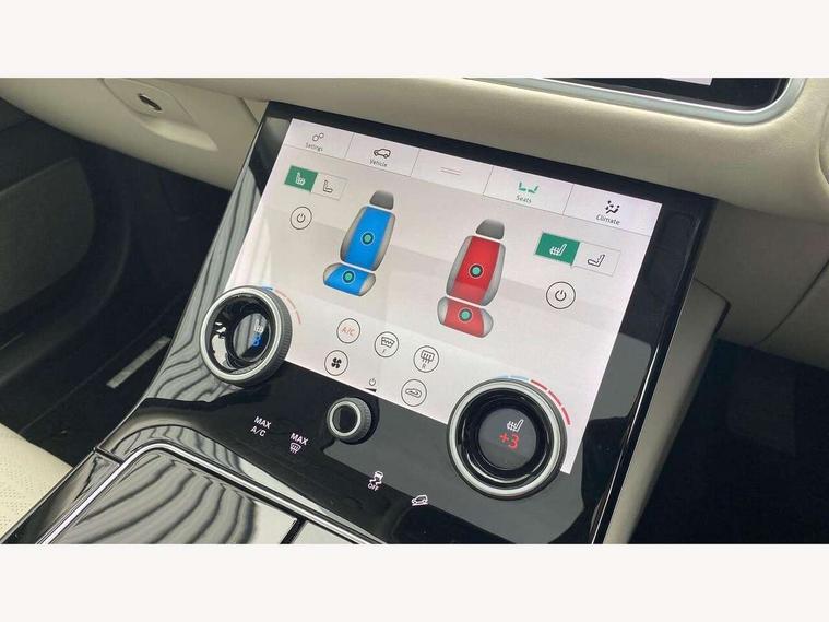 360 Parking aid sensors, Android Auto, Apple car play, Blind spot assist, Bluetooth connectivity, Brake pad wear indicator warning light, Driver condition monitor, InControl remote, InControl Touch navigation pro, Interactive Driver display instrument cluster, Land Rover InControl apps, Lane keep assist, Park Assist - Parallel Park/Parking Exit/Perpendicular park, Pro services and wifi hotspot, Rear traffic monitor, Service indicator, Speed proportional electronic power assisted steering (EPAS), Traffic sign recognition with adaptive speed limiter, Trip computer, Voice control system, 8 speed automatic transmission, Adaptive dynamics, Open differential with torque vectoring by braking, Single speed transfer box, Digital Audio Broadcast radio-DAB, Steering wheel mounted controls, Acoustic laminated windscreen, Adaptive front lighting system, Auto dimming interior rear view mirror, Automatic headlamp levelling, Automatic headlights, Body coloured bumpers, Boot protection plate, Electric windows with one touch open/close and anti trap, Flush deployable exterior door handles, Follow me home headlights, Headlamp power wash, Heated rear window with timer, Heated windscreen + heated windscreen washer jets, Power fold, auto-dimming, heated door mirrors with approach lights, Rain sensor windscreen wipers, Rear fog lights, Rear wash/wipe, Tailgate/boot lid spoiler, Trailer stability assist, 40:20:40 split folding rear seats, Adjustable front armrest, Driver and passenger illuminated vanity mirror, Electric adjustable steering column, Isofix system on outer rear seats, Loadspace cover, Passive front headrests, Rear centre headrest, Satin chrome gearshift paddles, 350mm front brakes, 3x3 point rear seatbelts, Anti-lock braking system (ABS), Cornering brake control, Curtain airbags, Door side intrusion beams, Driver airbag, DSC - Dynamic Stability Control, Electronic brake force distribution, Electronic parking brake, Electronic traction control, Emergency brake assist, Front and rear seatbelt reminder, High speed emergency braking, Hill descent control, Hill launch assist, Low traction launch, Passenger airbag, Power operated child locks, Rear airbags, Roll stability control, Side airbags, Tyre pressure monitoring system, Unpainted brake calipers, Global lock and unlock switch on driver door, Immobiliser, Intrusion sensor, Keyless entry, Lock only switch on front passenger door, Perimetric alarm, Remote central locking,