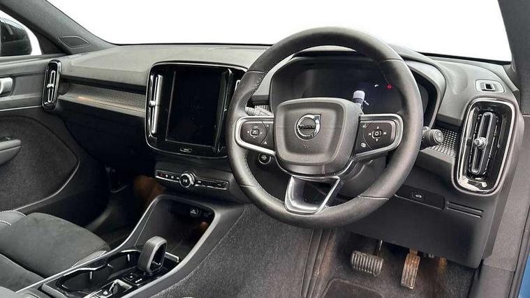 12.3" Progressive Driver Display, 9" centre console portrait touch screen, Adjustable steering wheel force, Android auto (Wired), Apple carplay (wired), Bluetooth handsfree system, Driver alert control, Driver assistance (pilot assist and adaptive cruise control), Driver awareness - Blind spot information system with steer assist, cross traffic alert with autobrake and rear collision warning and mitigation, E-call, Front park assist, Google automotive services - Enabled entertainment apps, navigation with google maps, voice recognition with google assistant, Hands free power tailgate, Intelligent speed assistance, Lane keeping aid, Oncoming Lane Mitigation, Rear park assist, Speed sensitive steering, Volvo cars services with app - Driving journal, emergency and breakdown call, engine remote start, remote door locking/unlocking and vehicle dashboard, Wireless/Inductive Mobile Phone Charging, Automatic transmission with start/stop and manual change functions, Dynamic chassis, DAB Digital radio, Steering wheel mounted remote controls, Adaptive brake lights with high level LED brake lights, Auto dimming feature for exterior door mirrors, Auto dimming interior mirror, Automatic headlamp levelling, Automatic LED Headlights + Active high beam incorporating daytime running lights, Front aluminium tread plates, Front and rear electric windows, High gloss black front and rear skid plate, High gloss black front bumper deco, High gloss black mesh front grille with high gloss black surround, High gloss black window trim, Home safe and approach lighting, Integrated roof rails in high gloss black, LED front fog lights, Puddle lights, Rain sensor with automatic windscreen wiper activation, Rear side wing doors, Rear wiper, Roof antenna, Roof spoiler, Visible VIN plate, 12V socket in front tunnel console and luggage compartment, 2-Zone electronic climate control with CleanZone air quality system and pollen filter, 3 seat bench in 2nd row, 3 Spoke tailored steering wheel with chrome trim, 60/40 versatile split folding rear seat, Centre console cupholders and storage, Charcoal headlining, Connect textile/microtech upholstery, Flexible load floor and grocery bag holder, Floor mats, Front cabin courtesy lights, Front door pocket, front cupholder, ambient front door, rear reading, rear courtesy, instrument panel and tailgate lighting, Front footwell illumination, Front headrests, Front reading lights, Front seat cushion extensions, Front side step illumination (under door), Glovebox bag hook, Heated front seats, Height adjustable passenger seat, Height/reach adjustable steering column, High gloss centre tunnel deco, Illuminated glovebox, Illuminated luggage compartment, Illuminated vanity mirrors + ticket holder, Integrated waste bin, Isofix attachments on outer rear seats, Load cover, Load protection net, Multi directional lumbar support for driver and passenger seat, Power driver seat with memory + exterior mirrors memory, Rear armrest with cupholders, Rear headrests, Single front passenger seat, Underfloor cargo storage, Climate pack without heated front seats - XC40, 3x3 point rear seatbelts, City safety with steering support with Pedestrian + cyclist + front collision warning with full auto brake and rear auto brake, Driver and passenger airbags, Drivers knee airbag, Electronic parking brake with auto hold, First aid kit, Front and outer rear seatbelt reminder and pretensioners, Front seats SIPS airbags, Hill descent control, Hill start assist, Inflatable curtain, Passenger airbag cut-off device, Power child locks on rear doors, Road sign information display, Run off Road Protection, SIPS (Side Impact Protection System), Slippery road and hazard light alert, Stability and Traction Control with Spin control, Engine Drag Control and Corner Traction Control, Tyre pressure monitoring system, Vehicle deceleration control with Anti-lock Brake System, Electronic Brake Distribution and Emergency Brake Assist, Warning triangle, WHIPS whiplash protection system - front, 2 x Key integrated remote control central locking including with deadlocking system and auto open/close windows, Anti-theft alarm including immobiliser/volume sensor + level sensor, Keyless drive includes keyless entry and keyless start, Locking wheel nuts,