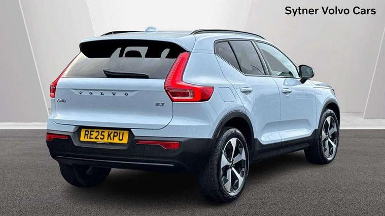 12.3" Progressive Driver Display, 9" centre console portrait touch screen, Adjustable steering wheel force, Android auto (Wired), Apple carplay (wired), Bluetooth handsfree system, Driver alert control, Driver assistance (pilot assist and adaptive cruise control), Driver awareness - Blind spot information system with steer assist, cross traffic alert with autobrake and rear collision warning and mitigation, E-call, Front park assist, Google automotive services - Enabled entertainment apps, navigation with google maps, voice recognition with google assistant, Hands free power tailgate, Intelligent speed assistance, Lane keeping aid, Oncoming Lane Mitigation, Rear park assist, Speed sensitive steering, Volvo cars services with app - Driving journal, emergency and breakdown call, engine remote start, remote door locking/unlocking and vehicle dashboard, Wireless/Inductive Mobile Phone Charging, Automatic transmission with start/stop and manual change functions, Dynamic chassis, DAB Digital radio, Steering wheel mounted remote controls, Adaptive brake lights with high level LED brake lights, Auto dimming feature for exterior door mirrors, Auto dimming interior mirror, Automatic headlamp levelling, Automatic LED Headlights + Active high beam incorporating daytime running lights, Front aluminium tread plates, Front and rear electric windows, High gloss black front and rear skid plate, High gloss black front bumper deco, High gloss black mesh front grille with high gloss black surround, High gloss black window trim, Home safe and approach lighting, Integrated roof rails in high gloss black, LED front fog lights, Puddle lights, Rain sensor with automatic windscreen wiper activation, Rear side wing doors, Rear wiper, Roof antenna, Roof spoiler, Visible VIN plate, 12V socket in front tunnel console and luggage compartment, 2-Zone electronic climate control with CleanZone air quality system and pollen filter, 3 seat bench in 2nd row, 3 Spoke tailored steering wheel with chrome trim, 60/40 versatile split folding rear seat, Centre console cupholders and storage, Charcoal headlining, Connect textile/microtech upholstery, Flexible load floor and grocery bag holder, Floor mats, Front cabin courtesy lights, Front door pocket, front cupholder, ambient front door, rear reading, rear courtesy, instrument panel and tailgate lighting, Front footwell illumination, Front headrests, Front reading lights, Front seat cushion extensions, Front side step illumination (under door), Glovebox bag hook, Heated front seats, Height adjustable passenger seat, Height/reach adjustable steering column, High gloss centre tunnel deco, Illuminated glovebox, Illuminated luggage compartment, Illuminated vanity mirrors + ticket holder, Integrated waste bin, Isofix attachments on outer rear seats, Load cover, Load protection net, Multi directional lumbar support for driver and passenger seat, Power driver seat with memory + exterior mirrors memory, Rear armrest with cupholders, Rear headrests, Single front passenger seat, Underfloor cargo storage, Climate pack without heated front seats - XC40, 3x3 point rear seatbelts, City safety with steering support with Pedestrian + cyclist + front collision warning with full auto brake and rear auto brake, Driver and passenger airbags, Drivers knee airbag, Electronic parking brake with auto hold, First aid kit, Front and outer rear seatbelt reminder and pretensioners, Front seats SIPS airbags, Hill descent control, Hill start assist, Inflatable curtain, Passenger airbag cut-off device, Power child locks on rear doors, Road sign information display, Run off Road Protection, SIPS (Side Impact Protection System), Slippery road and hazard light alert, Stability and Traction Control with Spin control, Engine Drag Control and Corner Traction Control, Tyre pressure monitoring system, Vehicle deceleration control with Anti-lock Brake System, Electronic Brake Distribution and Emergency Brake Assist, Warning triangle, WHIPS whiplash protection system - front, 2 x Key integrated remote control central locking including with deadlocking system and auto open/close windows, Anti-theft alarm including immobiliser/volume sensor + level sensor, Keyless drive includes keyless entry and keyless start, Locking wheel nuts,