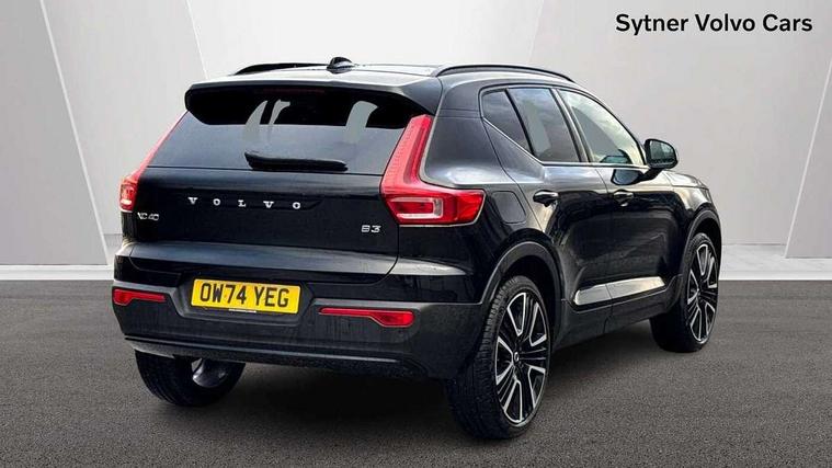 12.3" Progressive Driver Display, 360 degree surround view parking camera with side proximity sensors, 9" centre console portrait touch screen, Adjustable steering wheel force, Android auto (Wired), Apple carplay (wired), Bluetooth handsfree system, Driver alert control, Driver assistance (pilot assist and adaptive cruise control), Driver awareness - Blind spot information system with steer assist, cross traffic alert with autobrake and rear collision warning and mitigation, E-call, Front park assist, Google automotive services - Enabled entertainment apps, navigation with google maps, voice recognition with google assistant, Hands free power tailgate, Intelligent speed assistance, Lane keeping aid, Oncoming Lane Mitigation, Rear park assist, Speed sensitive steering, Volvo cars services with app - Driving journal, emergency and breakdown call, engine remote start, remote door locking/unlocking and vehicle dashboard, Wireless/Inductive Mobile Phone Charging, Automatic transmission with start/stop and manual change functions, Dynamic chassis, DAB Digital radio, Premium Sound by Harman Kardon, Dolby Pro Logic II Surround Sound, Dirac Unison, 12 speakers/600W and subwoofer, Steering wheel mounted remote controls, Active bending pixel LED headlights with adaptive shadow technology, Active high beam incorporating daytime running lights, Adaptive brake lights with high level LED brake lights, Auto dimming feature for exterior door mirrors, Auto dimming interior mirror, Automatic headlamp levelling, Dark tinted windows - rear side windows and rear screen, Front aluminium tread plates, Front and rear electric windows, Headlight cleaning system, High gloss black front and rear skid plate, High gloss black front bumper deco, High gloss black mesh front grille with high gloss black surround, High gloss black window trim, Home safe and approach lighting, Integrated roof rails in high gloss black, LED front fog lights with cornering function, Power glass tilt and slide panoramic sunroof with sun curtain, Puddle lights, Rain sensor with automatic windscreen wiper activation, Rear side wing doors, Rear wiper, Roof antenna, Roof spoiler, Visible VIN plate, 12V socket in front tunnel console and luggage compartment, 2-Zone electronic climate control with CleanZone air quality system and pollen filter, 3 seat bench in 2nd row, 3 Spoke tailored steering wheel with chrome trim, 60/40 versatile split folding rear seat, Centre console cupholders and storage, Flexible load floor and grocery bag holder, Floor mats, Front cabin courtesy lights, Front door pocket, front cupholder, ambient front door, rear reading, rear courtesy, instrument panel and tailgate lighting, Front footwell illumination, Front headrests, Front reading lights, Front seat cushion extensions, Front side step illumination (under door), Glovebox bag hook, Heated front seats, Height/reach adjustable steering column, High gloss centre tunnel deco, Illuminated glovebox, Illuminated luggage compartment, Illuminated vanity mirrors + ticket holder, Integrated waste bin, Isofix attachments on outer rear seats, Load cover, Load protection net, Multi directional lumbar support for driver and passenger seat, Power driver seat with memory + exterior mirrors memory, Power folding rear headrests, Power passenger seat, Rear armrest with cupholders, Single front passenger seat, Underfloor cargo storage, Climate pack without heated front seats - XC40, 3x3 point rear seatbelts, City safety with steering support with Pedestrian + cyclist + front collision warning with full auto brake and rear auto brake, Driver and passenger airbags, Drivers knee airbag, Electronic parking brake with auto hold, First aid kit, Front and outer rear seatbelt reminder and pretensioners, Front seats SIPS airbags, Hill descent control, Hill start assist, Inflatable curtain, Passenger airbag cut-off device, Power child locks on rear doors, Road sign information display, Run off Road Protection, SIPS (Side Impact Protection System), Slippery road and hazard light alert, Stability and Traction Control with Spin control, Engine Drag Control and Corner Traction Control, Tyre pressure monitoring system, Vehicle deceleration control with Anti-lock Brake System, Electronic Brake Distribution and Emergency Brake Assist, Warning triangle, WHIPS whiplash protection system - front, 2 x Key integrated remote control central locking including with deadlocking system and auto open/close windows and sunroof, Anti-theft alarm including immobiliser/volume sensor + level sensor, Keyless drive includes keyless entry and keyless start, Locking wheel nuts,
