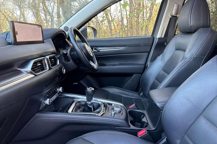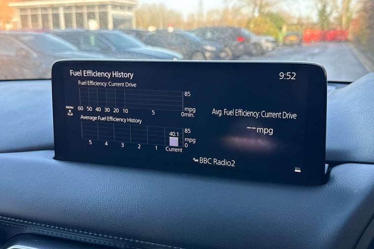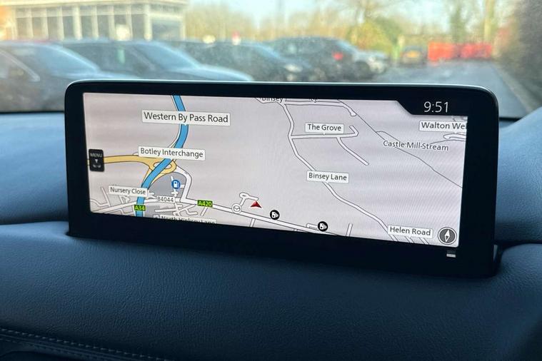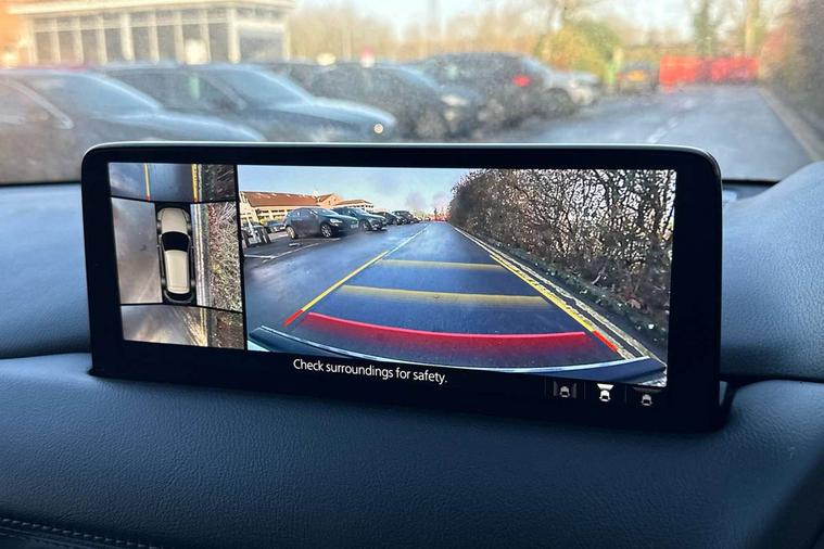 10.25" display with Mazda Connect infotainment, 7" colour TFT display, Apple car play/Android Auto, Blind spot monitoring with rear cross traffic alert, Bluetooth connectivity with voice control, Collision prevention assist, Connected services, Cruising Traffic Support, Electric power steering, Emergency stop signalling system, Engine start/stop button, Forward collision warning, Front and rear parking sensors, Integrated navigation system, Intelligent speed assist, Lane departure warning system, Lane keep assist, Qi wireless phone charging, Radar cruise control, Reversing camera, Service indicator, Traffic sign recognition (TSR), Trip computer, Windscreen projected colour active driving display (HUD) with memory, Cylinder Deactivation, i-stop, 2 USB sockets in rear, 2x USB sockets in front, AM/FM radio, Bluetooth audio streaming, Bose premium sound system with 10 speakers, DAB Digital radio, Multimedia Commander including separate volume dial, Steering wheel mounted audio controls, Adaptive front lighting system, Auto dimming rear view mirror, Automatic headlights, Black inlay dashboard panel, Body colour door mirrors, Body colour roof spoiler, Body coloured front and rear black lower bumper mouldings, Bright finish signature wing, Coming/leaving home lighting function, Door mirror integrated indicators, Dual chrome tailpipes, Dusk sensitive headlamps, Electric front/rear windows with one touch auto up/down, Front grille in gloss black finish, Gloss black B and C pillars garnish, High beam assist, Intermittent rear wash/wipe, LED auto levelling, LED daytime running lights, LED front fog lights, LED Headlights, LED third brake light, Power folding and heated door mirrors, Power tilt/slide sunroof, Privacy glass (rear side windows only), Rain sensing front wipers, Rear side wing doors, Satin black side mouldings, Scuff plates, Shark fin antenna, Signature LED rear combination lights, Vinyl with wood grain metal inlay door trim panel, Windscreen wiper de-icer, 12v electrical power outlet, 3 seat bench in 2nd row, 3 stage heated front seats, 40:20:40 Karakuri fold-flat seat system, 6 way electric adjustable passenger seat, 8 way electric driver seat with lumbar support + memory, Cargo room flat floor board with waterproof undertray, Driver seat power slide, recline and height adjustment, Driver, Front passenger and two rear grab handles with coat hooks, Driver/passenger front seatback pockets, Driver/passenger sunvisors + illuminated vanity mirrors (drivers with ticket holder), Dual zone climate control, Folding centre armrest with 2 cup holders, Front and rear door pockets, Front centre storage with two cupholders, Front passenger seat power slide, recline and height adjustment, Gear shift indicator, Heated steering wheel, Humidity sensor, Illuminated glovebox, Interior dome light with integral spotlight, ISOFIX child seat anchorage points attached on outer rear seats, Karakuri tonneau cover, Leather upholstery, Leather wrapped steering wheel and gear knob, Light roof lining, Luggage compartment LED lighting, Luggage compartment power outlet, Rear air vents, Rear headrests, Rear seat recline, Roof mounted sunglasses holder, Single front passenger seat, Three height adjustable head restraints, Tilt/height adjustable steering wheel, White interior LED illumination lighting, 3 point front seatbelts with pre-tensioners, 3 rear 3 point seatbelts, ABS, Advanced Smart City Brake Support - SCBS, Child locks on rear doors, Driver and front passenger side airbags, DSTC-Dynamic Stability and Traction Control, Dual front airbags, Electronic brake force distribution, Electronic parking brake with auto hold, ESP, Front and rear curtain airbags, Front passenger airbag deactivation, G-Vectoring control, Hill hold assist, Seatbelt reminder front and rear, Single stage passenger airbags, Smart brake support with forward obstruction warning, Tyre pressure monitoring system, Automatic door locking when moving off, Deadlock, Immobiliser, Power door locks, Remote central locking, Smart keyless entry, Thatcham Cat.1 alarm, 19" diamond cut black alloy wheels, Tyre repair kit,