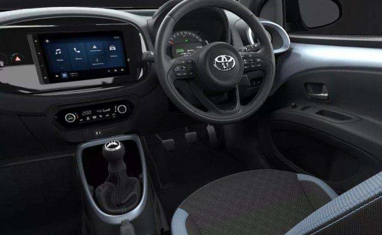 4.2" TFT colour screen, Adjustable speed limiter, Analogue speedometer, Bluetooth connectivity, Digital tachograph, Driver attention alert system, eCall emergency call system, Electric power steering, Intersection turn assist, Key reminder warning, Noise reduction kit, Pre collision system with emergency steering assist, Reversing camera with static guide lines, Smart phone integration with Apple car play/Android Auto, Speed limit display, Start and stop, Vehicle Stability Control (VSC), 4 speakers, 9" HD multimedia display touch screen with Toyota smart connect, DAB digital audio broadcast, USB connector, Auto headlights, Auto wipers, Automatic headlights cut-off, Bicycle towing hook, Black contrast roof, Black side protection mouldings, Black wheel arch mouldings, Body colour door handles, Body coloured front bumper, Boot door scuff plate, Eclipse black rear bumper, Electric heated door mirrors, Follow me home headlights, Front fog lights, Front power windows, Gloss black door mirrors, Gloss black upper front grille, Headlight cut-off reminder, LED daytime running lights, LED front light guide, LED High mounted stop lamp, Manual day/night rear view mirror, Manual headlight levelling, Pagoda roof, Power adjustable door mirrors, Power back door, Privacy glass, Projector halogen headlights, Rain sensor, Rear combination lights LED bulb type, Rear side wing doors, Rear windscreen defogger, Rear windscreen wiper, Short antenna, Variable intermittent windscreen wipers, 12v power outlet - front, 2 seat bench in 2nd row, 3 spoke leather steering wheel, 50/50 split folding rear seat, Adhesive roof headlining, Adjustable speed limiter switch on steering wheel, Audio and telephone switches on steering wheel, Auto air conditioning, Black insert on steering wheel, Black roof lining, Boot light, Centre room light, Chrome interior door handles, Chrome surround on air conditioning buttons, Clean air filter, Console box storage in body color, Fabric upholstery, Floor mats, Front and rear cup holders, Front head rest deco art, Front head restraints, Height adjustable driver seat, Intelligent adaptive cruise control switch on steering wheel, ISOFIX child restraint system on rear seats, Lane departure alert switch on steering wheel, Leather gearshift knob, Manual tilt steering wheel, Manually reclining and sliding driver seat, Manually reclining and sliding front passenger seat, Multimedia switches on steering wheel, Pollen filter, Rear door pockets, Rear head restraints, Satin silver insert on gear shift knob, Single compartment glovebox with lights, Single front passenger seat, Soft tonneau cover, Sun visors with mirror on driver and passenger side, Voice recognition switch on steering wheel, Toyota safety sense pack - Aygo X, Anti lock braking system + Electronic brake force distribution, Child safety door lock, Emergency brake light signal (EBS), Hill start assist control (HAC), Passenger airbag on/off switch, Seat belt reminder for front and rear seats, Supplement restraints system (SRS) - 6 airbags, Traction control, Tyre pressure warning system, Immobiliser, Remote power door locks, Black wheel centre caps, Tyre repair kit,