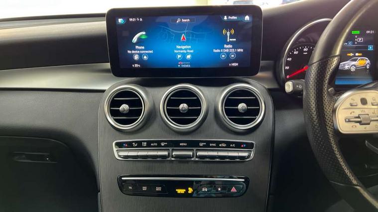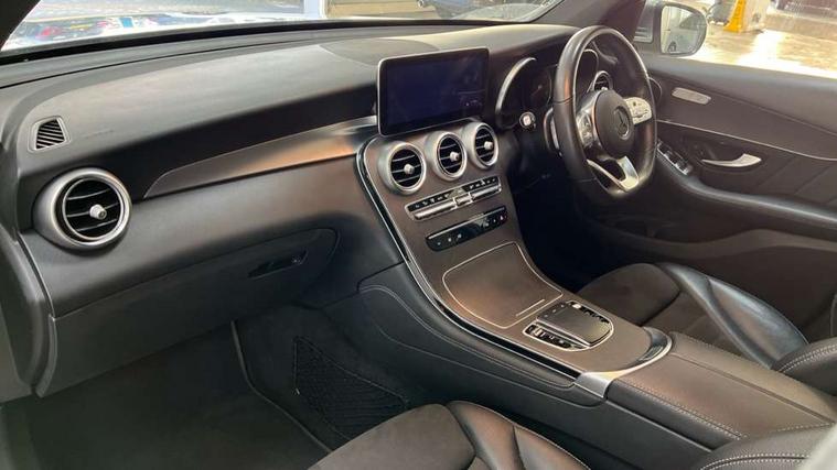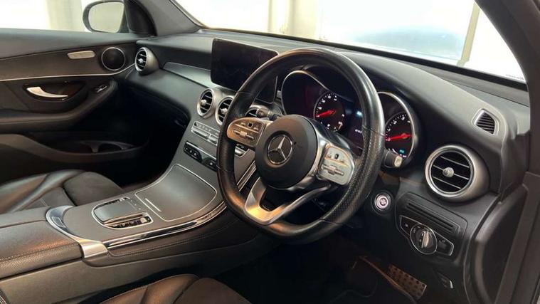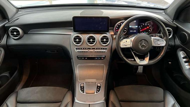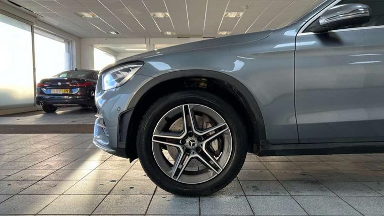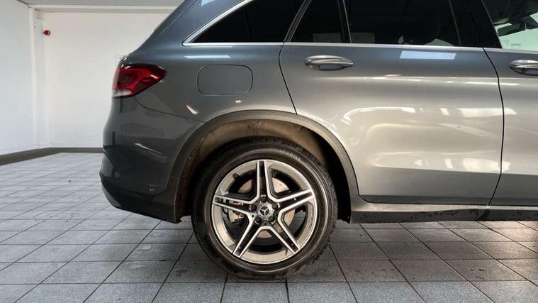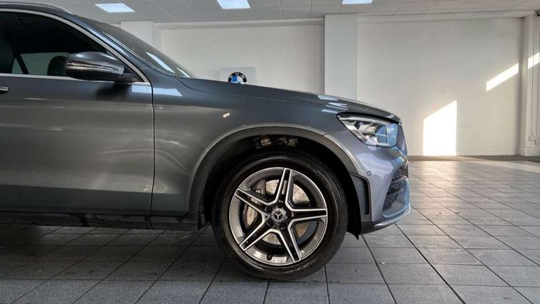 Active parking assist with parktronic system, Attention assist, Bluetooth interface for hands free telephone, Collision prevention assist plus, Cruise control with speedtronic variable speed limiter, Direct steer speed sensitive steering, DYNAMIC SELECT with a choice of driving modes (ECO, Comfort, Sport, Sport+ and Individual), Easy pack automatic powered tailgate, ECO start/stop function, Hard disk navigation, Hey Mercedes Voice activation, Instrument cluster with 5.5-inch TFT multi-function display, MBUX Interior assistant, MBUX multimedia system with DAB digital radio and touchpad including satellite navigation, Mercedes connect me with remote online services, Multi function trip computer, Outside temperature display, rear seatbelt status indicator, Remote boot release, Reversing camera, Service indicator (ASSYST), 4MATIC permanent four wheel drive, 66 litre fuel tank, 9G TRONIC plus automatic transmission with steering column gear selector, DIRECT SELECT steering wheel gearshift paddles, Petrol Particulate Filter (PPF), Sports suspension tuned for improved handling and driving dynamics, 5 speakers, DAB Digital radio, Frontbass loudspeakers, Media display 10.25-inch touchscreen display, Pre installation for Mercedes Benz Link, USB ports x 2 in centre console, Adaptive brake lights, Aluminium roof rails, AMG bodystyling AMG front apron with sporty air intakes and chrome trim element, AMG diffuser-look rear apron with insert in black, Body colour door mirrors, Body coloured bumpers, Electric windows one touch open/close, Electrically adjustable and heated door mirrors, Front and rear exterior chrome trim, Headlamp assist automatic headlamp activation, LED high performance headlamps with integrated LED daytime running lights, LED tail lamp, Privacy glass with dark glass from B pillar backwards, Radiator diamond grille, Rain sensor windscreen wipers, Range adjustable headlights, Rear wiper, Tinted glass all round with single layer safety glass, Two chrome plated tailpipe trim elements, 2 way rear head restraints, 3-spoke multifunction AMG steering wheel in black nappa leather with flattened bottom section, chrome inserts and perforated leather in grip area, 40:20:40 split folding rear seats, AMG floor mats with edging and embroidered AMG lettering, AMG sports seats, Artico leather with Dinamica microfibre upholstery, Automatic child seat recognition sensor, Black roof lining, Dividing net - rear, Double cup holder in centre console, Easy-pack load compartment cover, Front armrest with storage box, Front door sills with Mercedes benz lettering, Front head restraints, Front seats with electric adjust (backrest, height and seat cushion inclination) with 4 way electric lumbar support and manual cushion depth adjust, Heated front seats, Height/reach adjustable steering column, Illuminated and lockable glove compartment, Rear top tether child seat ISOFIX attachment, Sports pedals with stainless steel surfaces and rubber studs, Steering wheel with touch control buttons, THERMATIC automatic climate control, Interior lighting pack - GLC, Mirror pack - GLC, Storage pack - GLC, 3 rear 3 point seatbelts, Active bonnet, Adaptive brake system with HOLD function and brake drying in the wet, ASR, Black seat belts, Brake calipers with Mercedes-Benz lettering + perforated brake discs, Child proof door locks, Dual-stage airbags - driver and front passenger, driver knee bag and window bags for driver, front passenger and rear passengers, Electronic parking brake, Electronic stability programme (ESP) with curve dynamic assist and cross wind assist, Front and rear seatbelt reminder, Front passenger seat occupancy sensor, Hill hold function, Tyre pressure monitoring system, Warning triangle and first aid kit, Alarm system/interior protection/immobiliser, Automatic door locking, KEYLESS-GO starting function, Remote central locking, Open pore grey oak wood trim, 19" AMG 5 twin spoke alloy wheels painted tremolite grey with high sheen finish and tirefit,