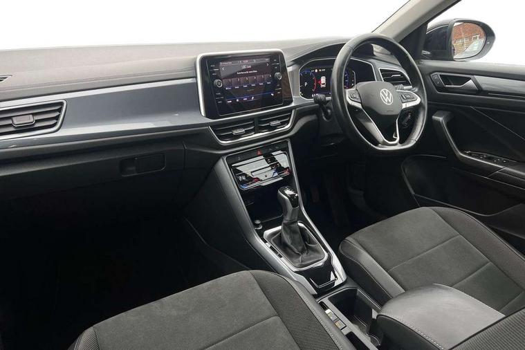 10.25" Digital cockpit pro, Bluetooth mobile phone interface, Driver alert system with fatigue detection, Driver tips and journey analysis, Emergency call service, Lane keeping system Lane Assist, Modified key software - reduce switch off time for key status change to Long no motion, Online services, Park assist including front and rear parking sensors, Service interval indicator, Tailgate/trunk lid release from outside, Think blue trainer driver tips and journey analysis, Warning sound and light for front seatbelts unfastened, Wireless app connect, Battery regeneration during braking, Start/stop function with battery regeneration, Diversity antenna for FM reception, Front and rear 6 speakers, Music playback - MP3, WMA and AAC files, Premium USB cable in choice of either Apple or Android smartphone compatibility, SD card slot, Simultaneous pairing of 2 compatible mobile devices, Title and cover art display, We Connect and We Connect Plus functionality, 3rd brake light, Auto dimming interior rear view mirror, Automatic hazard lights activation under emergency braking, Automatic headlight control with LED separate daytime running lights with coming/leaving home function, Body colour sports bumpers with silver metallic underbody fascia, Dynamic headlight range control with self adjusting whilst driving, Extended roof spoiler, Exterior mirrors aspherical on driver side, convex on front passenger side, External USB type C socket and charging sockets, Front windscreen wiper with intermittent wipe and 4 position delay, Heated rear window, LED Plus headlamps, LED rear combination lamps, LED rear number plate lights, LED tail lamp rear comination lamps, Light mode for poor weather, rain, fog or snow, Power windows with comfort operation and circuit breaker, Rain sensor, Rear exhaust tailpipe, Rear fog light on one side and reversing lights on both sides, Rear side wing doors, Rear wash/wipe with intermittent wipe setting, Remote electrically foldable door mirrors, puddle lights and reverse activated passenger's door mirror, 12V power socket in centre console, 3 rear head restraints, 3 seat bench in 2nd row, 4 load lashing points in luggage compartment, Air care climatronic air conditoning system with active combination filter and 2-zone temperature control, Chrome plated radiator grille inserts, air vent surrounds and light switch surrounds, Door and side trim panel with leatherette insert, Drawer under drivers seat, Front + rear carpet mats, Front centre armrest, Front comfort sports seats, Front cupholders x 2, Front footwell illumination, Instrument lighting, white adjustable panel illumination, Interior ambient lighting and surround lighting, Interior light delay, Isofix child seat preparation, Leather gearshift handle, LED interior light with switch off delay/dimmer and 2 front/rear LED reading lights, Load-through provision with cup holder when folded down ('Unsplit rear seat bench, split folding backrest, with centre armrest), Luggage compartment lighting, Non-folding front passenger seat backrest, Single front passenger seat, Storage compartment in left and right luggage area, Storage compartment in rear doors, Storage compartments in driver and front passenger doors, Sunvisors with illuminated vanity mirrors, Variable boot floor, height adjustable and removable, Driver assistance pack without proactive passenger protection - T-Roc, 3 point height adj front seatbelts + pretensioners, 3 point seatbelts in outer rear with ECE label, ABS, Child locks on rear doors, Driver and front passenger airbag with front passenger airbag deactivation, Driver and front passenger safety-optimised head restraints, Drivers seatbelt reminder, Electronic parking brake, Electronic Stability Control (ESC) inc EDL (Electronic Differential Lock) and ASR (Traction Control), Front and rear passengers curtain airbag system including front side airbags, Front assist with city emergency braking and pedestrian monitoring, Front seat side impact airbags, Predictive pedestrian protection, Rear disc brakes, Single tone horn, Tyre pressure loss indicator, Volkswagen roadside assistance, Alarm with interior protection, Anti-theft alarm system with interior monitoring, backup horn, and towing protection, Remote central locking with SAFELOCK, radio remote control with 2 remote control folding keys, Trims for alloy wheels,