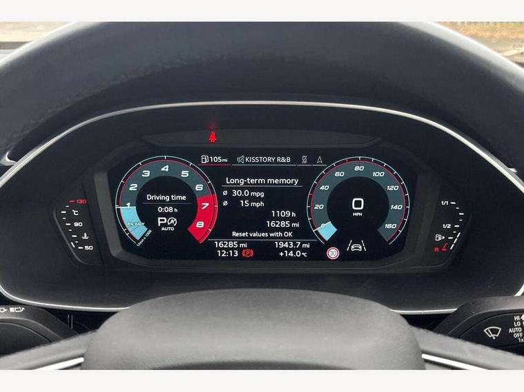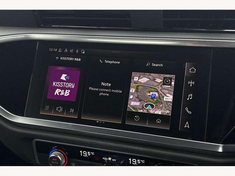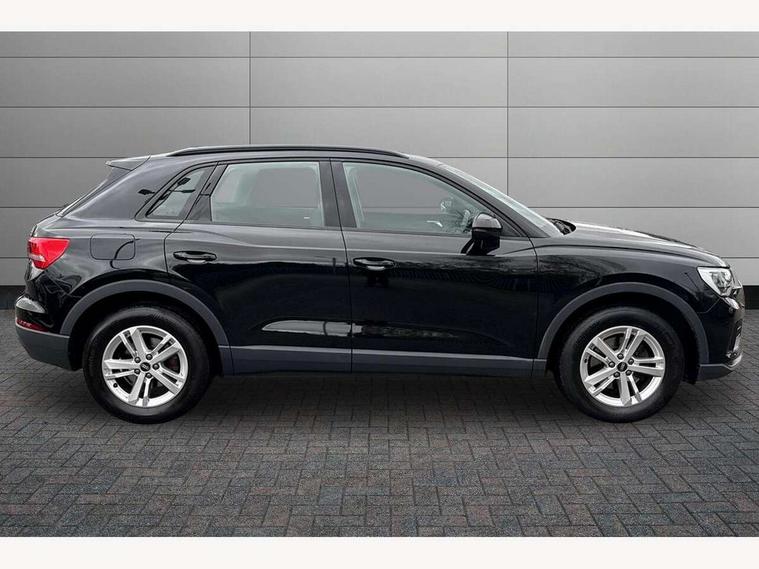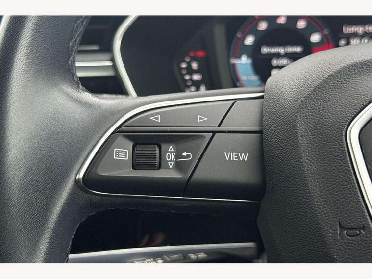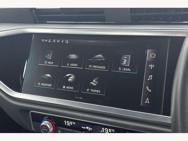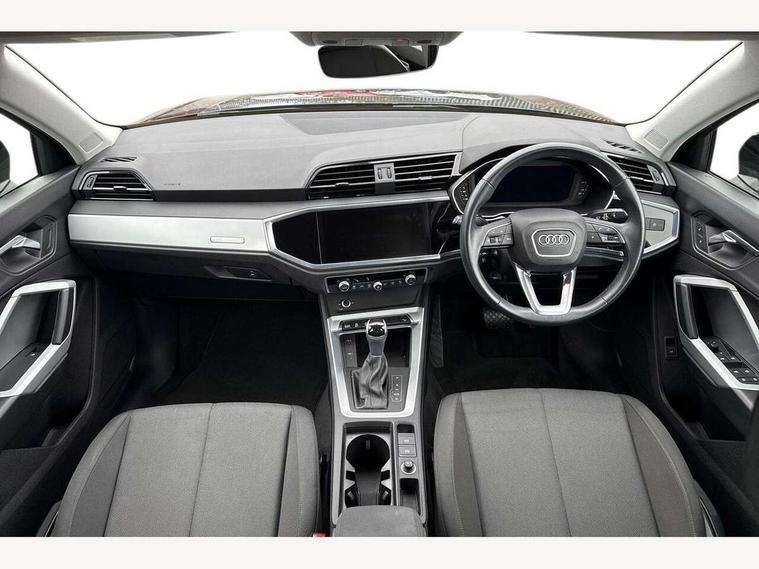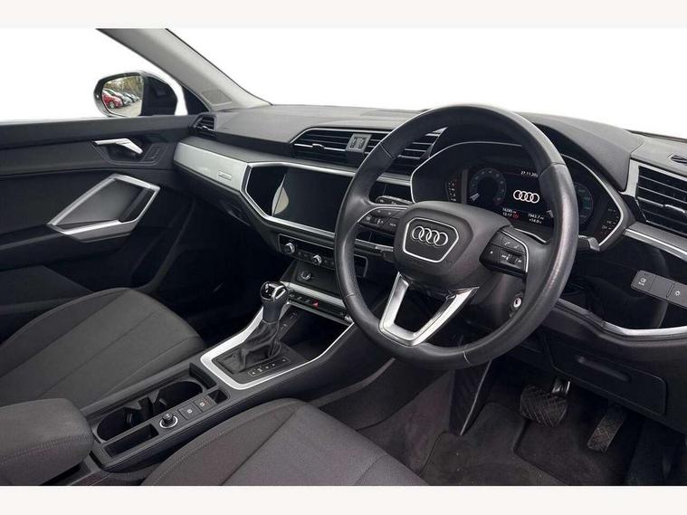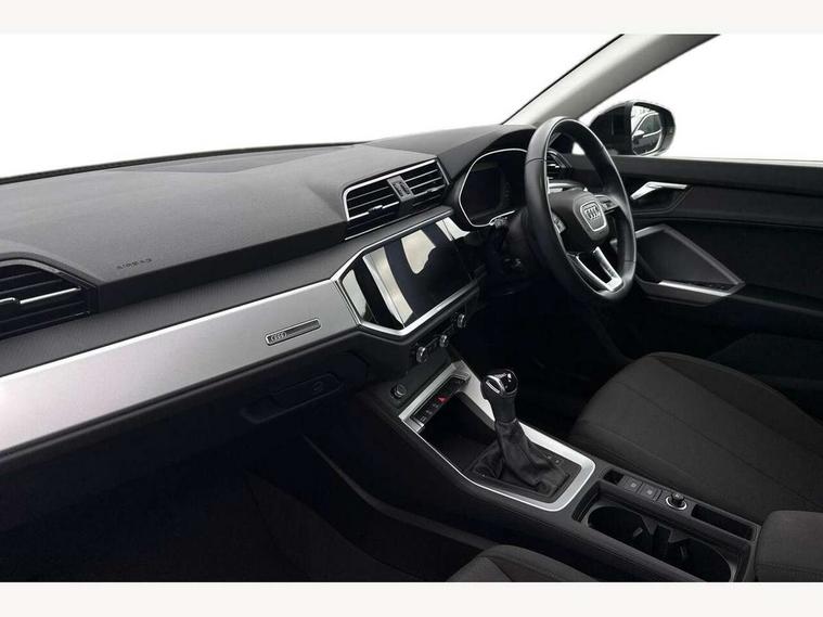 Amazon alexa Integration, Audi drive select, Audi lane departure warning, Audi Virtual Cockpit - 10.25" display, Bluetooth interface, Camera based traffic sign recognition, Legal emergency call, MMI Navigation Plus with high resolution 10.1 inch touchscreen colour display, Power operated tailgate, Progressive steering, Service interval indicator, Smartphone interface includes wireless Apple carplay/Android Auto, Start stop system with recuperation, Voice control system with natural language interaction, Standard suspension, 2 USB-C ports with charge and data functions, 6 passive loudspeakers, DAB digital radio module, Acoustic windscreen, Auto dimming frameless rear view mirror, Black roof rails, Body colour door mirrors, Diffuser in grained anthracite, Electrically folding, adjustable and heated door mirrors with integrated LED side indicators and kerb view function for passenger side, Exterior bumper with wheel arch trims and side sill trims in grained black matt, Front and rear electric windows, Grained radiator protective grille, Halogen rear lights, LED headlights with LED daytime running lights, Rain and light sensors, Rear side wing doors, Rear wiper, Third brake light, Variable front intermittent wipers, 12V socket in rear centre console, 3 seat bench in 2nd row, 3 spoke multi-function leather steering wheel, 40:20:40 folding with manual adjustment for 60:40 forwards/backwards position and backrest angle, Dual zone electronic climate control, Front and rear floor mats, Front and rear headrests, Front and rear roof module including reading lights, Front centre armrest, Glove compartment lighting, Height and reach adjustable steering wheel, ISOFIX child seat mounting for front passenger with airbag deactivation and outer rear seat including top tether attachment point for outer rear seats, Luggage compartment light, Lunar silver cloth headlining, Manual front seats with height adjustment, Single front passenger seat, Stainless steel luggage compartment sill finisher, Non smoking pack - Q3, 3x3 point rear seatbelts, 6 airbags - Driver, front passenger, curtain and side windows, Audi pre-sense front with pedestrain and cyclist recognition, Electrically operated child locks on rear doors, Electromechanical parking brake, Electronic stabilisation control including ABS, ASR and EDL, Front seatbelt reminder, Hill descent control, Hill hold assist, Pre sense basic, Seatbelt monitoring, Tyre pressure warning, Warning triangle and first aid kit, Anti theft alarm, Anti theft wheel bolts, Immobiliser, Remote central locking, Detail dashboard around MMI touch colour display in glass look, black with surround in aluminium look, Micrometallic silver inlay, 17" 5 twin spoke design alloy wheels,